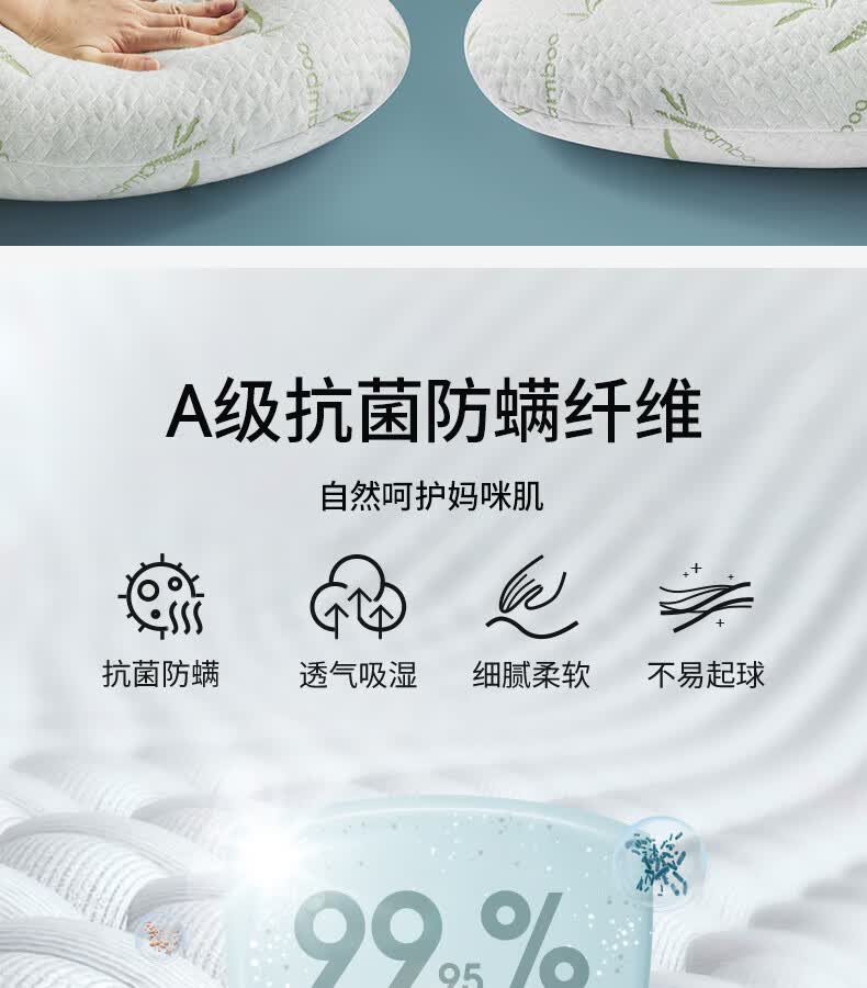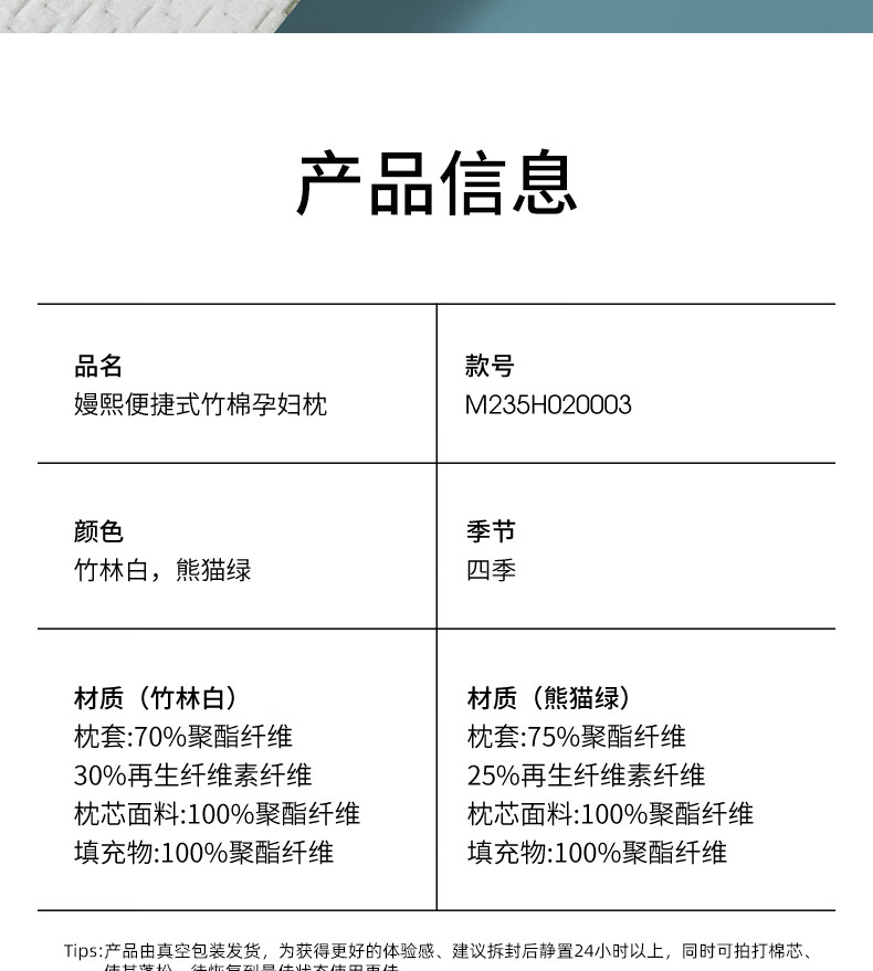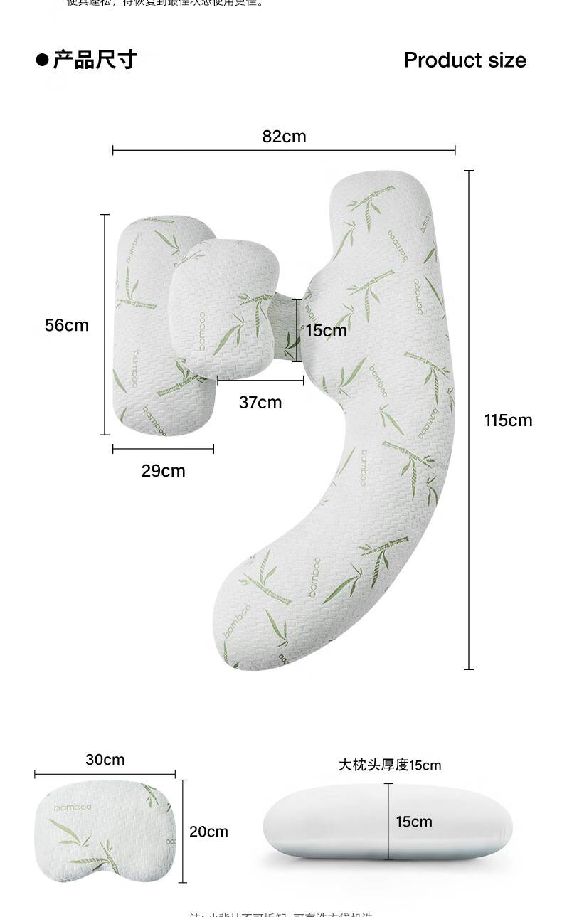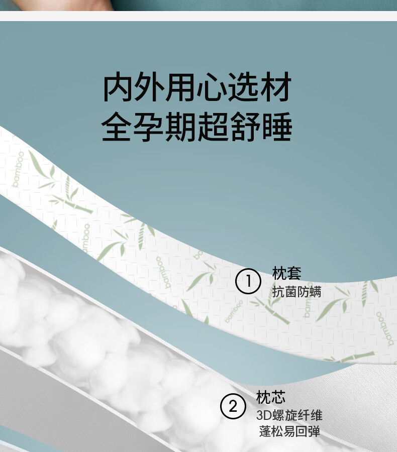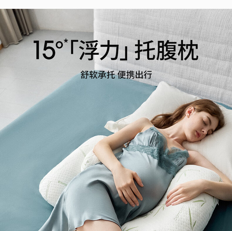 嫚熙(EMXEE)孕妇枕护腰侧睡托腹枕睡觉卧枕孕期专用神器便携式枕头H型竹林白