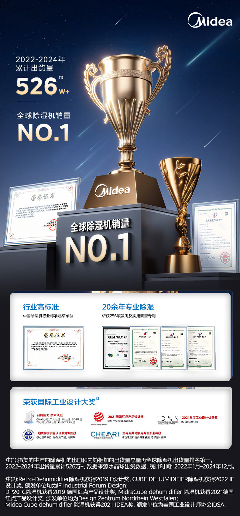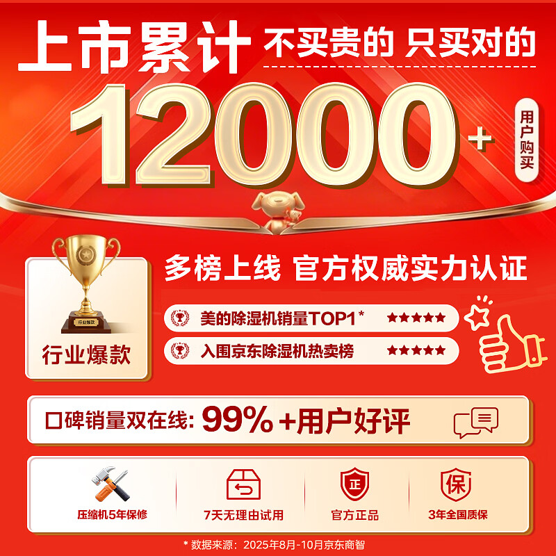 美的(Midea)除湿机/抽湿机12升/天 自营家用20㎡轻音小型回南天客厅卧室内防潮专用干衣吸湿器CF12BD/N7-DO