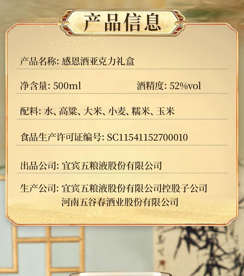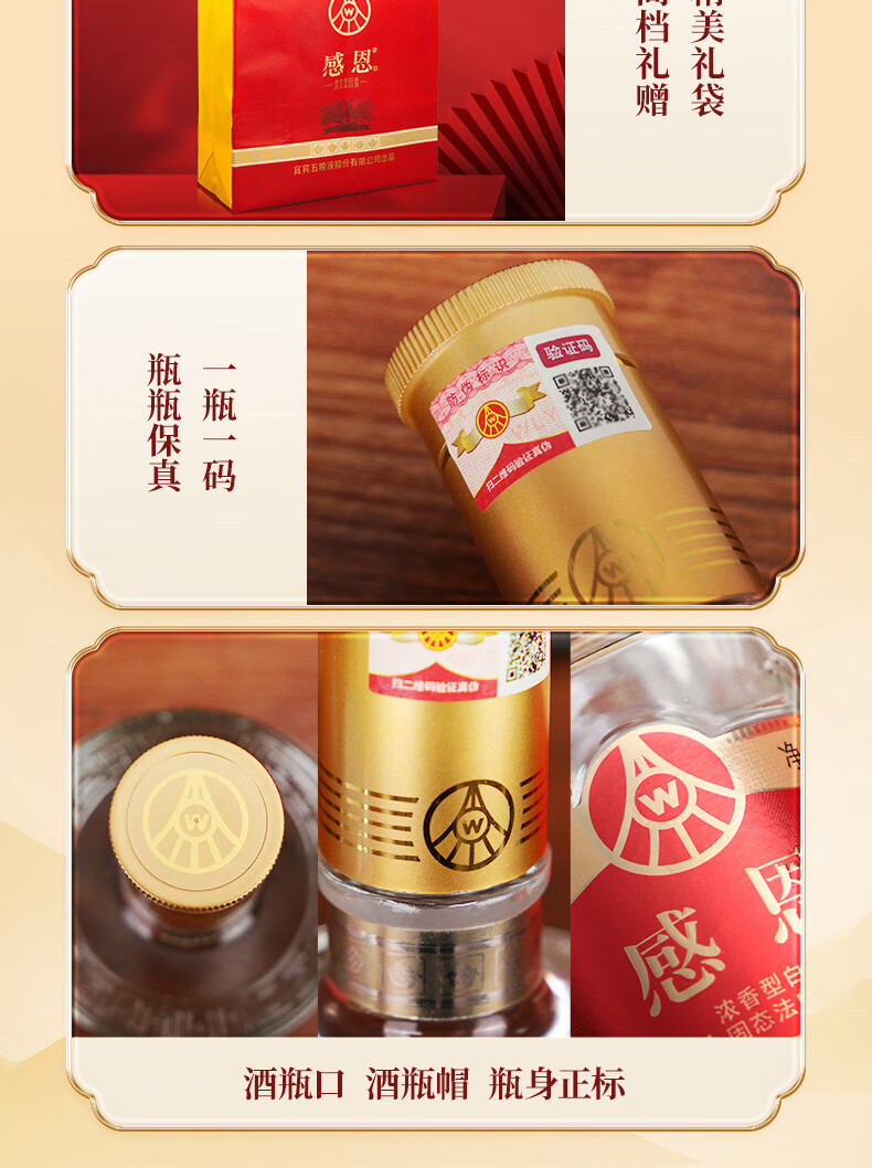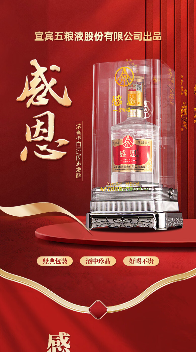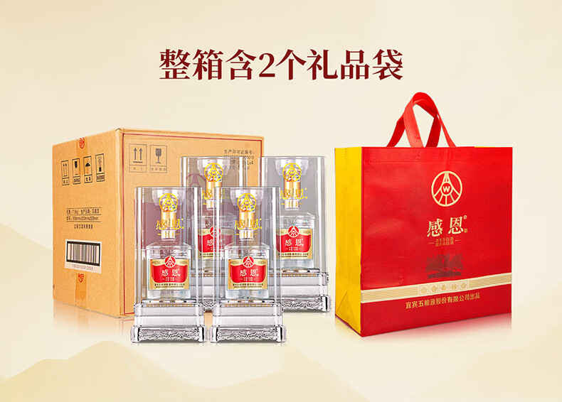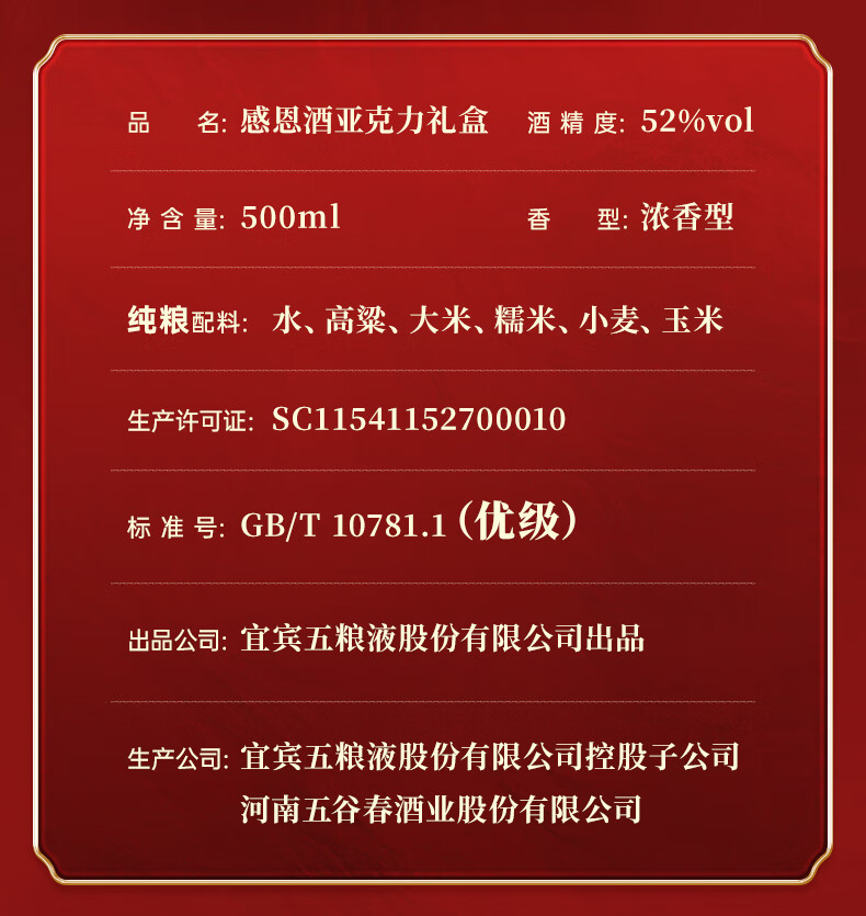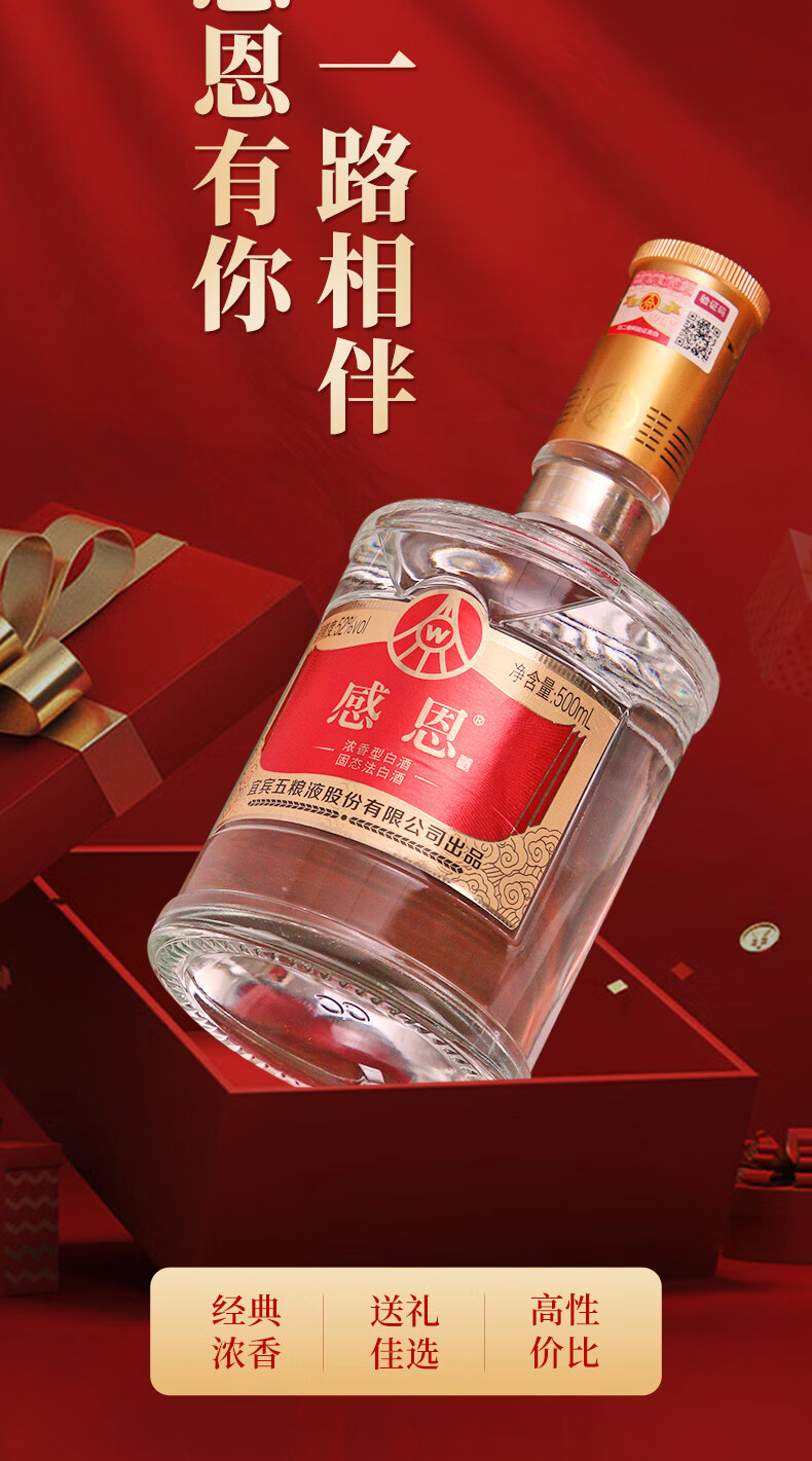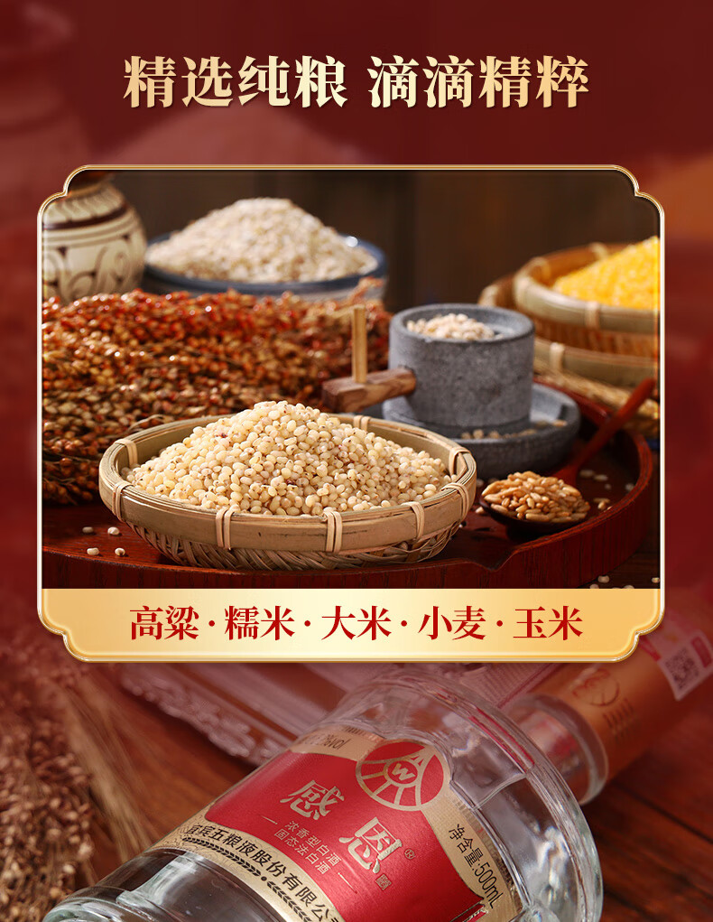 五粮浓香 感恩酒 白酒 五粮液股份出品 52度 500mL 8瓶 【赠同款酒水1瓶】