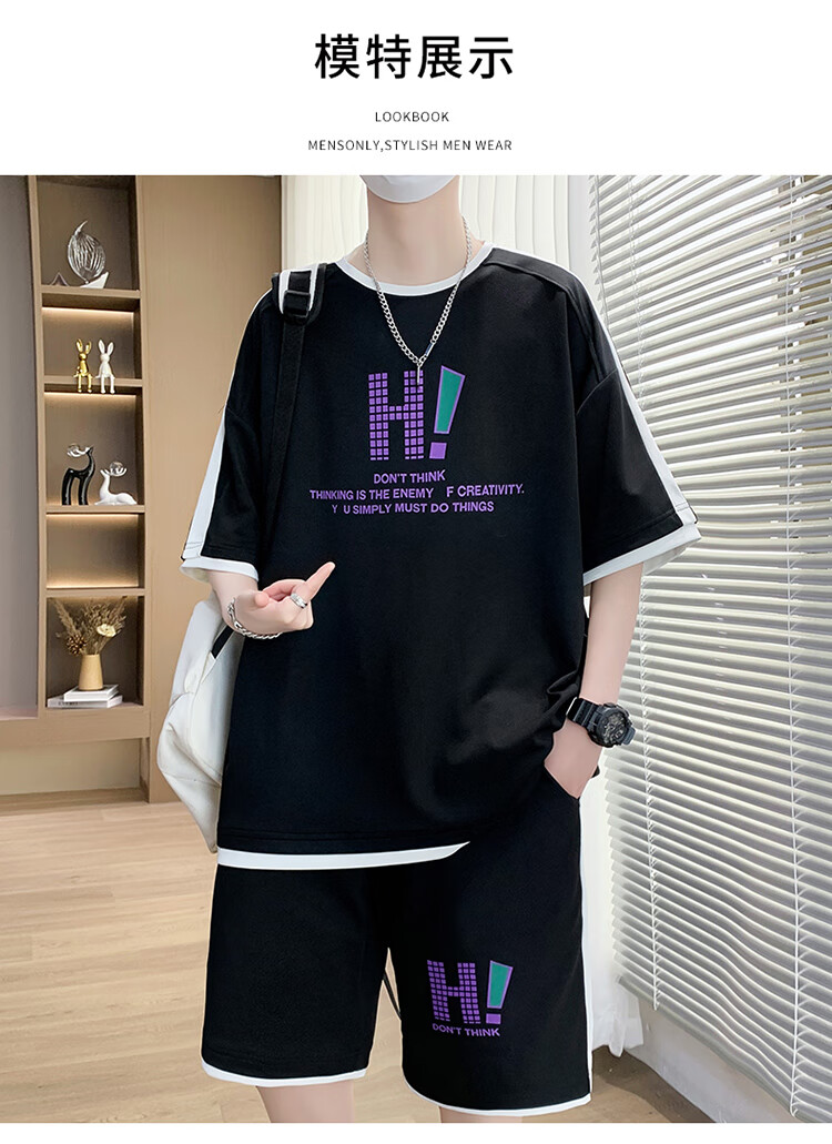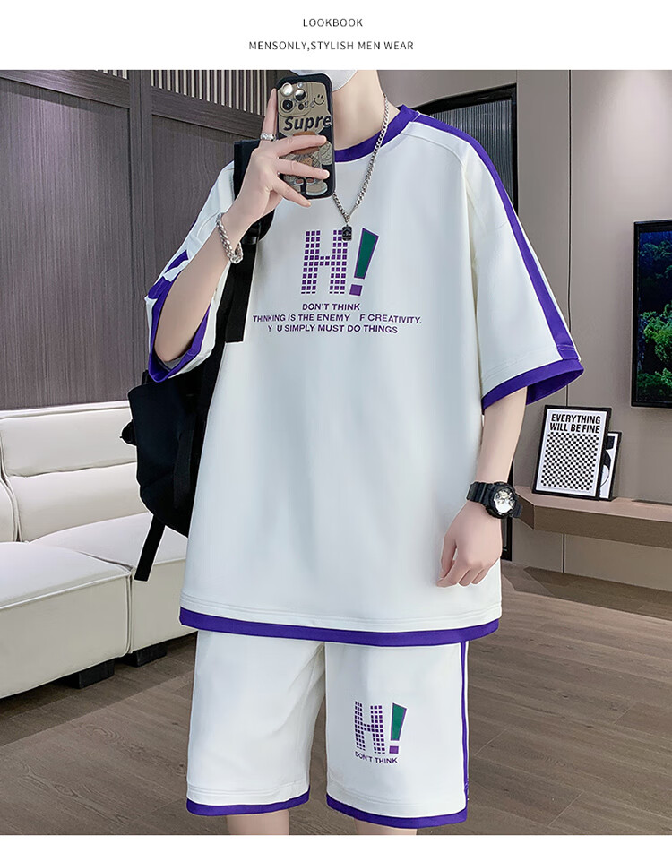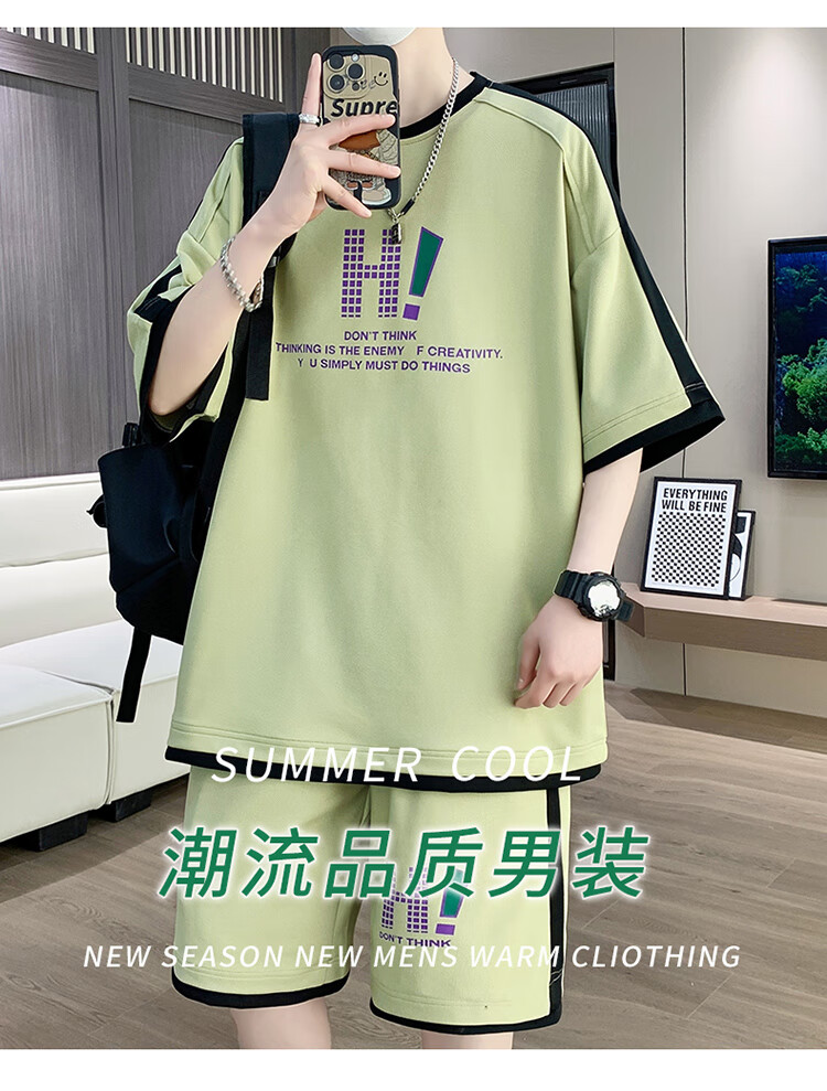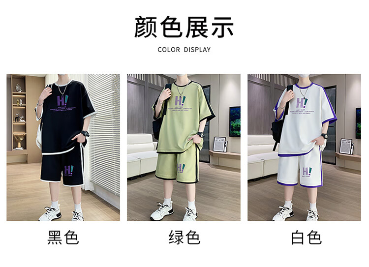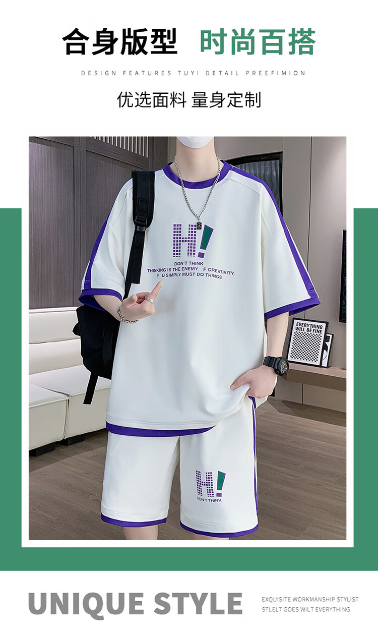 森马青少年夏季套装男孩12-15岁初中学生短袖t恤14大童运动衣服两件套 T66白色套装【短袖+短裤】 品质 XL 建议(110-130斤左右)