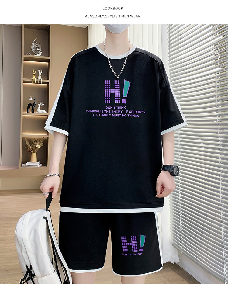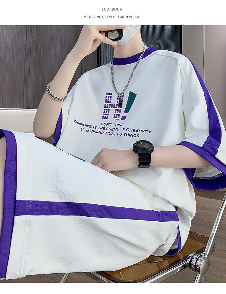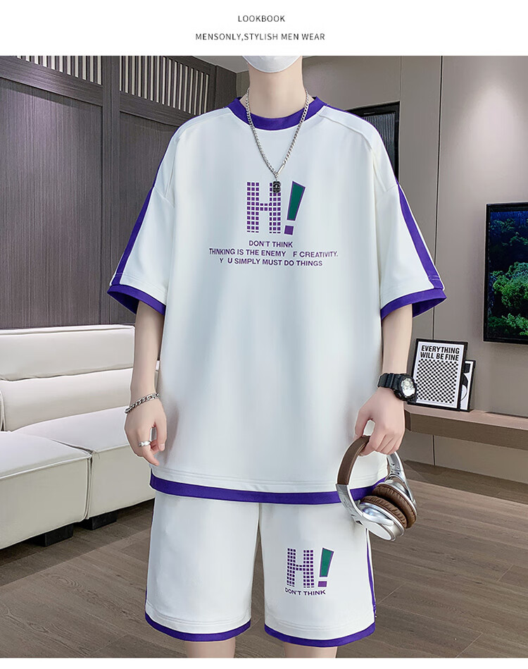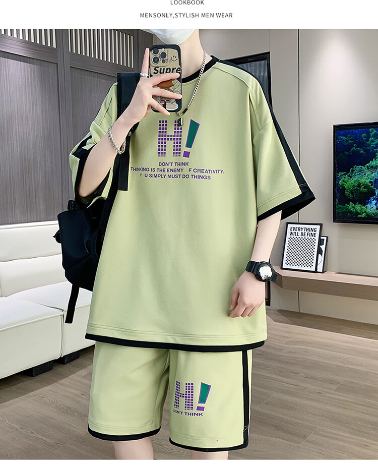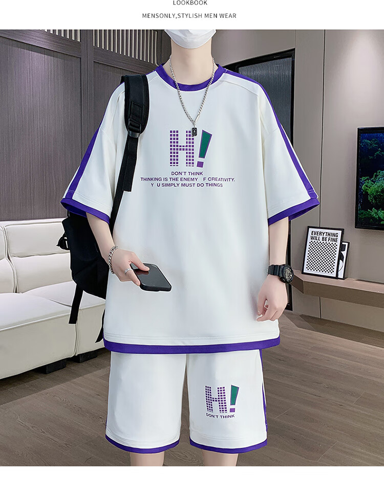 森马青少年夏季套装男孩12-15岁初中学生短袖t恤14大童运动衣服两件套 T66白色套装【短袖+短裤】 品质 XL 建议(110-130斤左右)