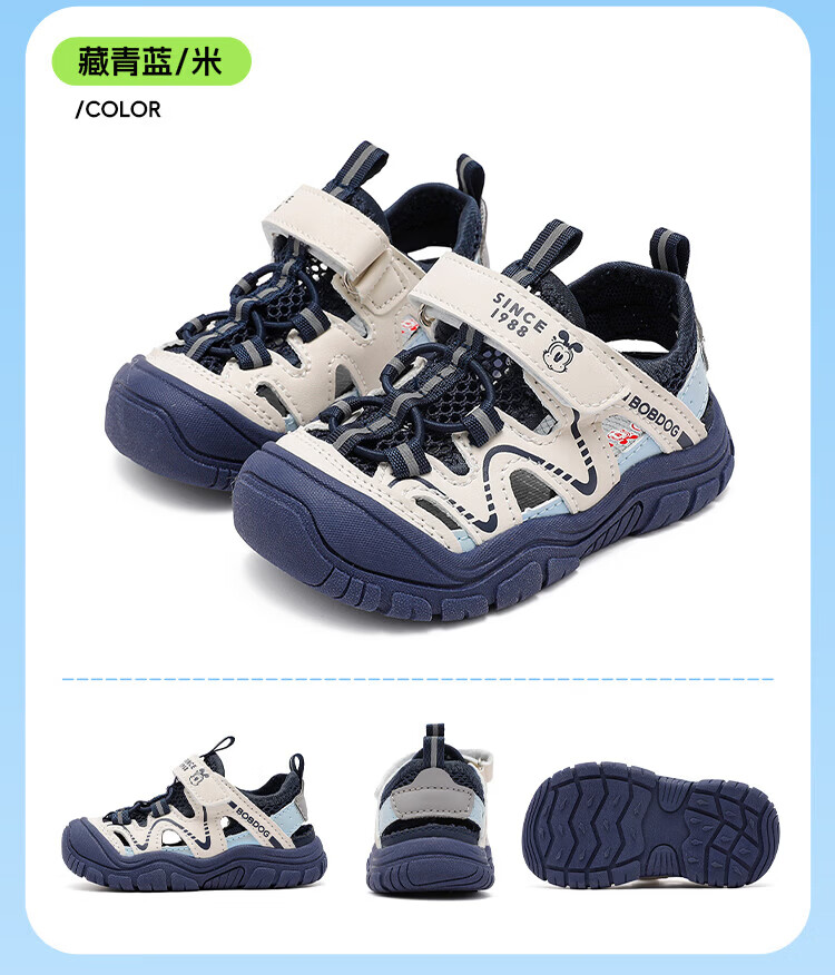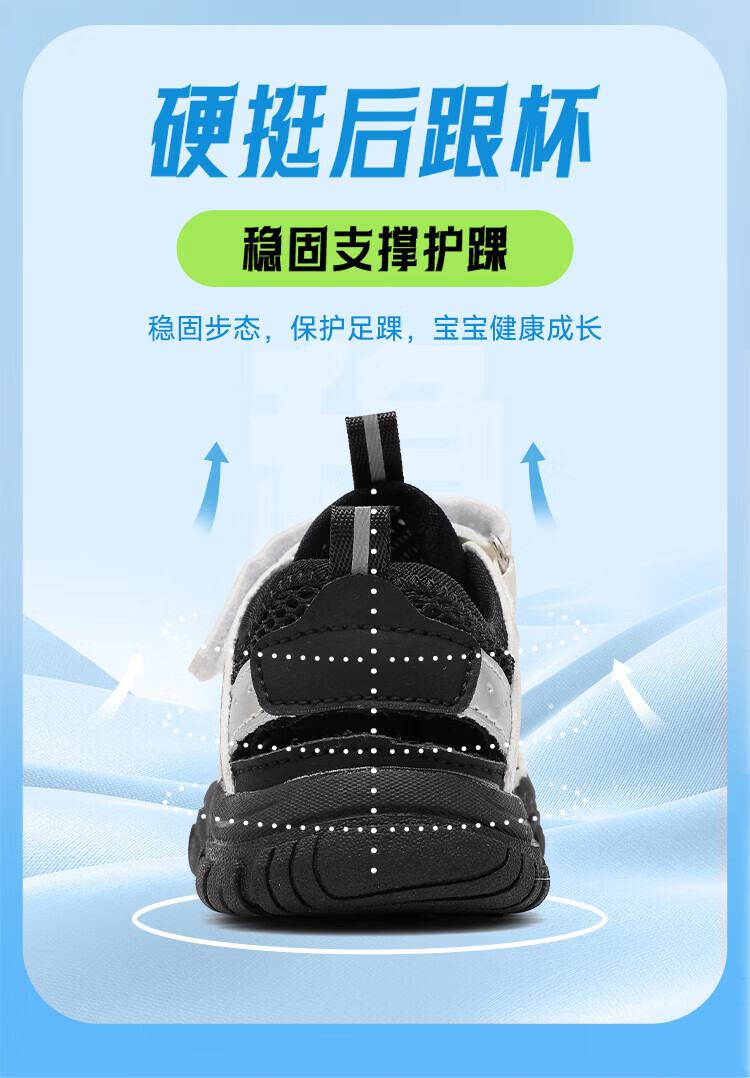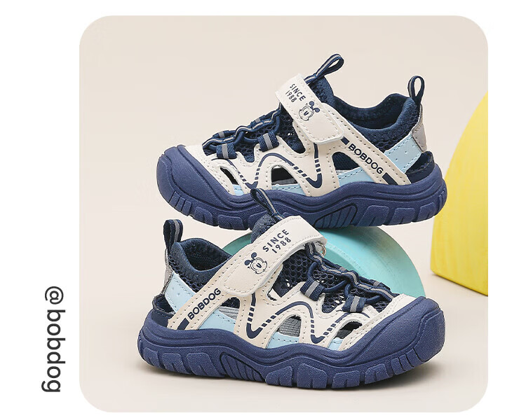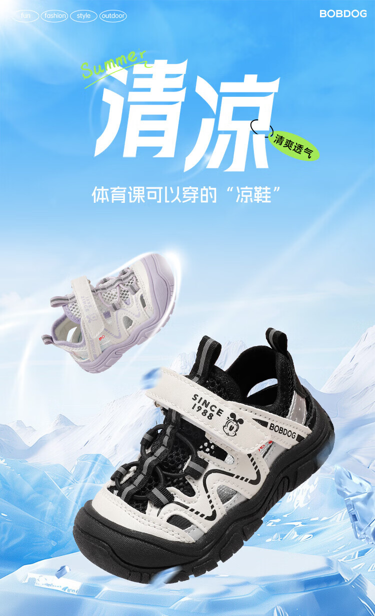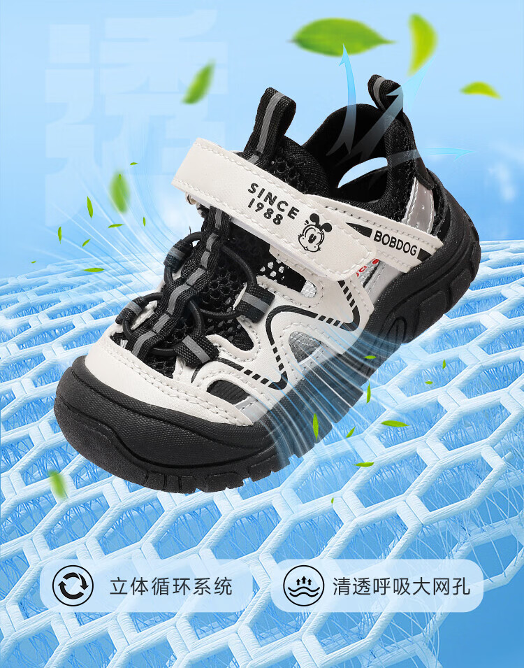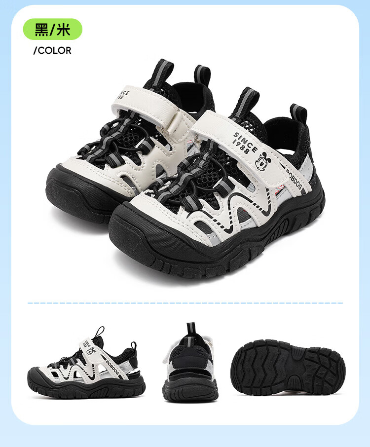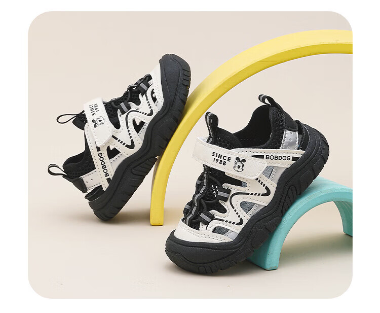 巴布豆(BOBDOG)童鞋男童夏季透气框子鞋2026女宝小童学步鞋低帮儿童运动凉鞋 黑/米 25 适合脚长15.0cm