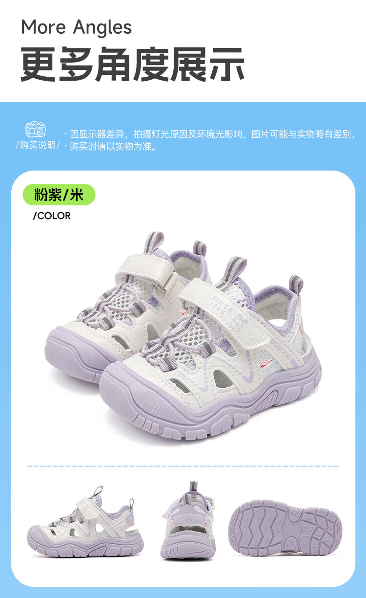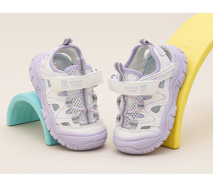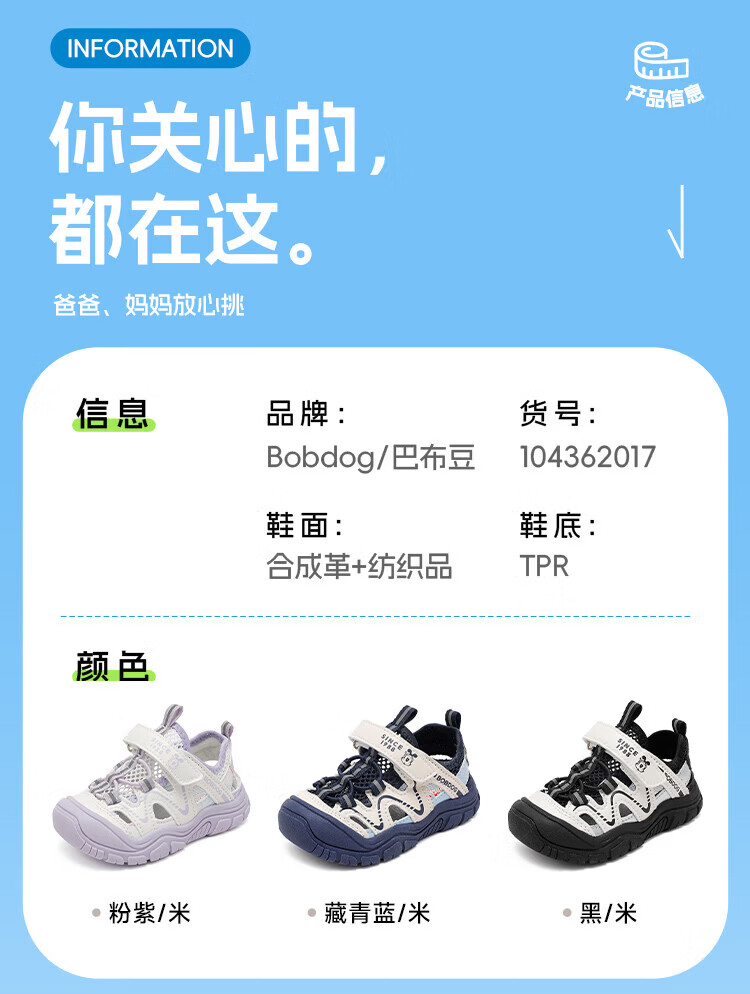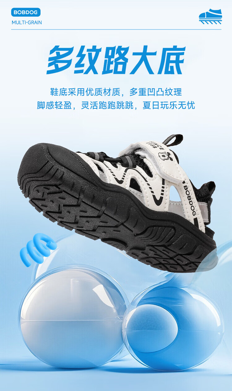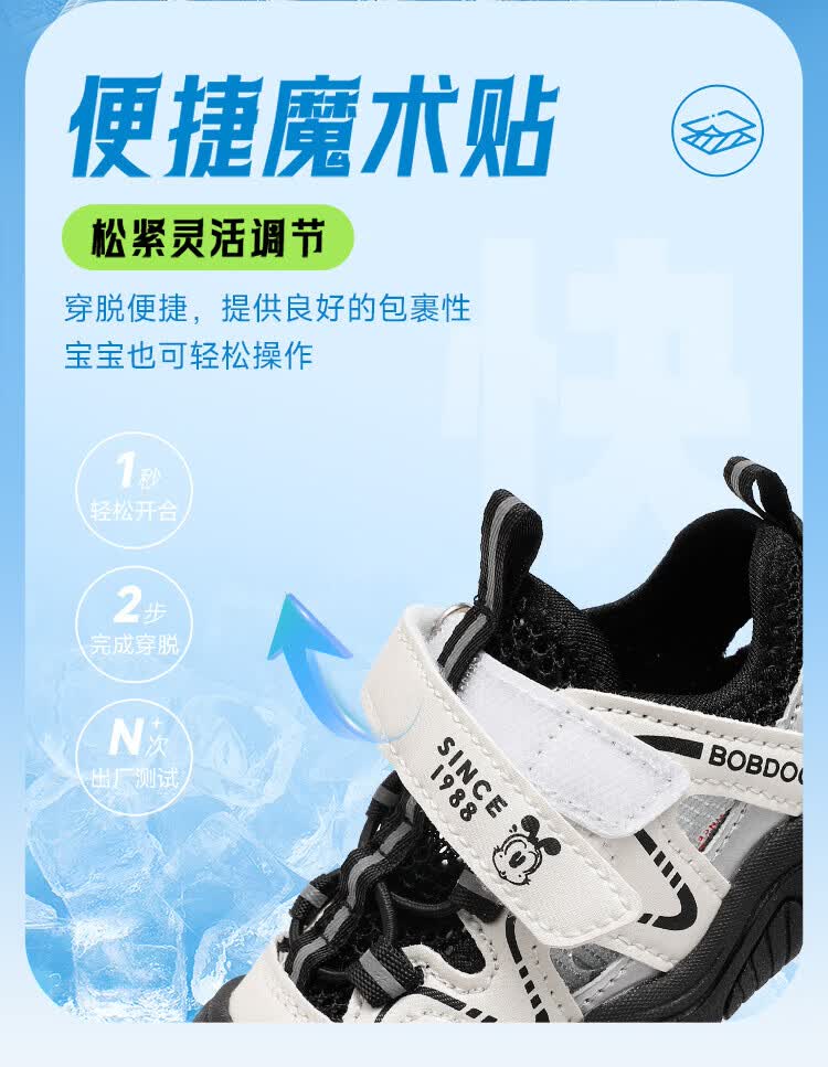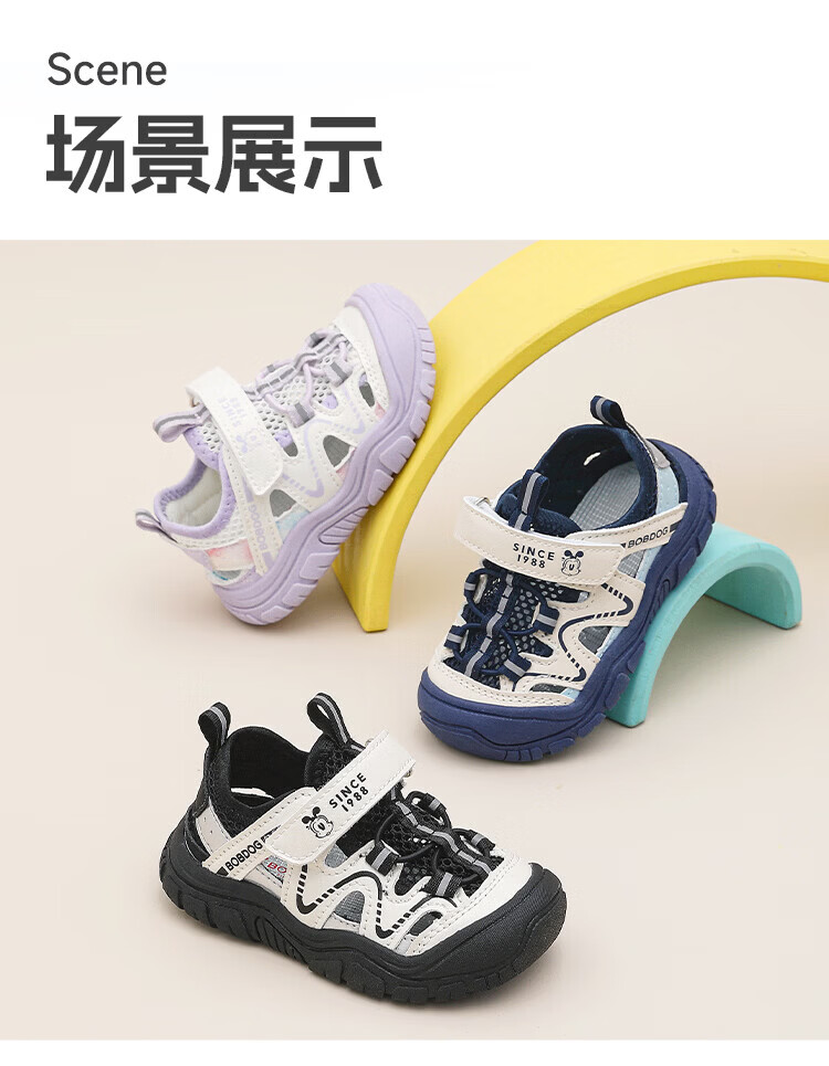 巴布豆(BOBDOG)童鞋男童夏季透气框子鞋2026女宝小童学步鞋低帮儿童运动凉鞋 黑/米 25 适合脚长15.0cm