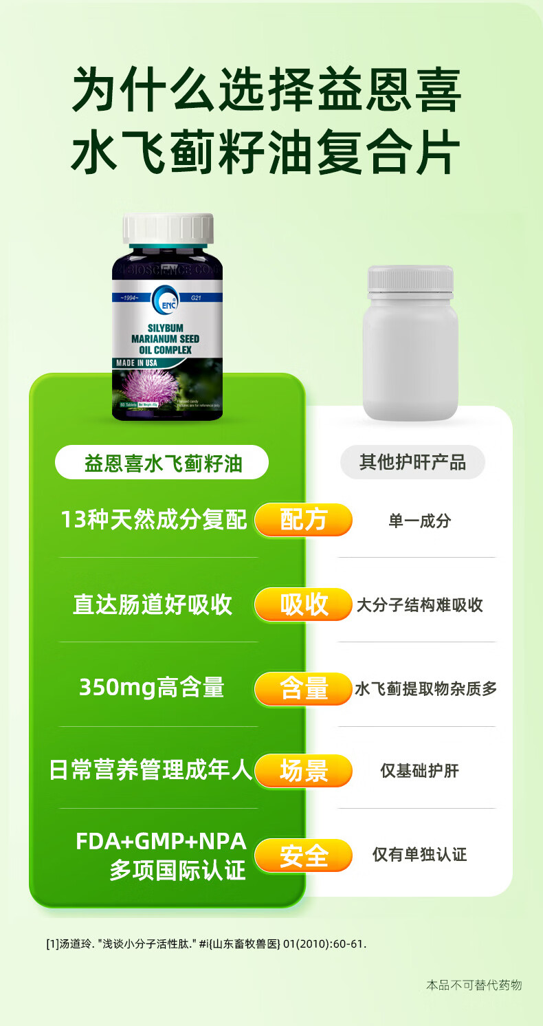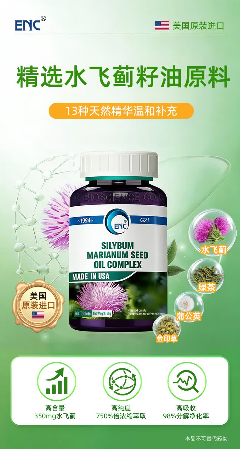 益恩喜奶蓟草750%水飞蓟宾护保健品肝解片养男女肝应酬熬夜神器酒 水飞蓟奶蓟草【赠硒片1瓶】60粒/瓶