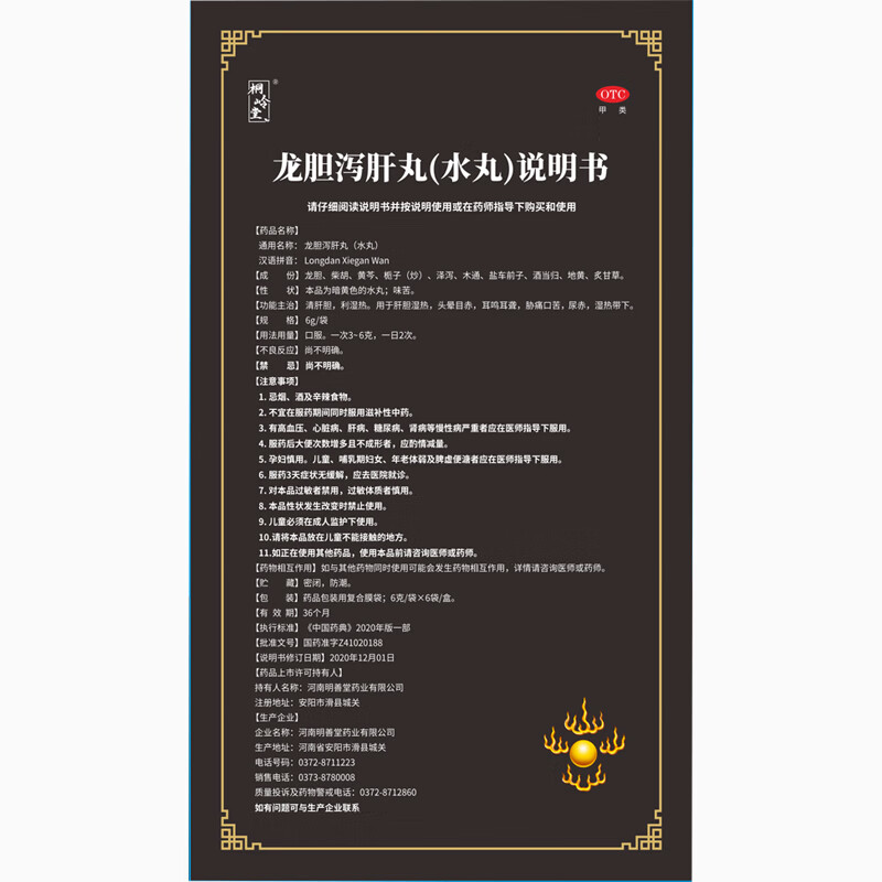 [桐岭堂]龙胆泻肝丸 6g*6袋 5盒装 6g*6袋/盒 清肝火口苦口臭尿黄利湿热肝火旺易急躁胃火旺耳肿痛鸣龙胆泻肝丸 药师推荐