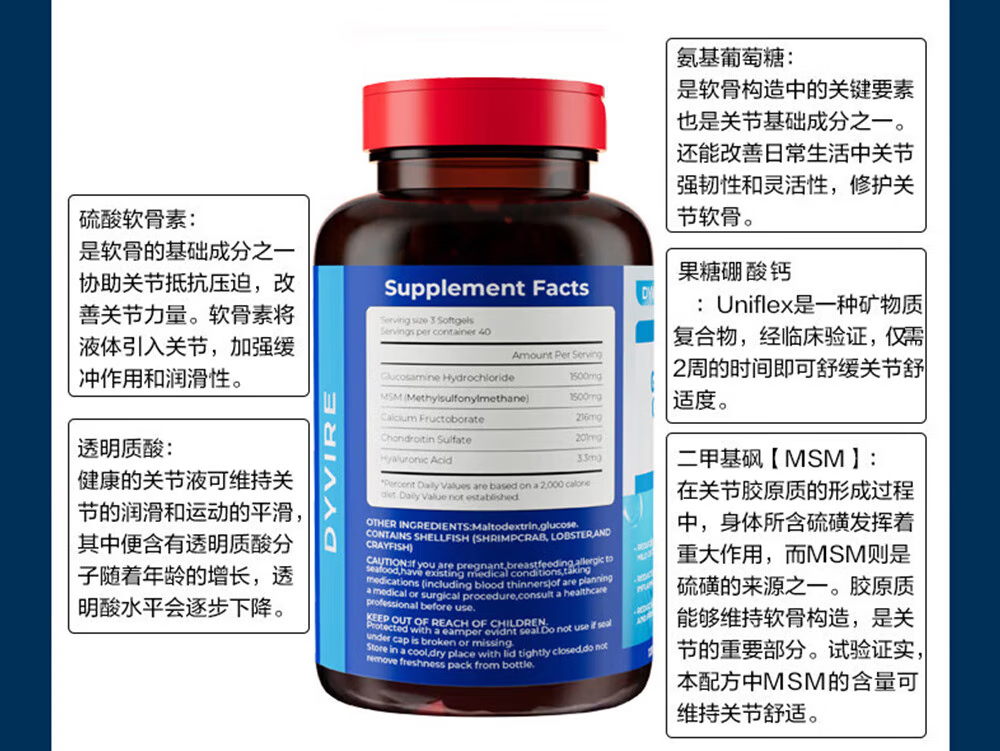 DYVIRE美国原装进口氨糖软骨素钙片120粒补软骨护关节轻松活动1500mg 【1瓶 缓痛装】【缓解关节疼痛】