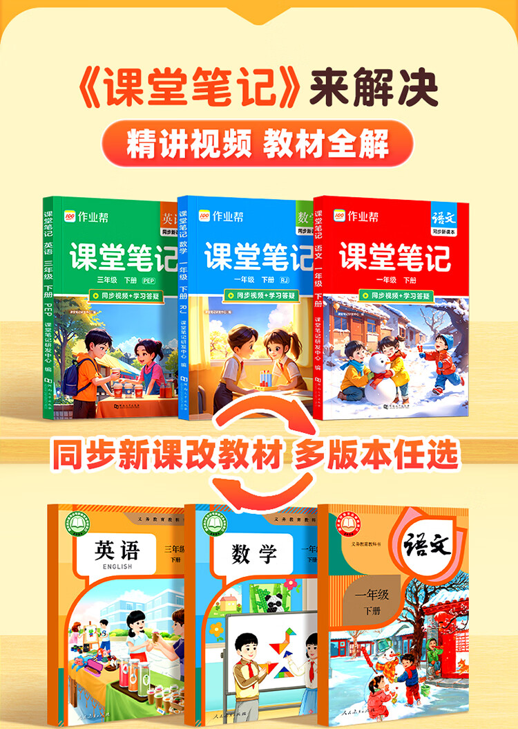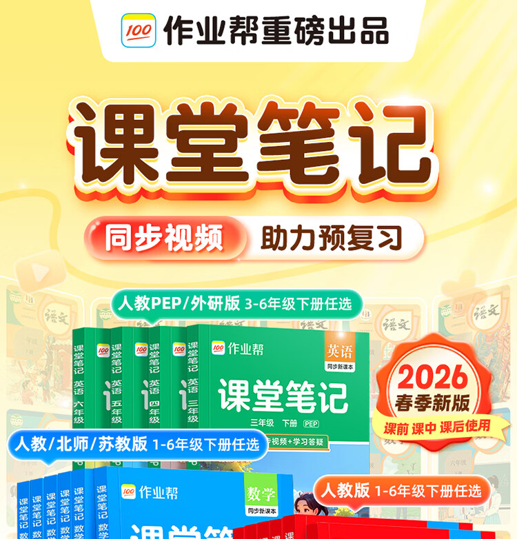 作业帮【2026春 课堂笔记下册】小学1-6年级课堂笔记含2025秋季上册 多版本人教北师苏教外研同步教材精讲语文数学英语小学生课前预习单课后复习辅导书 【单本装含赠册】语文(人教版) | 同步新教材