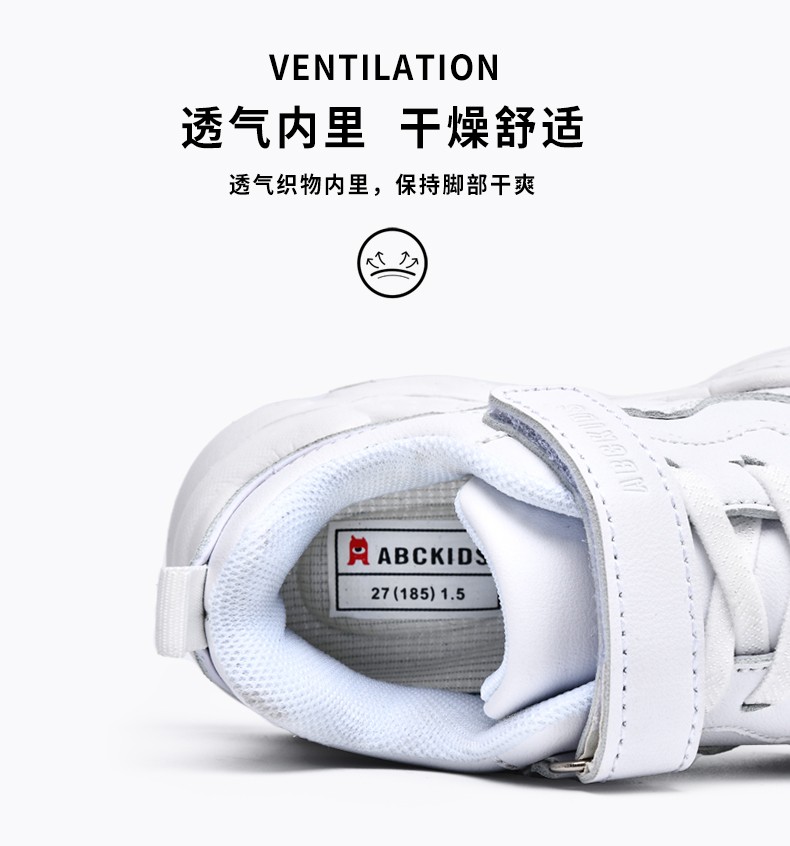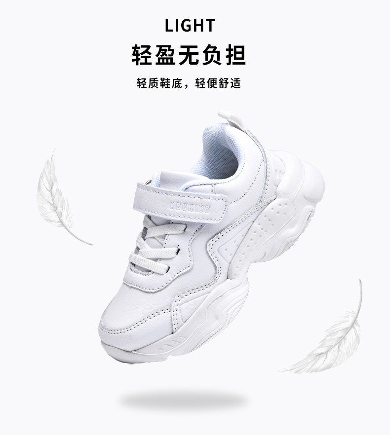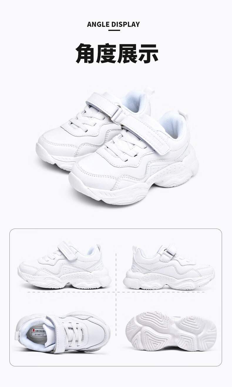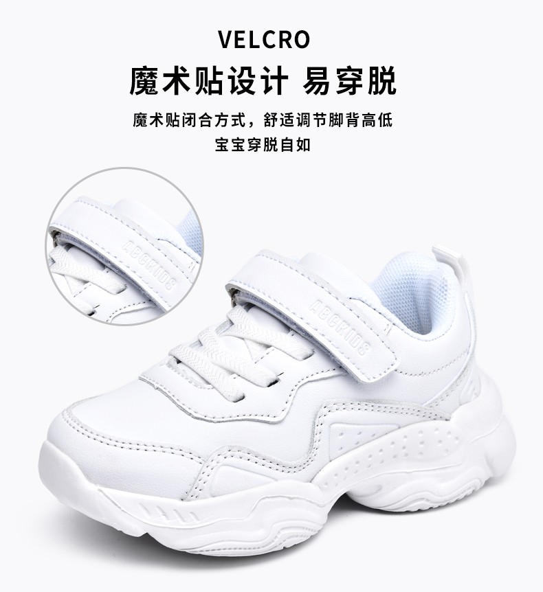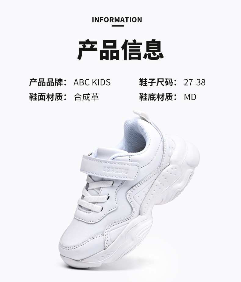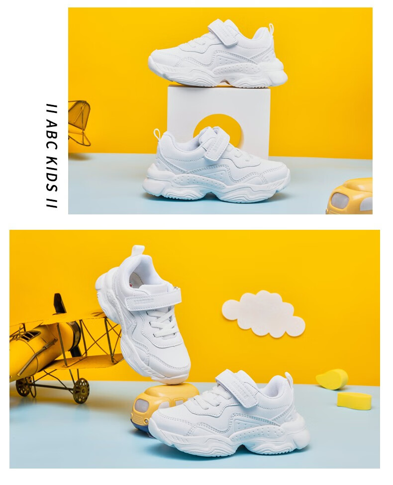 ABC KIDS童鞋男童鞋子2025冬季新款儿童运动鞋小白鞋女中小童白色表演鞋子 革面白色 33