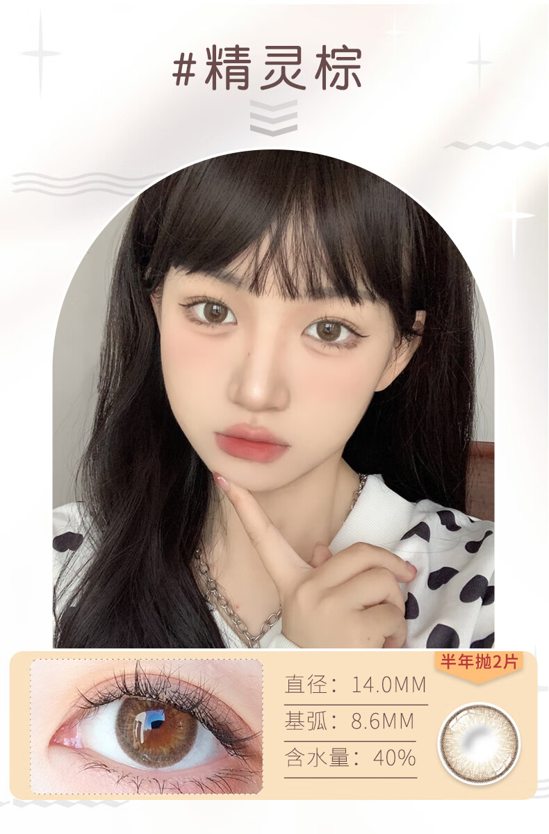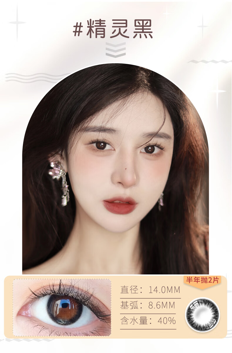 Color Baby韩国进口美瞳半年抛2片14.0小直径精灵黑棕1300高度数隐形眼镜 精灵黑【2片】-自然素颜款 700度