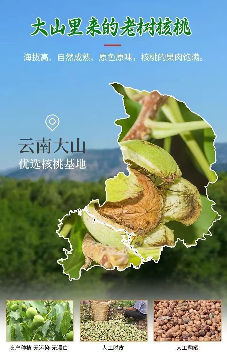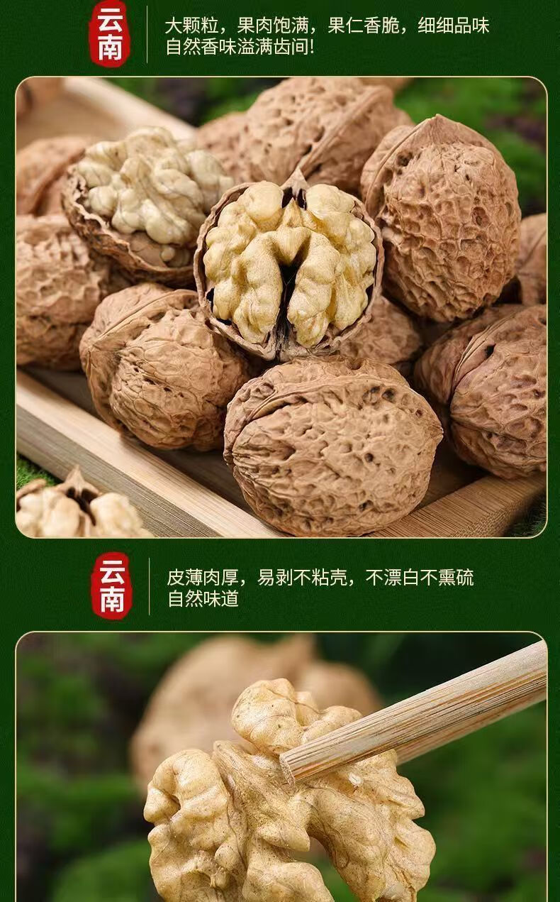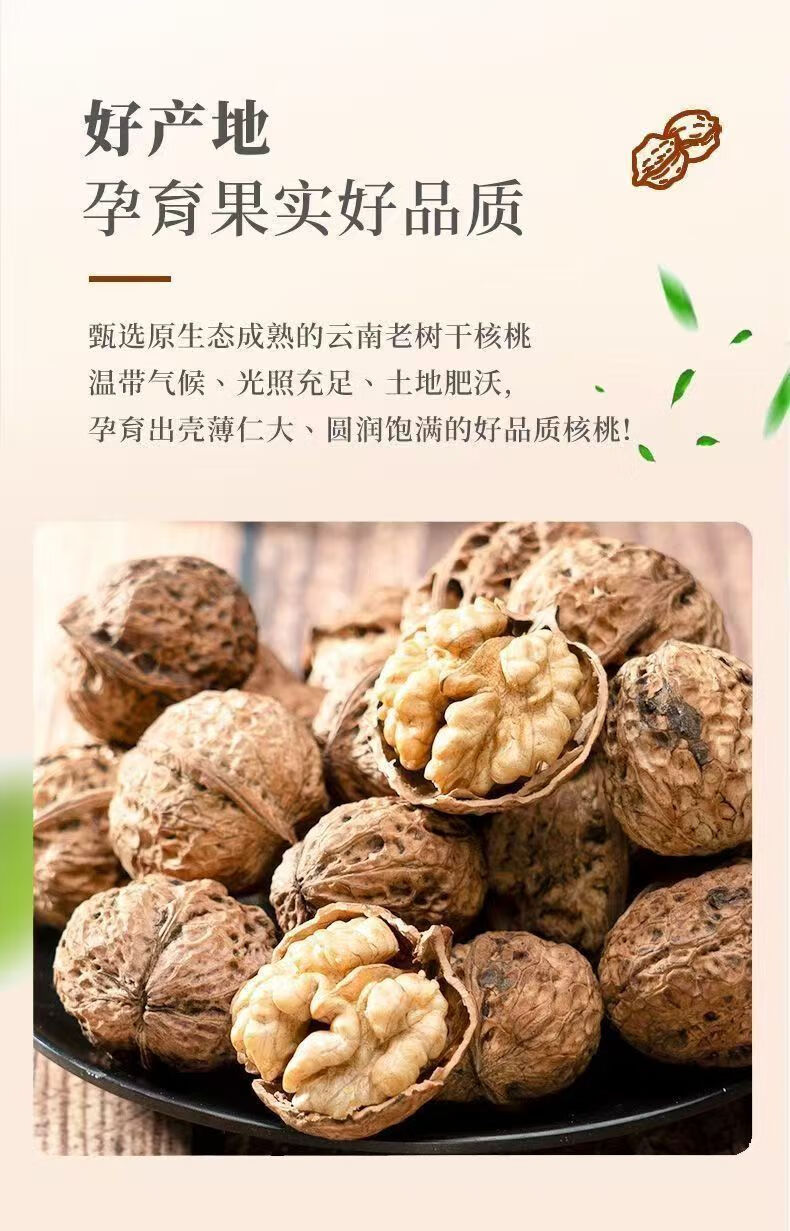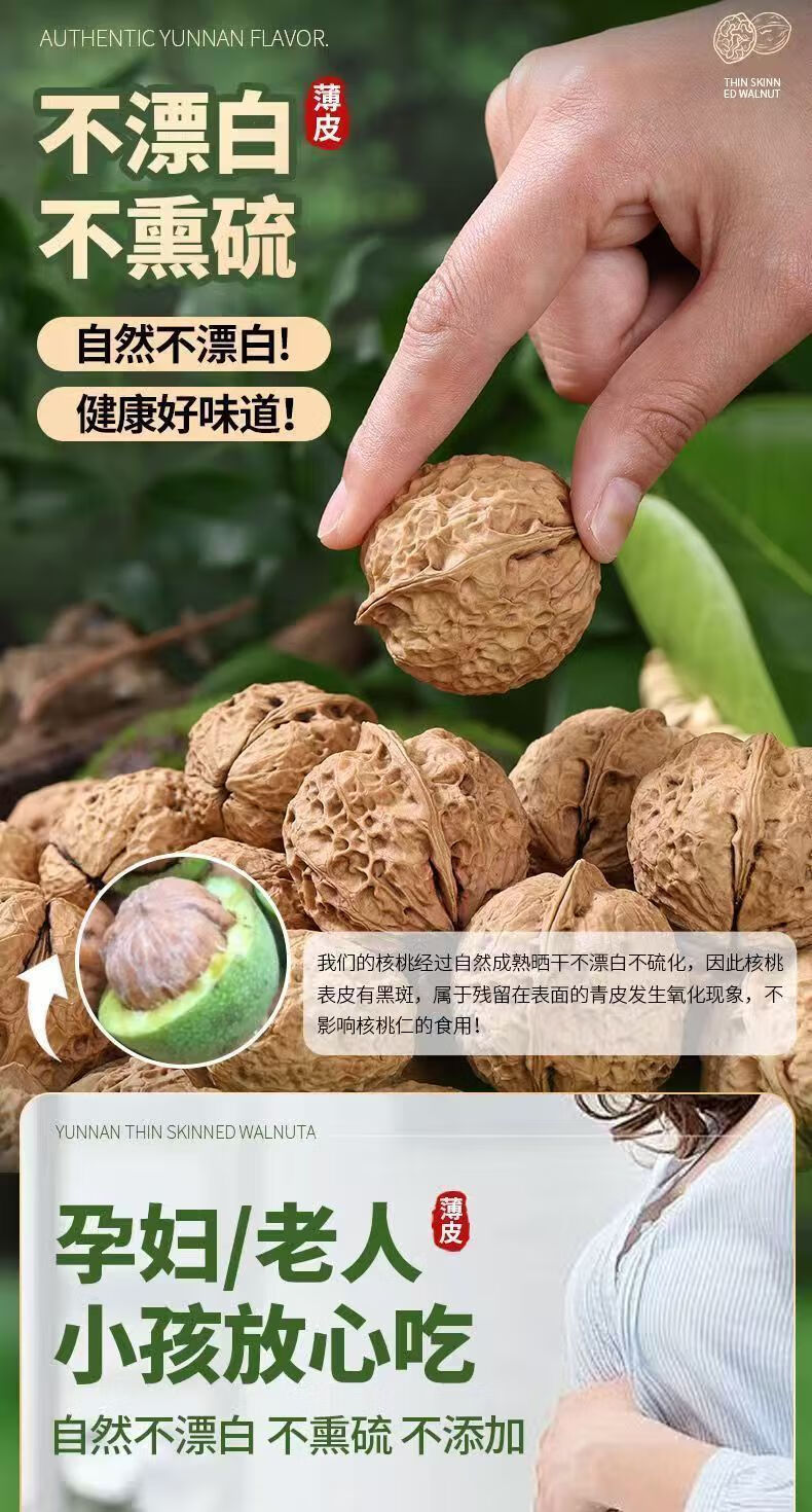 【原生态无漂白】新货正宗云南核桃薄皮薄壳干核桃高山古树核桃 老树薄皮精品一级果 4斤(不送夹子)