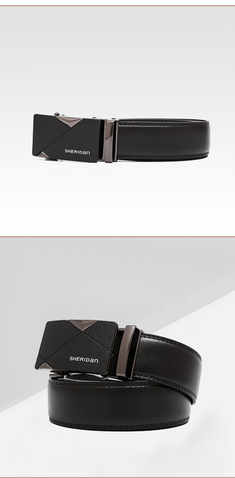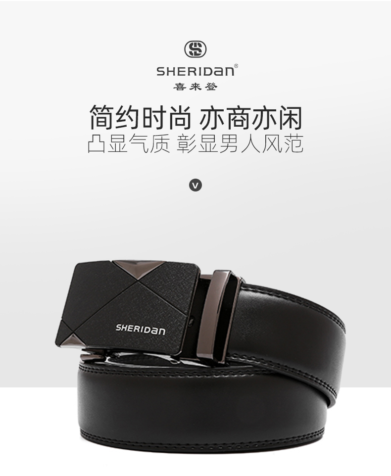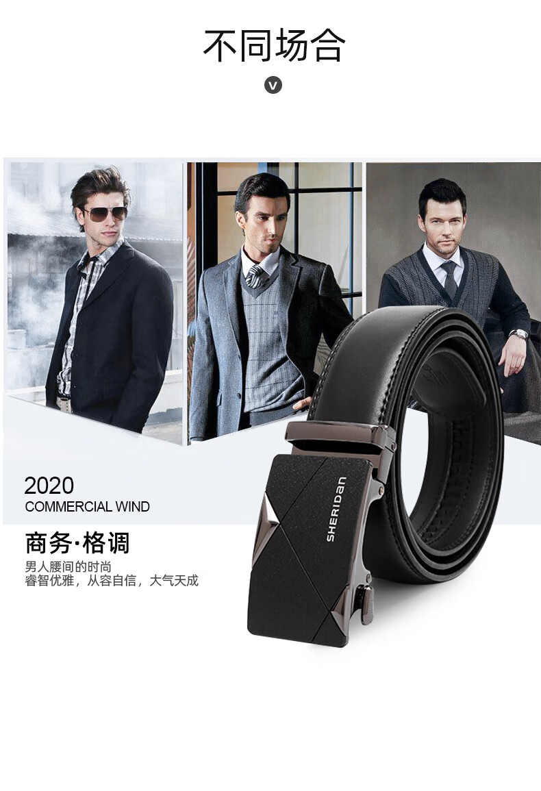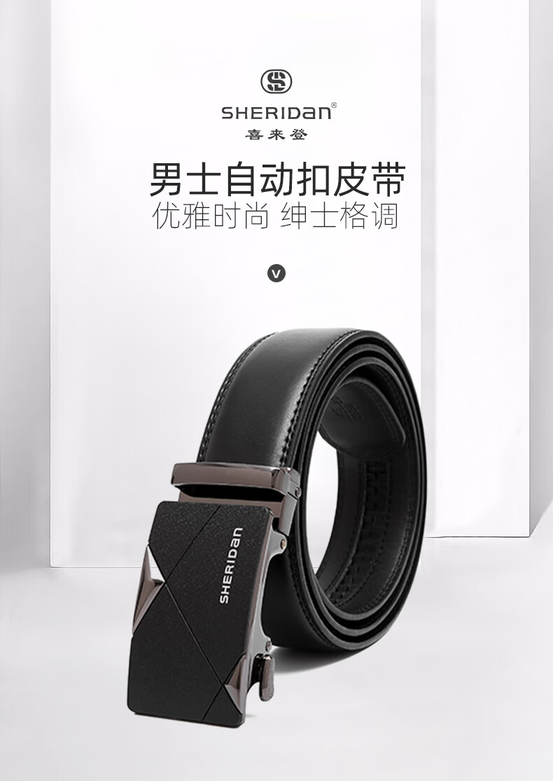 喜来登(SHERIDAN) 男士牛皮腰带 商务休闲自动扣 礼盒装生日礼物SHC453Z/NL190453S 黑色