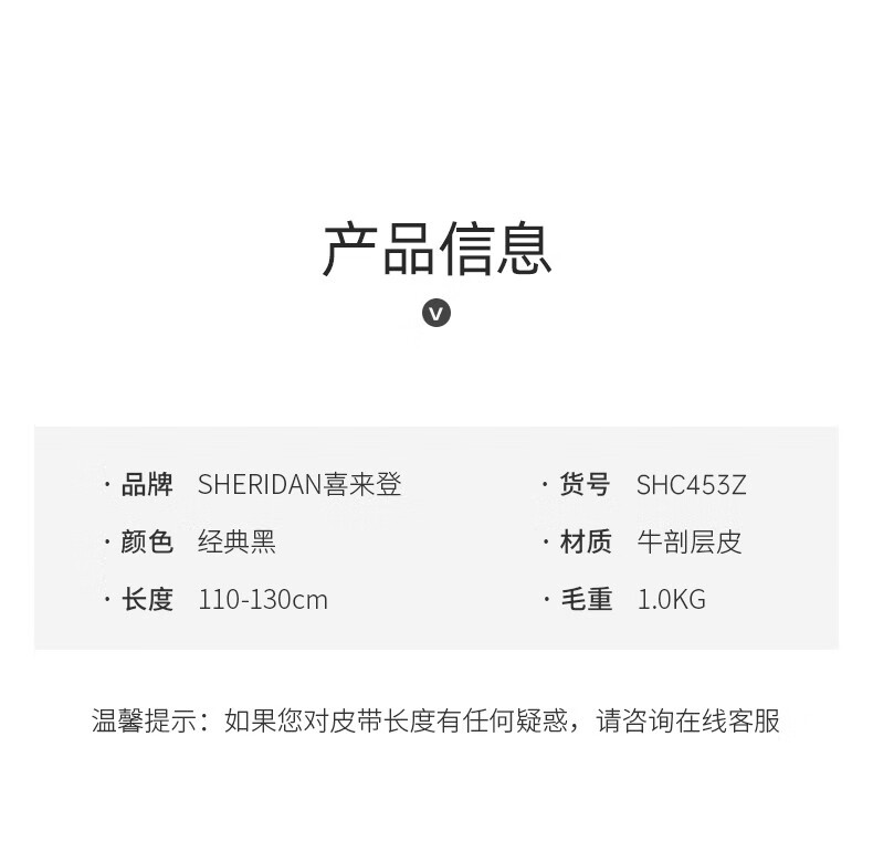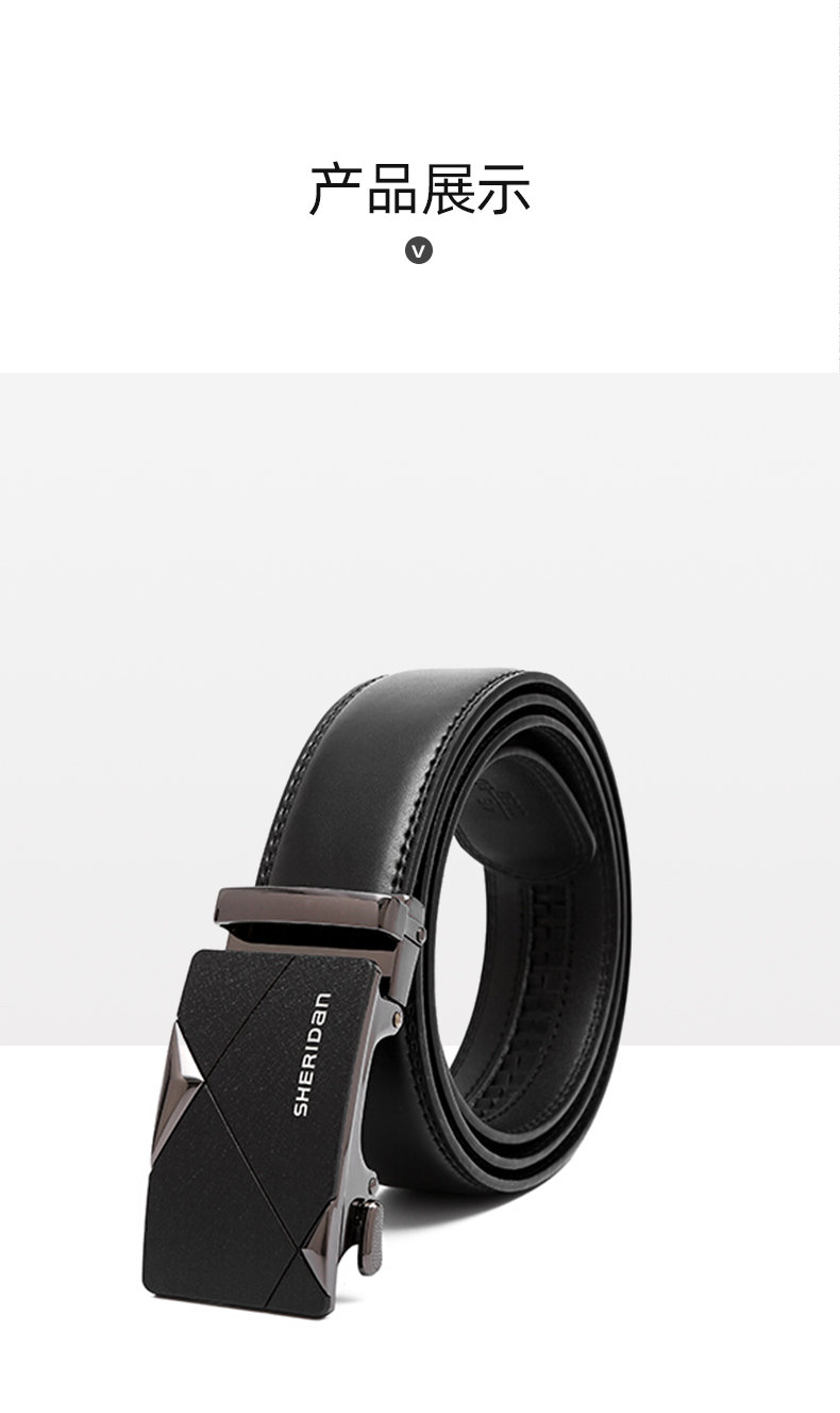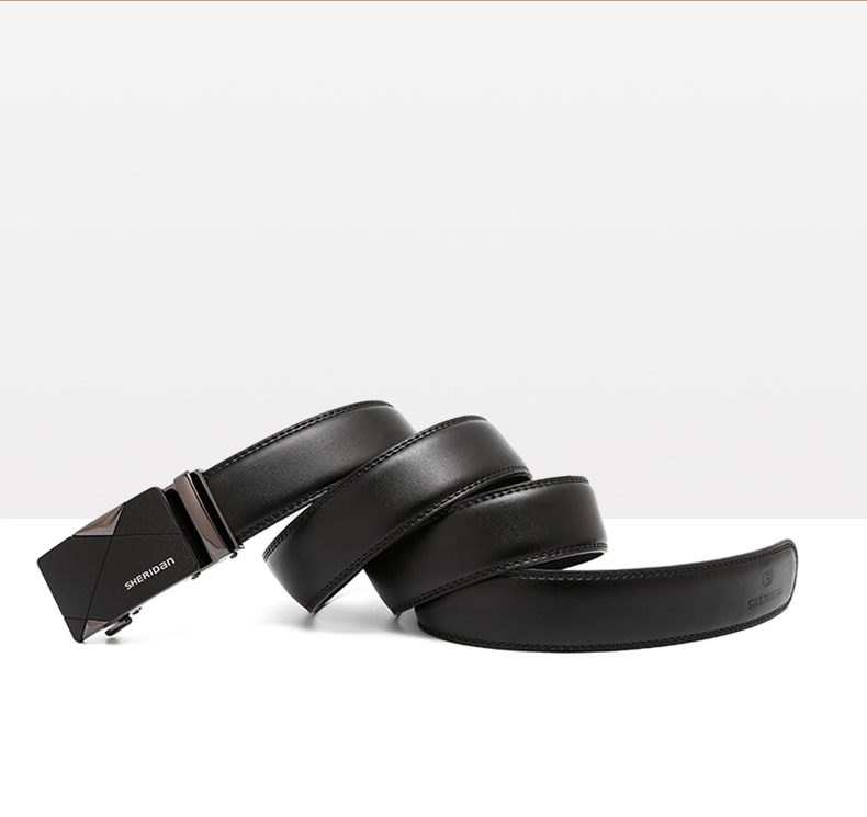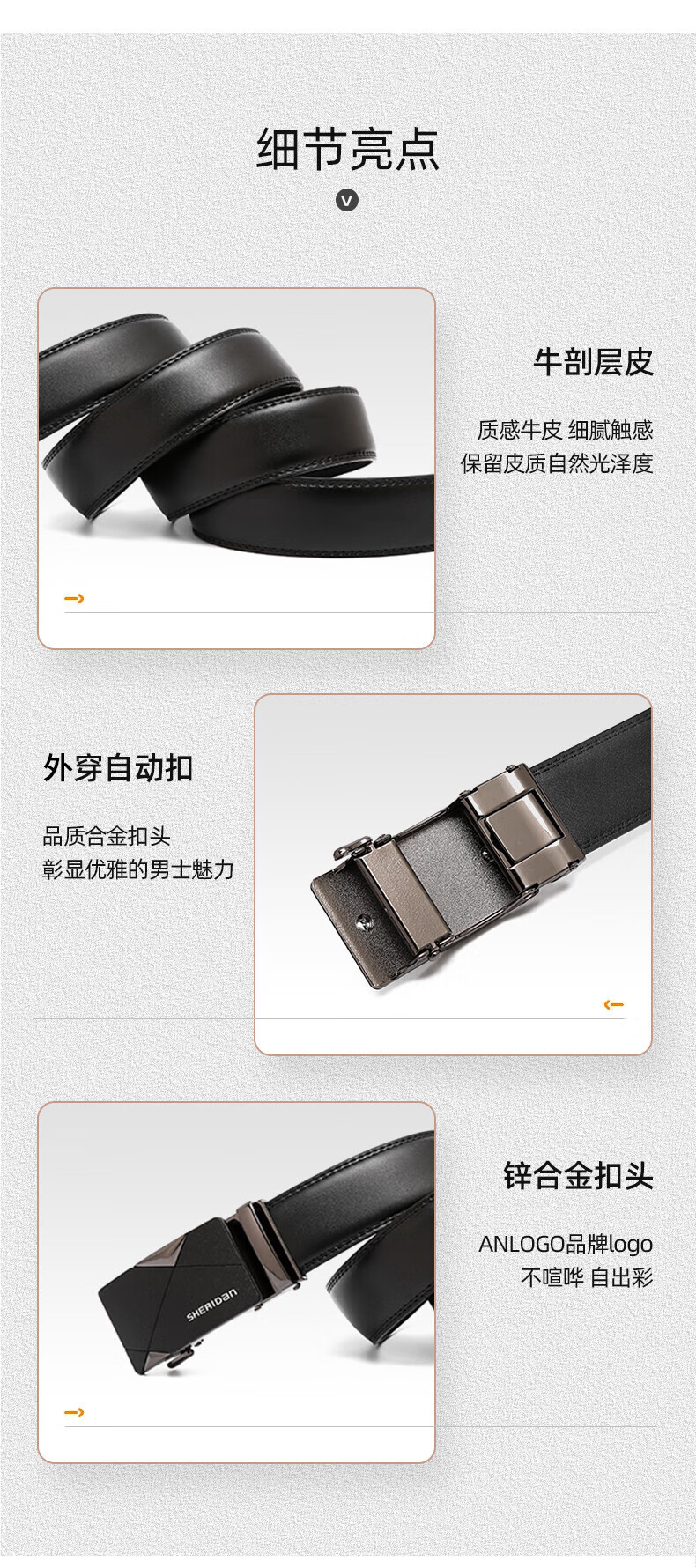 喜来登(SHERIDAN) 男士牛皮腰带 商务休闲自动扣 礼盒装生日礼物SHC453Z/NL190453S 黑色