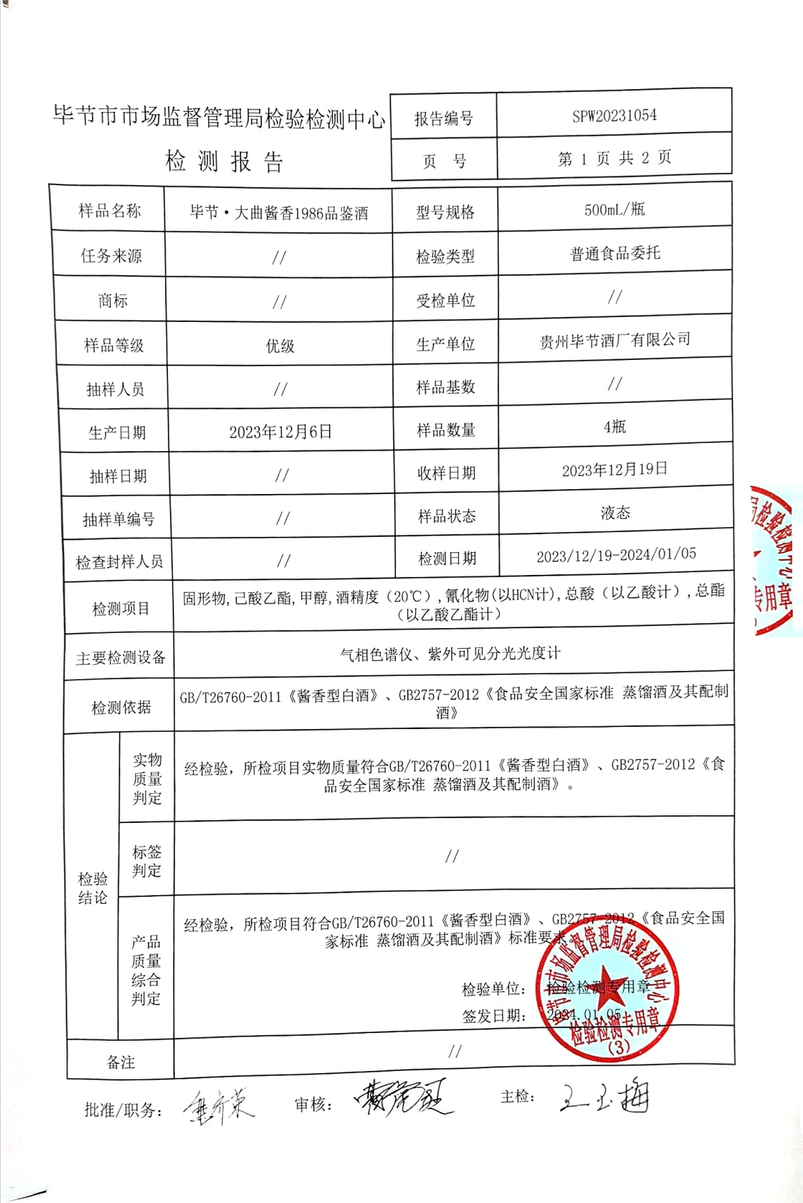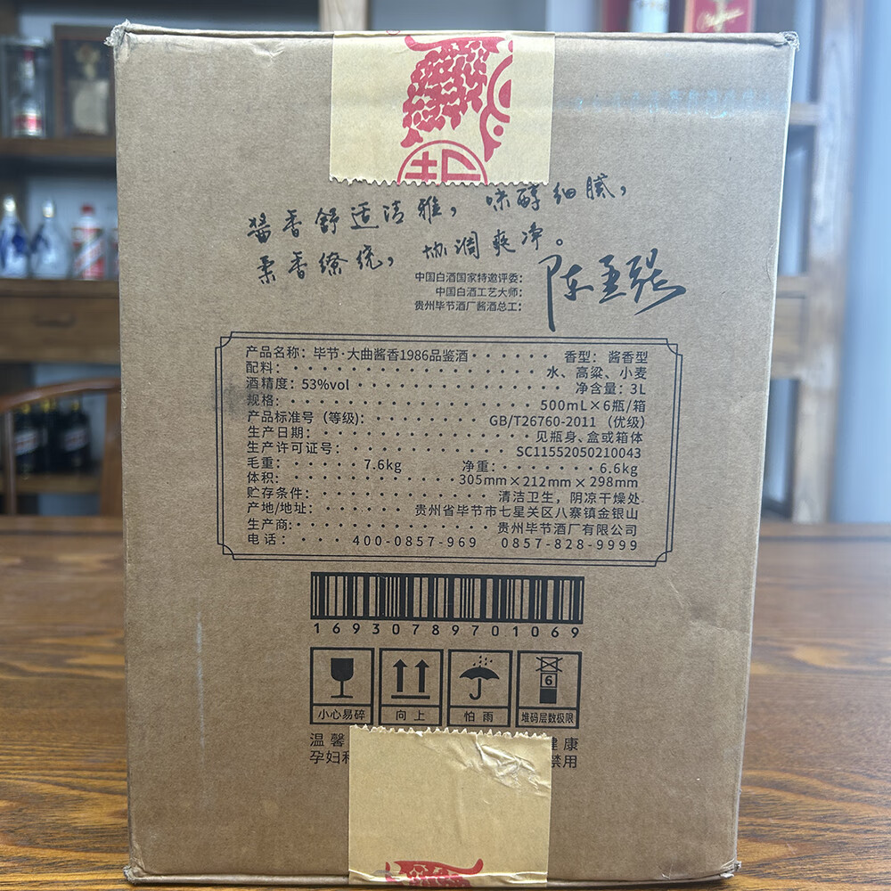 毕节酱酒1986品鉴酒 贵州毕节大曲酱香型老字号白酒 老酒回沙纪念酒 53度 500mL 6瓶 整箱