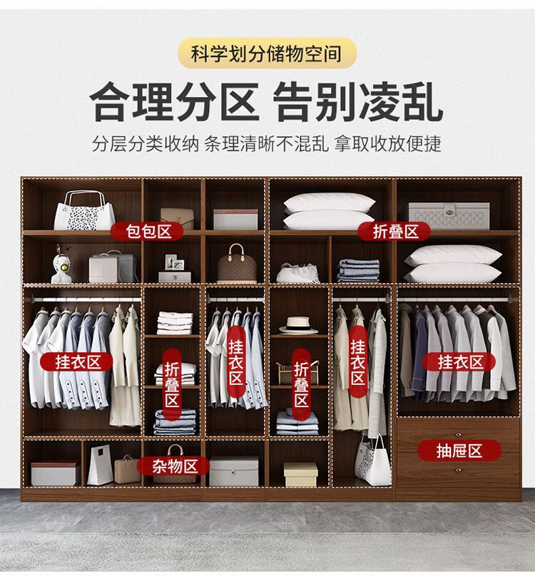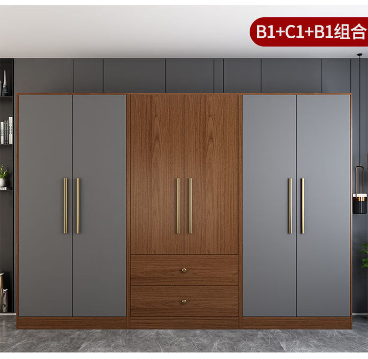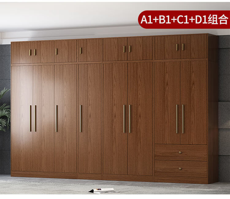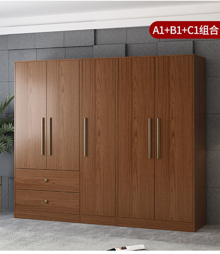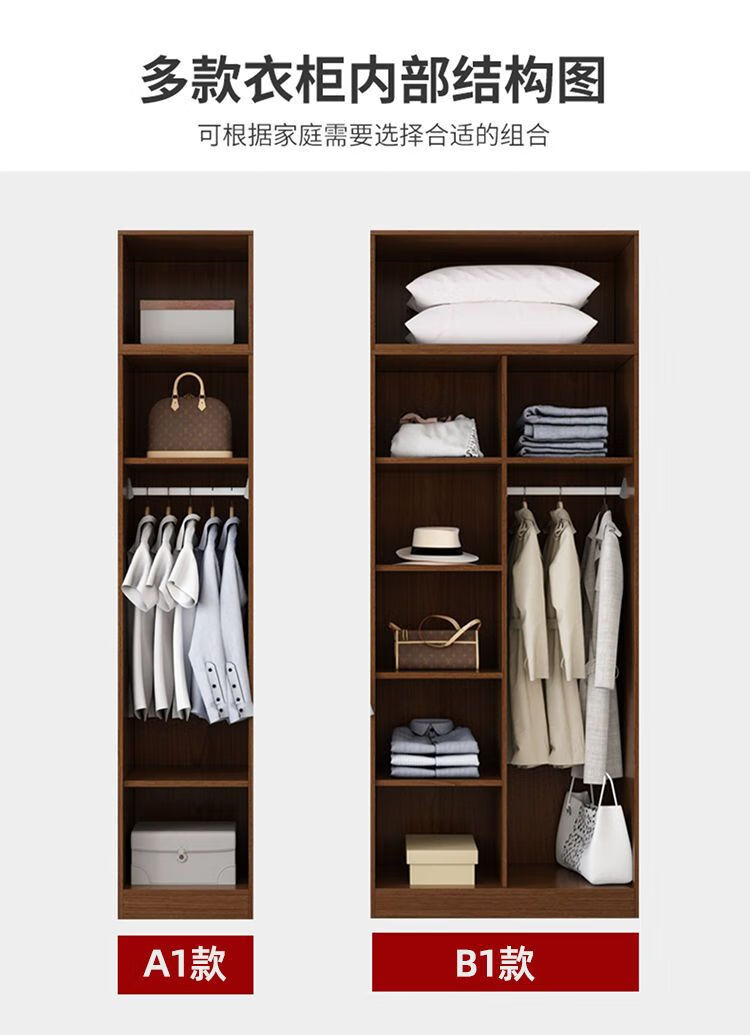 布卡格2025新款衣柜卧室家用实木质小户型储物柜子平开门组合轻奢大衣橱 A1款-单门[深胡桃] 整装(包安装)