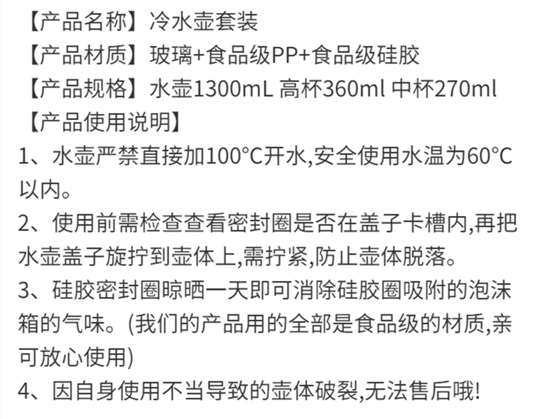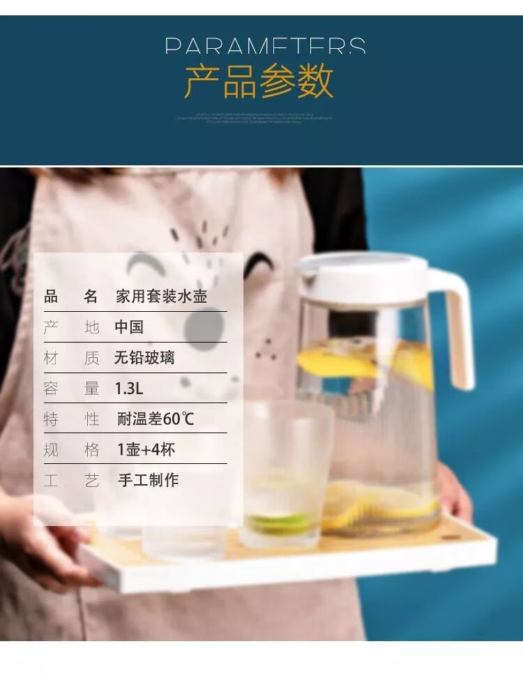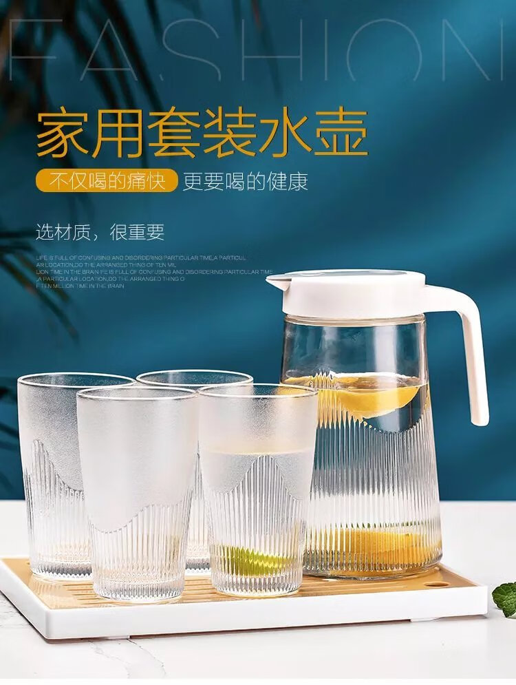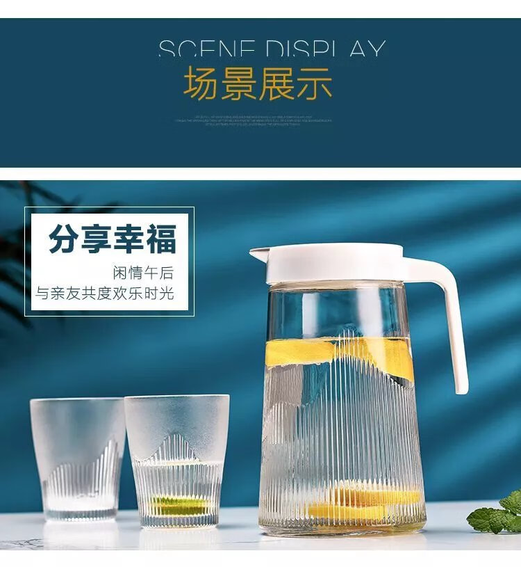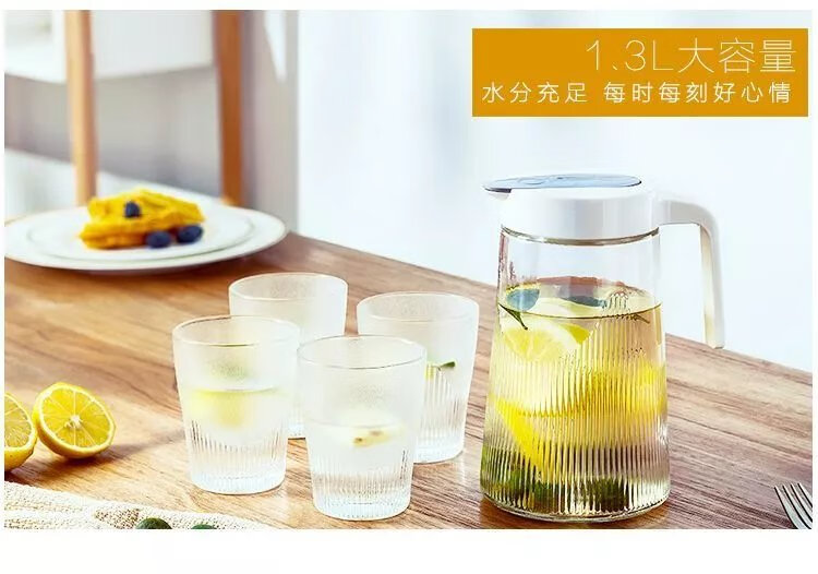 【现货现发】冷水壶凉水壶加厚玻璃水杯家用透明水壶大容量泡茶壶 山水壶*1只 1.3L