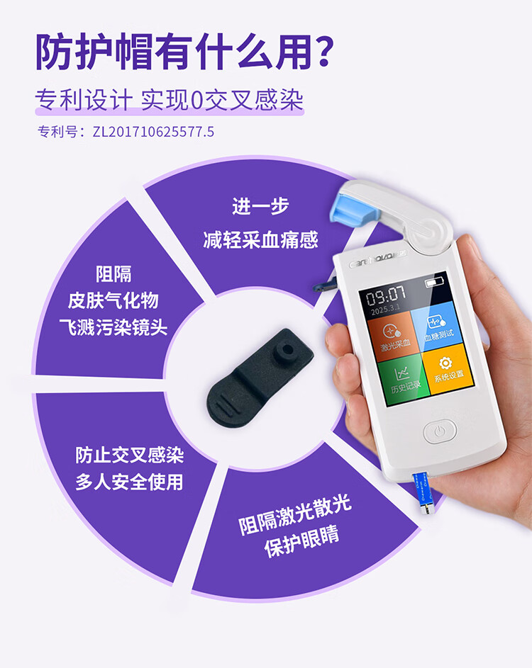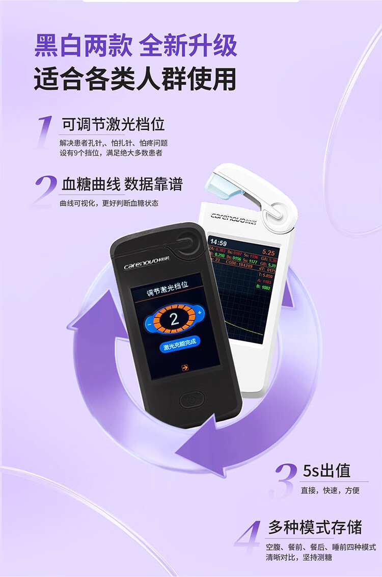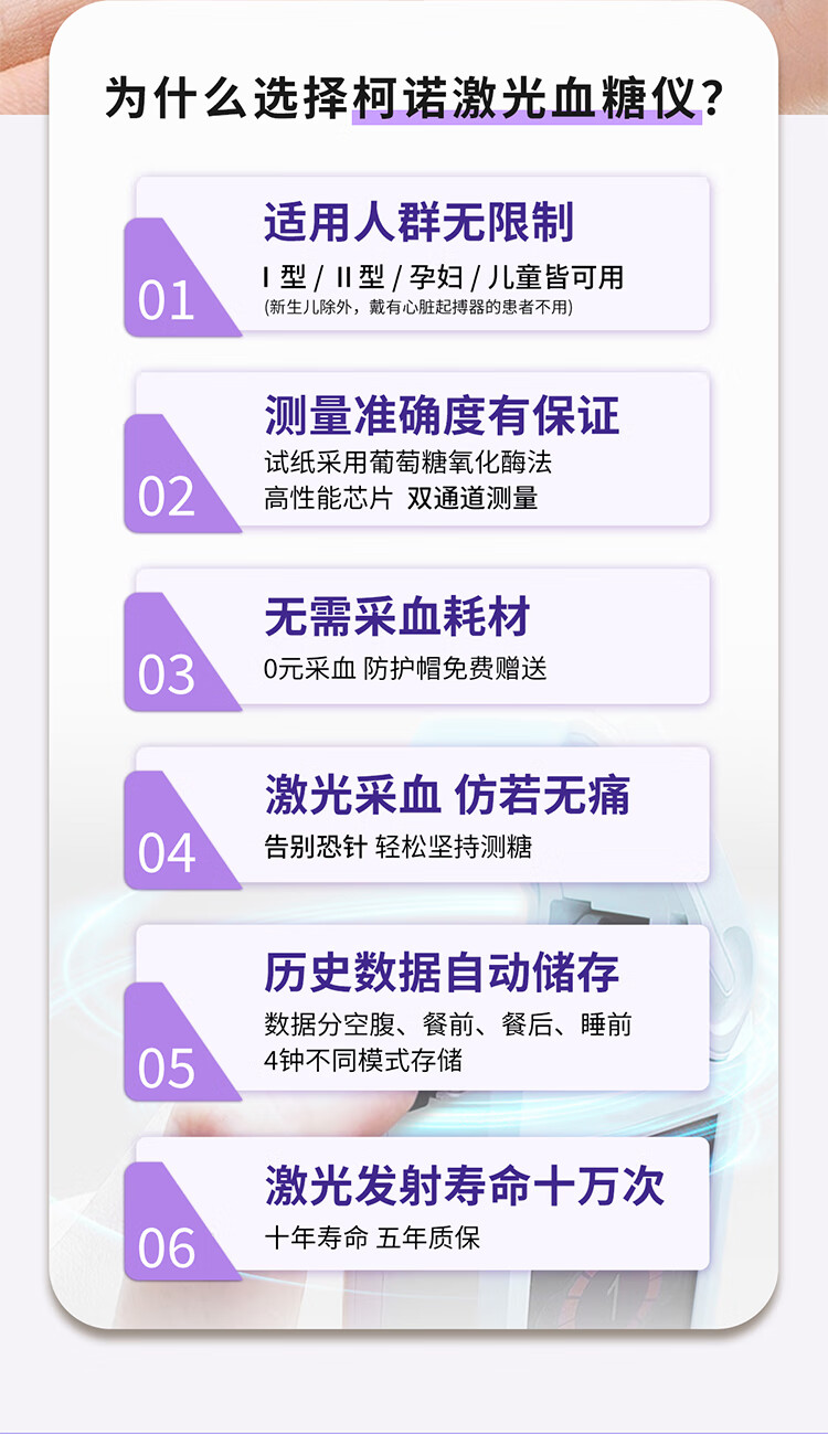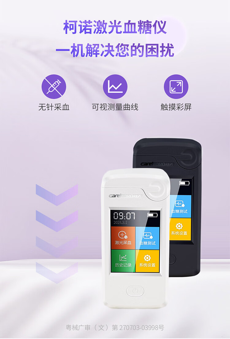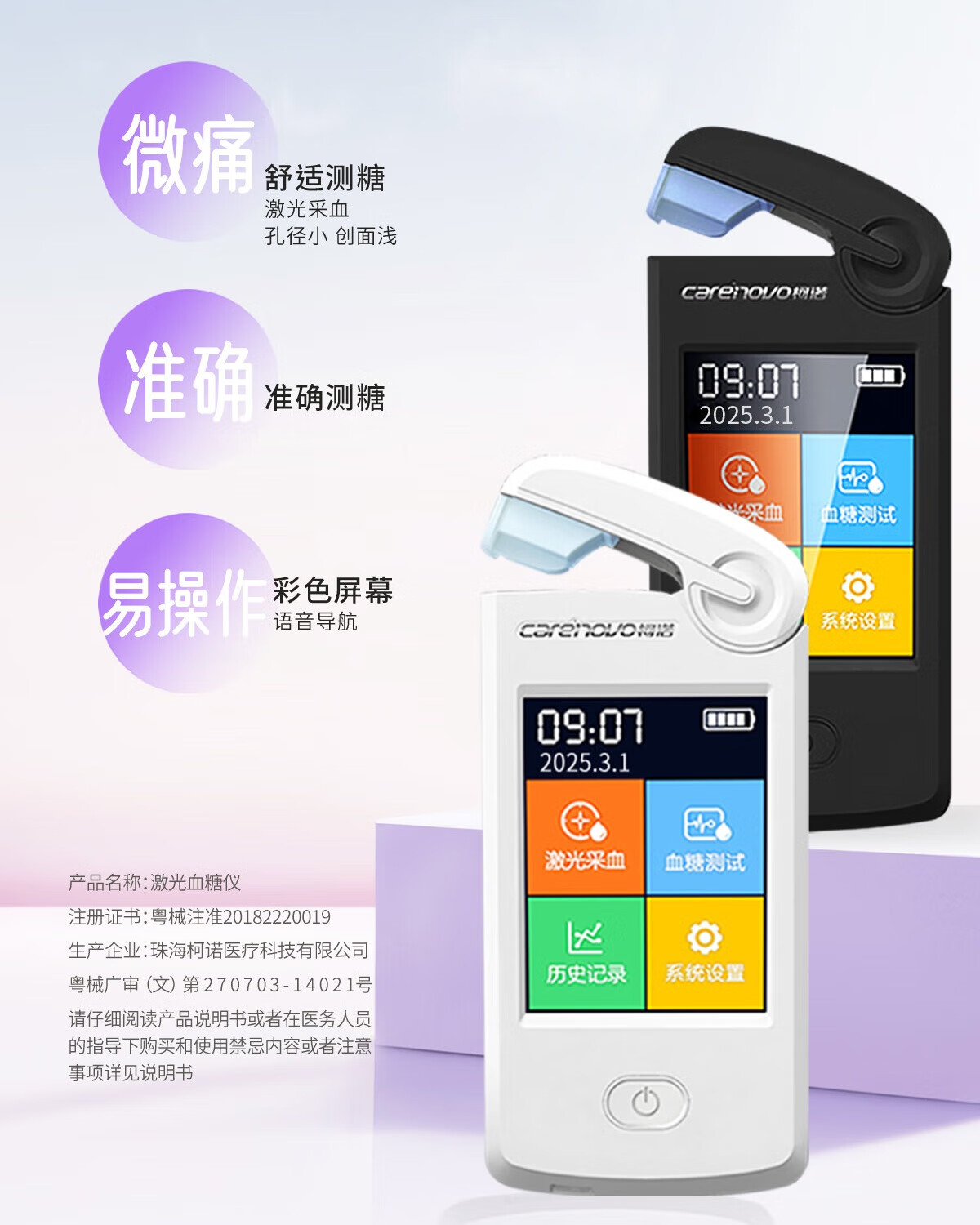 柯诺激光血糖仪家用医用免扎针微创微痛精准智血糖仪测血糖一体机 2.白色激光血糖仪配100试纸+防护帽