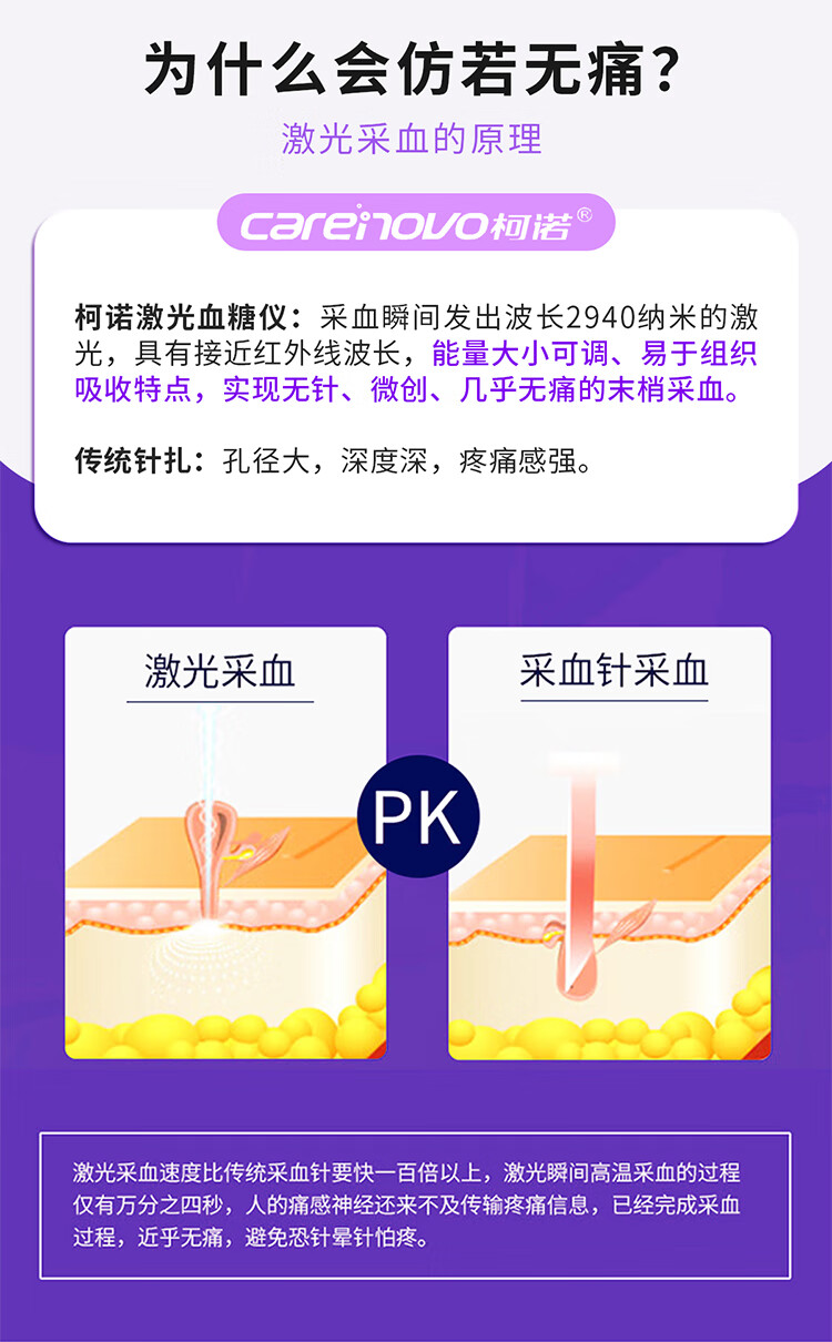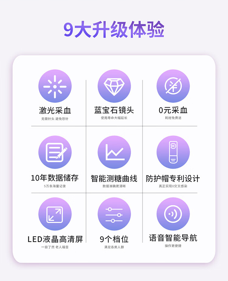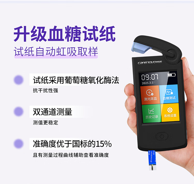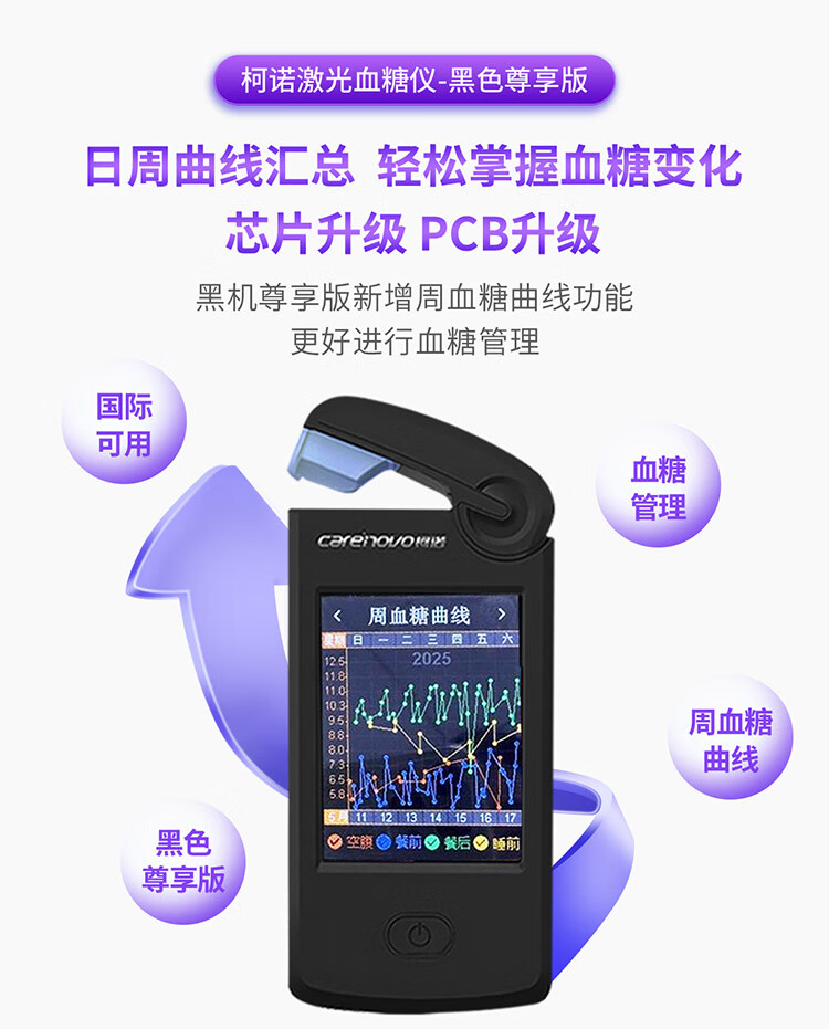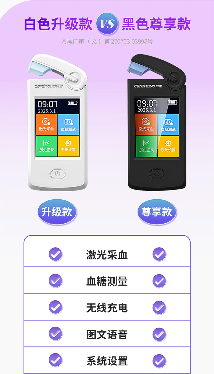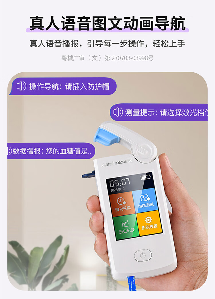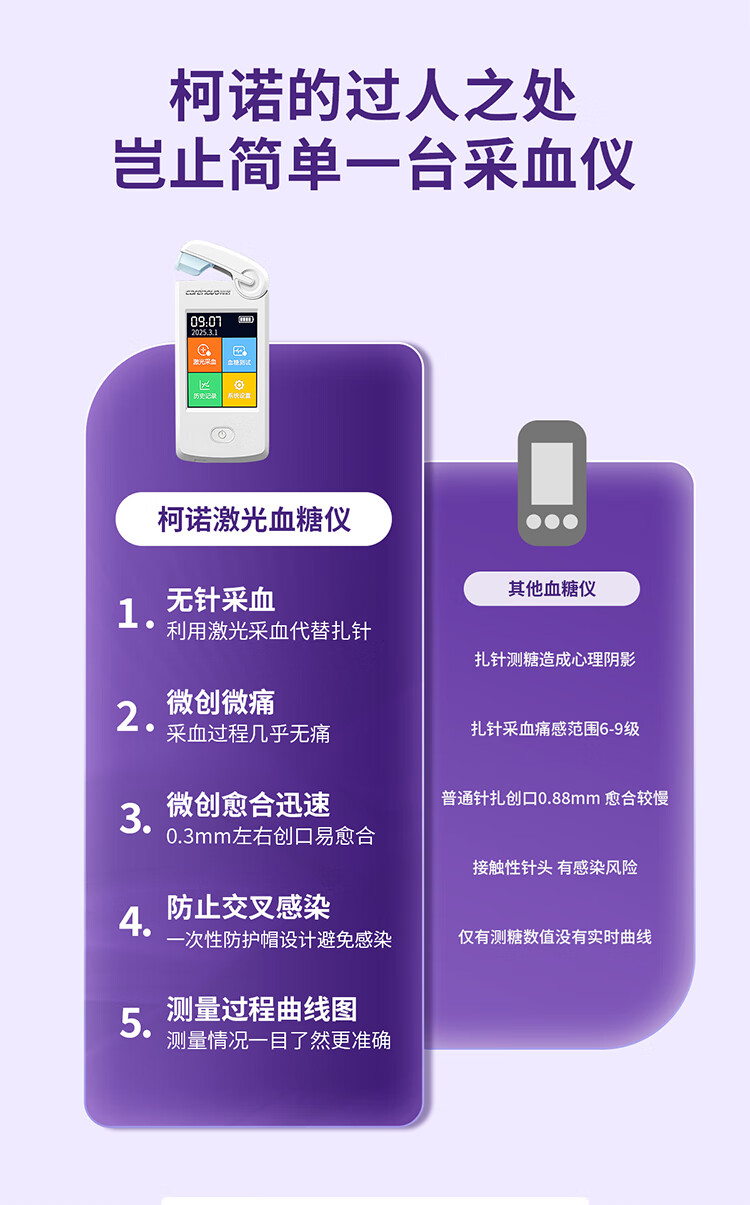 柯诺激光血糖仪家用医用免扎针微创微痛精准智血糖仪测血糖一体机 2.白色激光血糖仪配100试纸+防护帽
