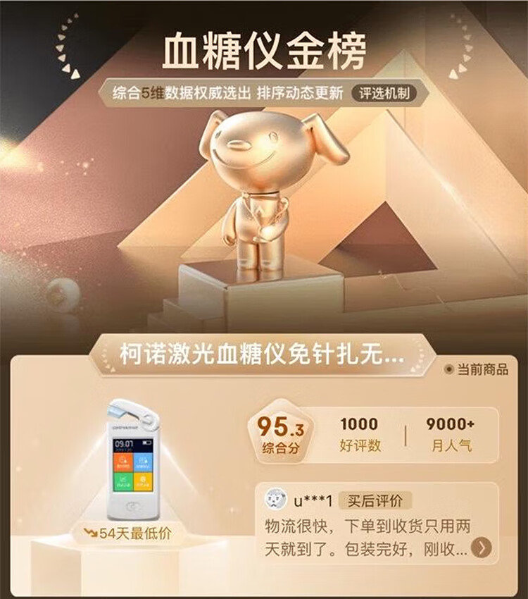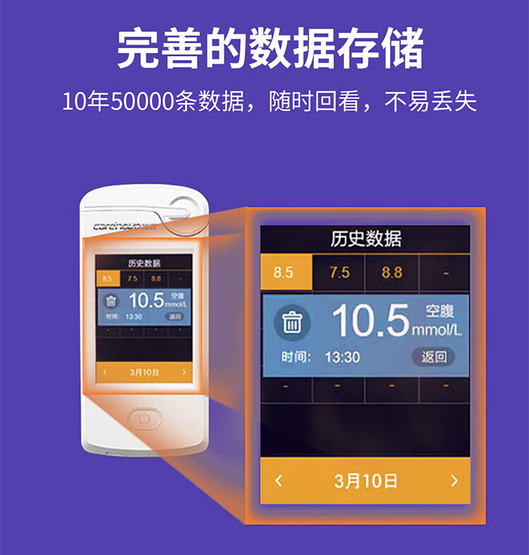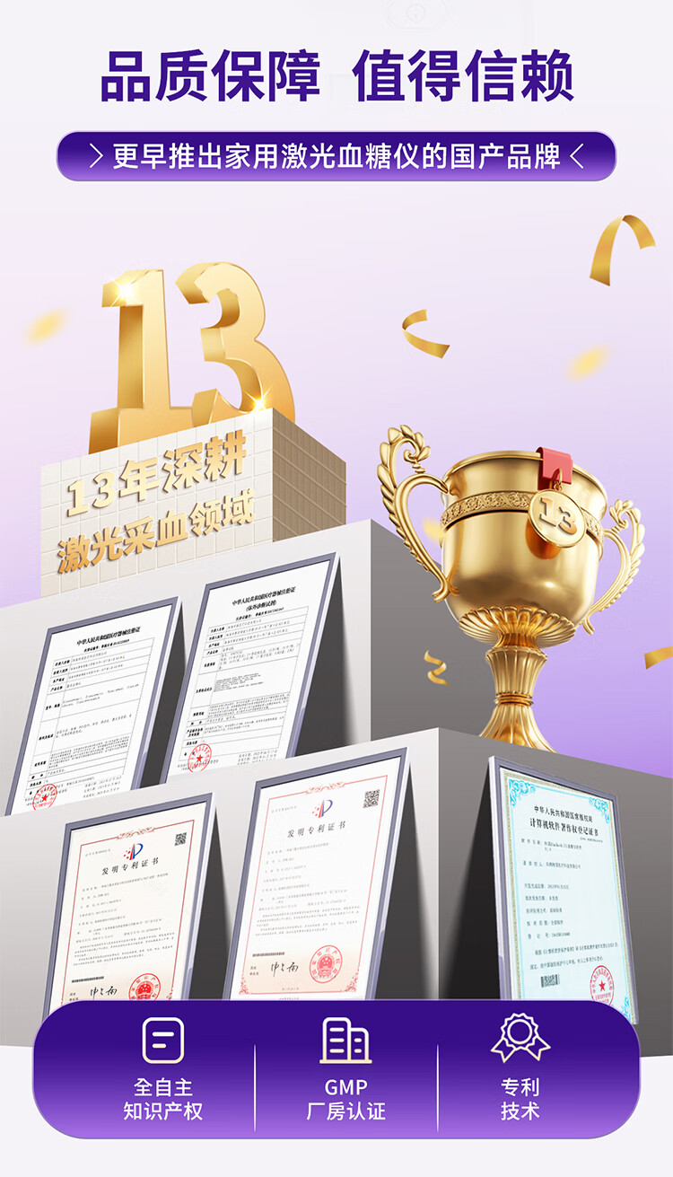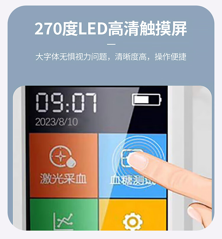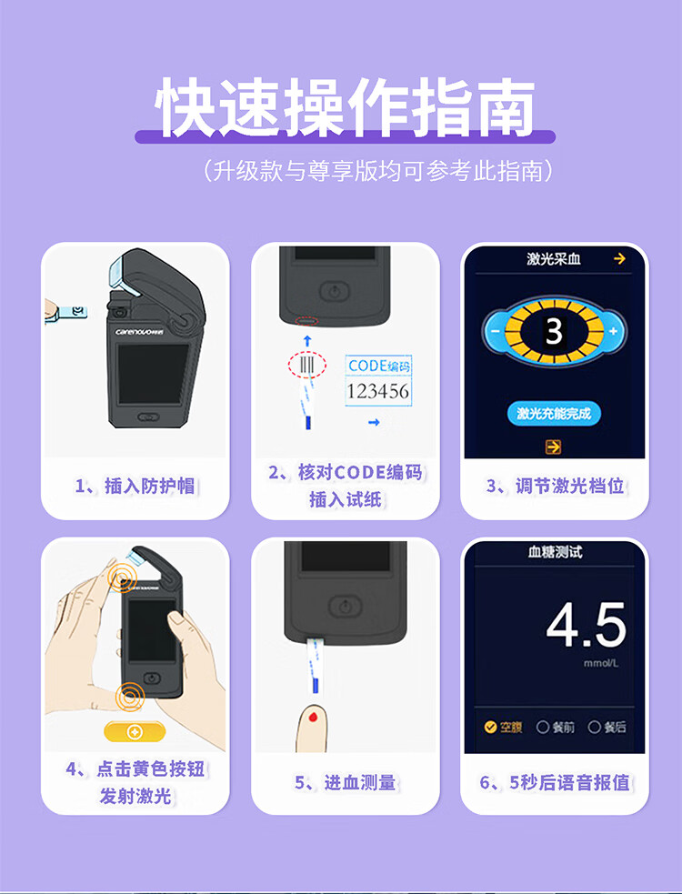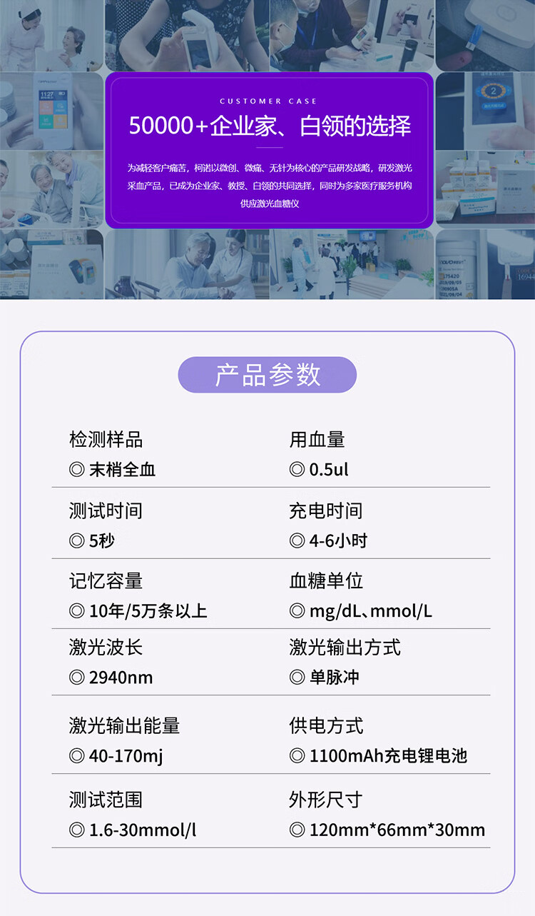 柯诺激光血糖仪家用医用免扎针微创微痛精准智血糖仪测血糖一体机 2.白色激光血糖仪配100试纸+防护帽