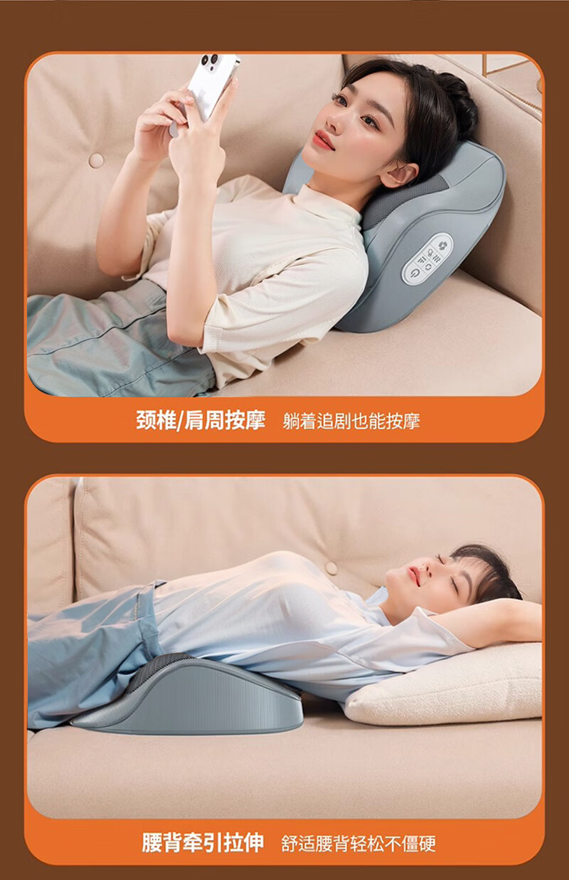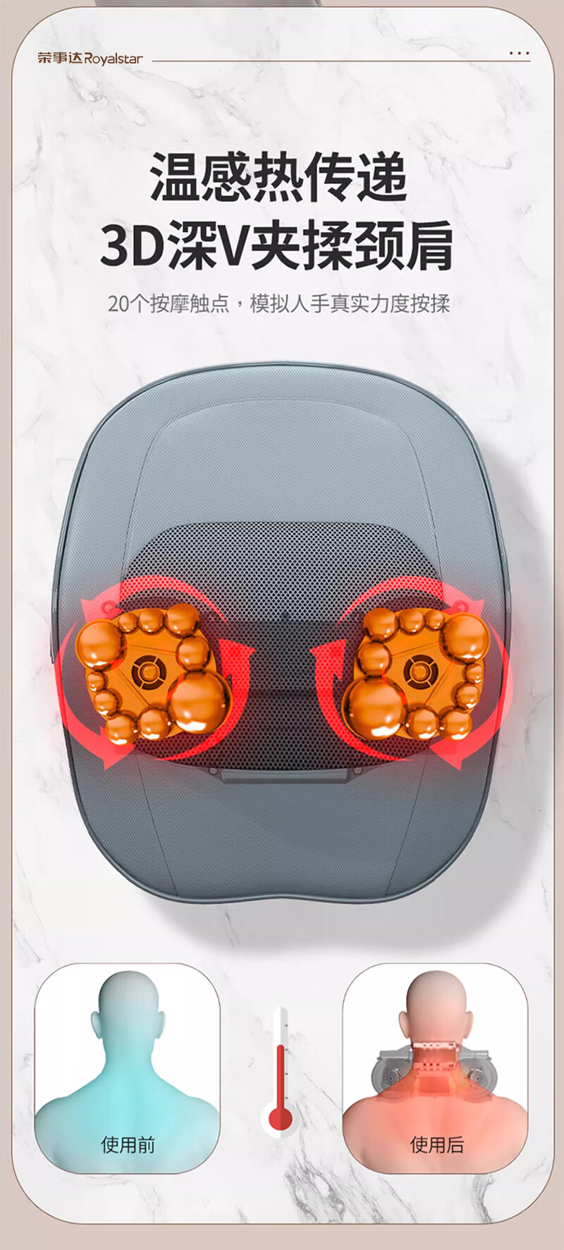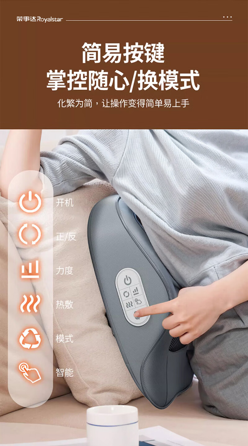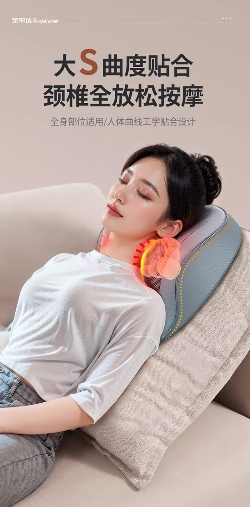 荣事达颈椎按摩器按摩枕背部腰部按摩仪全身多功能靠垫家用肩颈脖子揉捏生日礼物实用送爸爸长辈礼盒装 【升级充电按键款】送妈妈父母