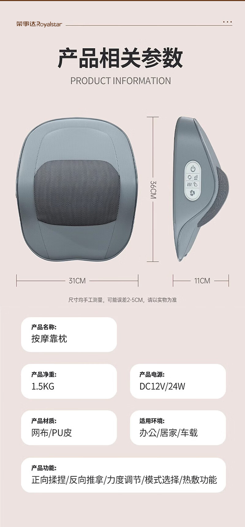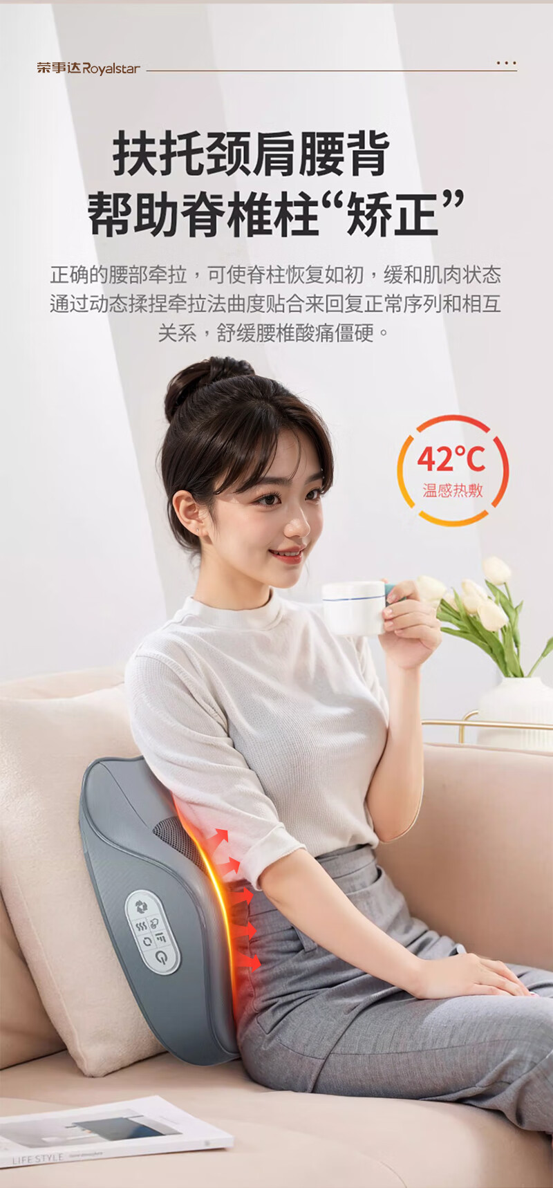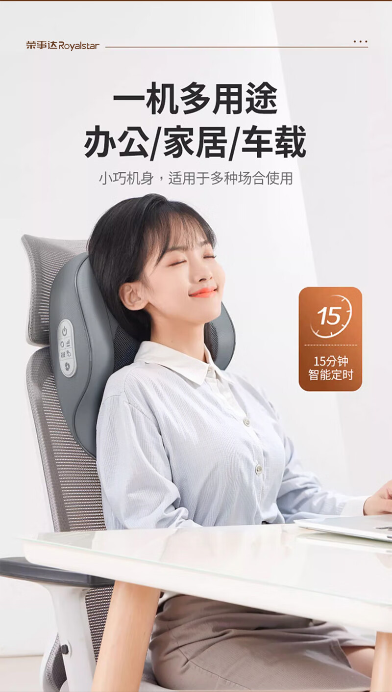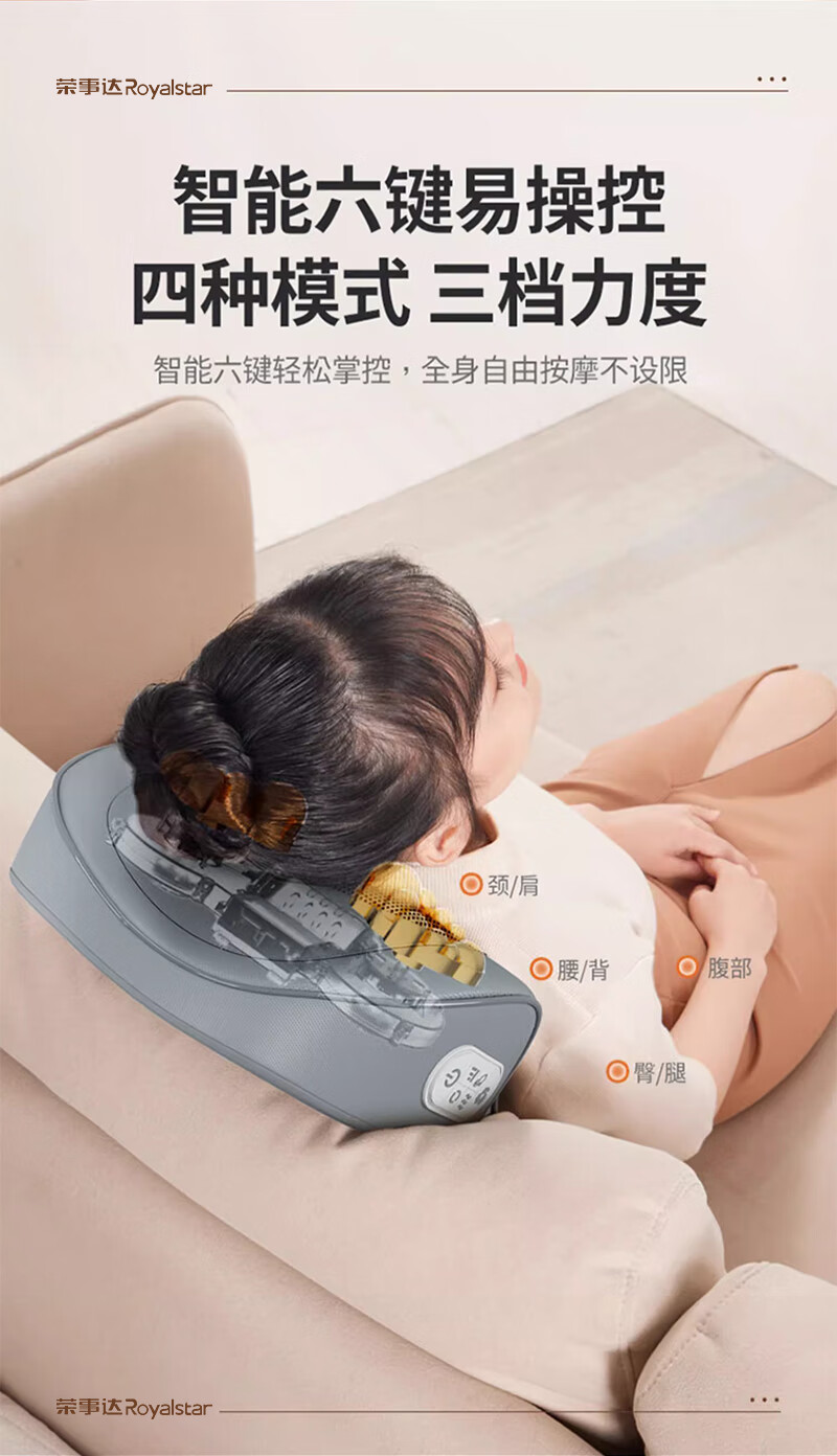 荣事达颈椎按摩器按摩枕背部腰部按摩仪全身多功能靠垫家用肩颈脖子揉捏生日礼物实用送爸爸长辈礼盒装 【升级充电按键款】送妈妈父母