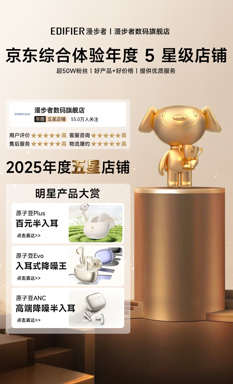 漫步者(EDIFIER)AtomEvo入耳式原子豆Evo深度降噪 适配华为小米苹果 真无线蓝牙耳机2026新款 云白