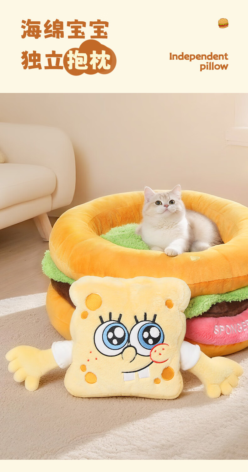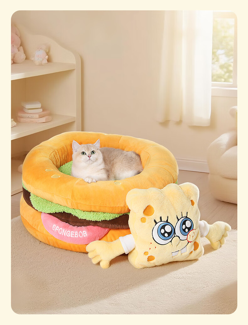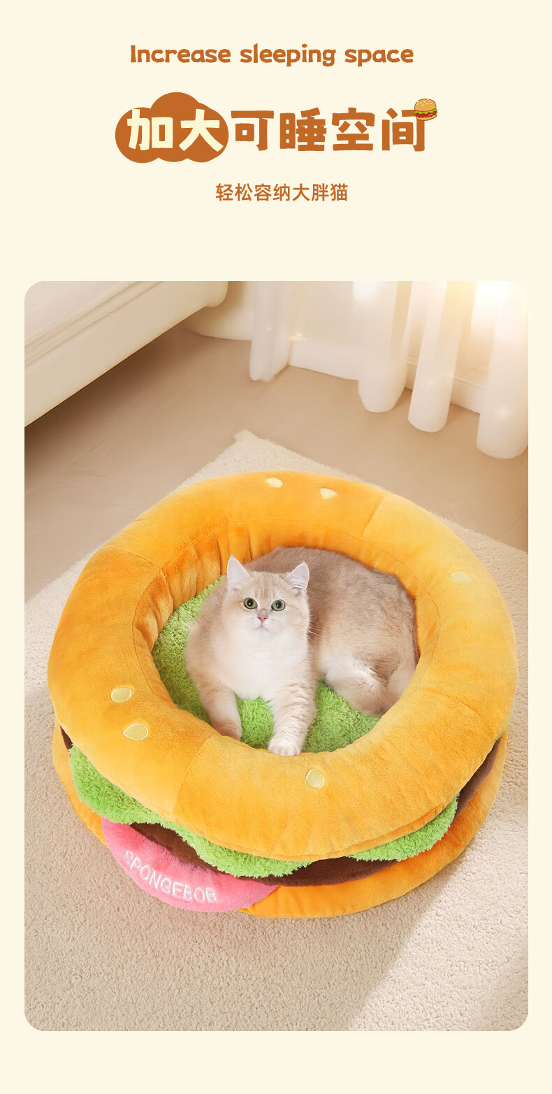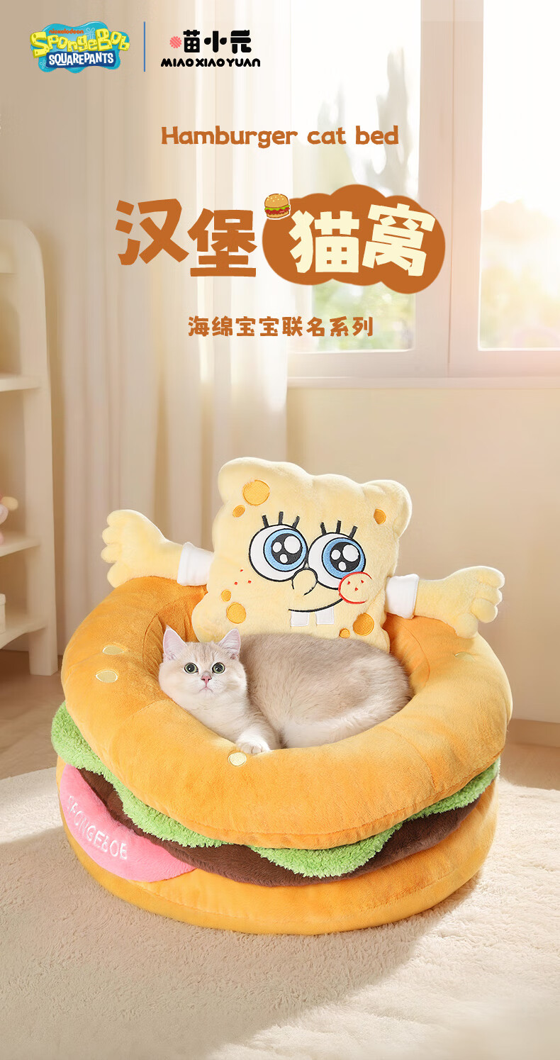 喵小元海绵宝宝华元hoopet汉堡猫窝四季通用猫咪睡窝垫子可拆洗安全感