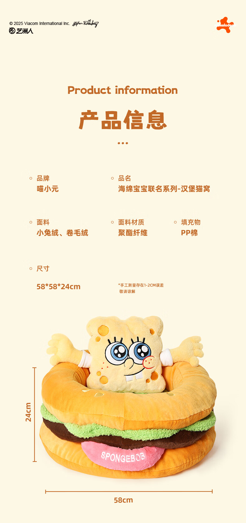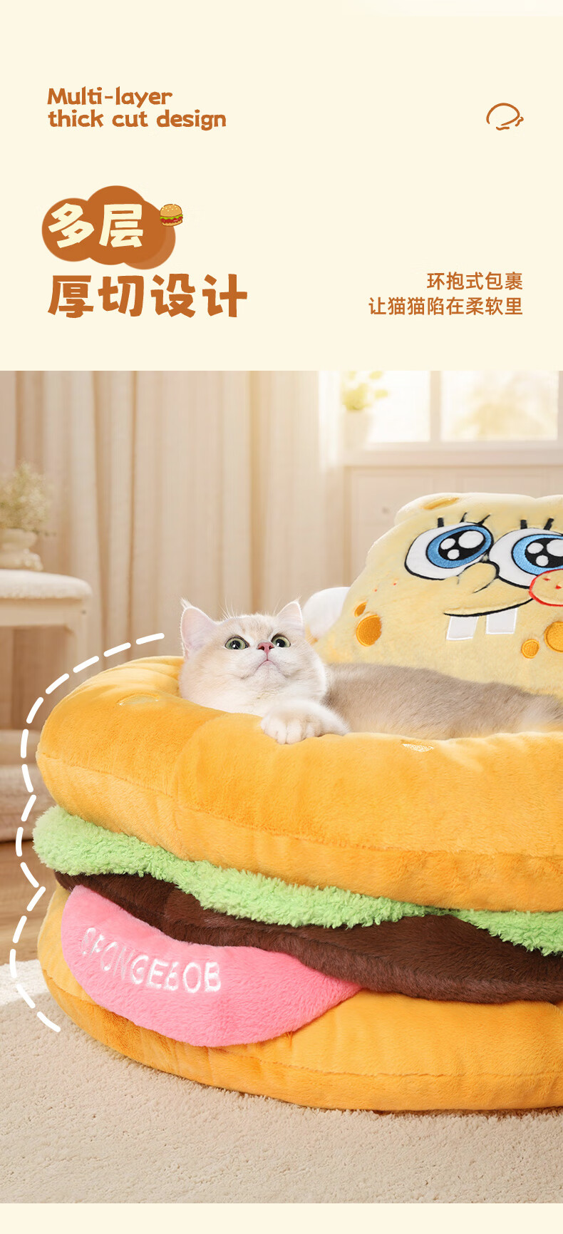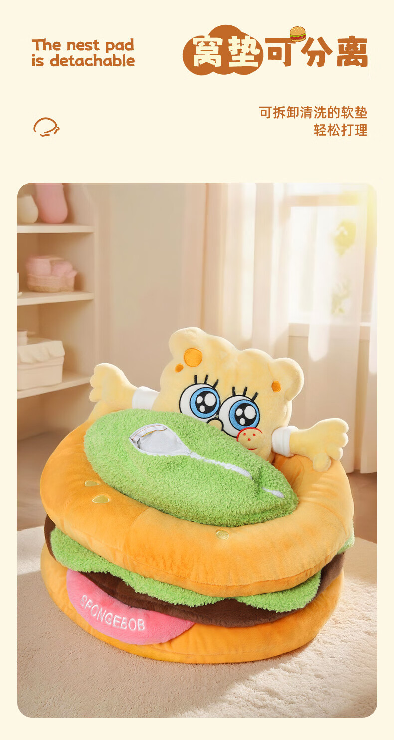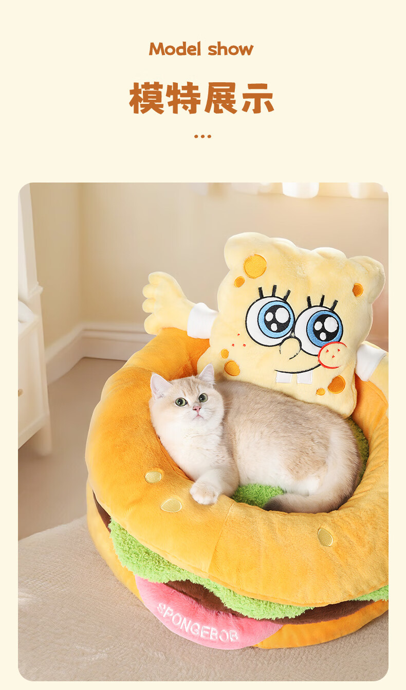 喵小元海绵宝宝华元hoopet汉堡猫窝四季通用猫咪睡窝垫子可拆洗安全感
