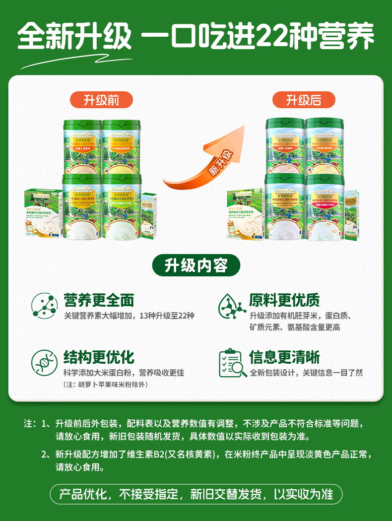 爷爷的农场有机婴幼儿强化铁米粉 宝宝辅食6个月+婴幼钙铁锌米粉米糊无添加 大米粉+胡萝卜+小米南瓜 225g*3罐