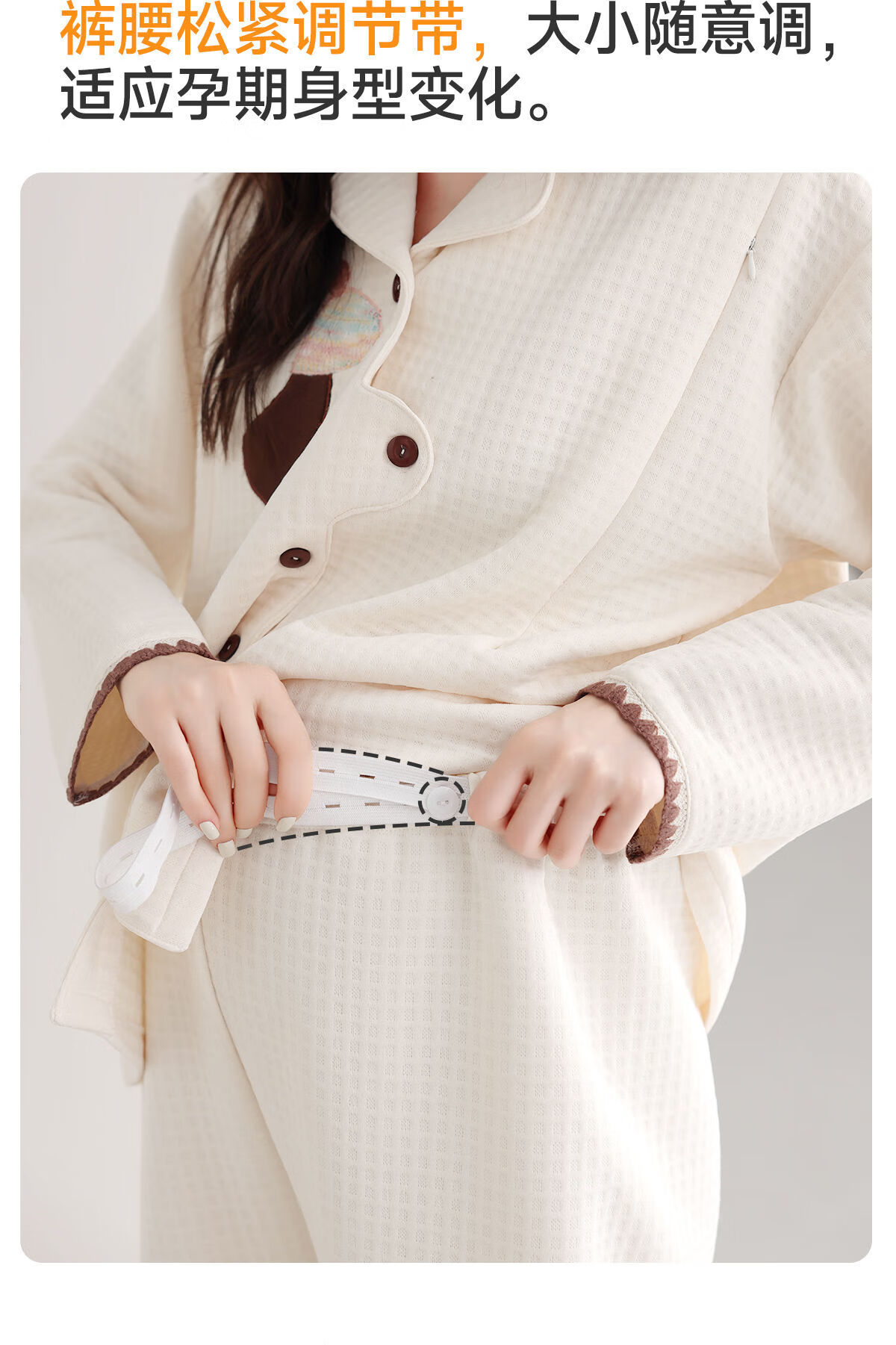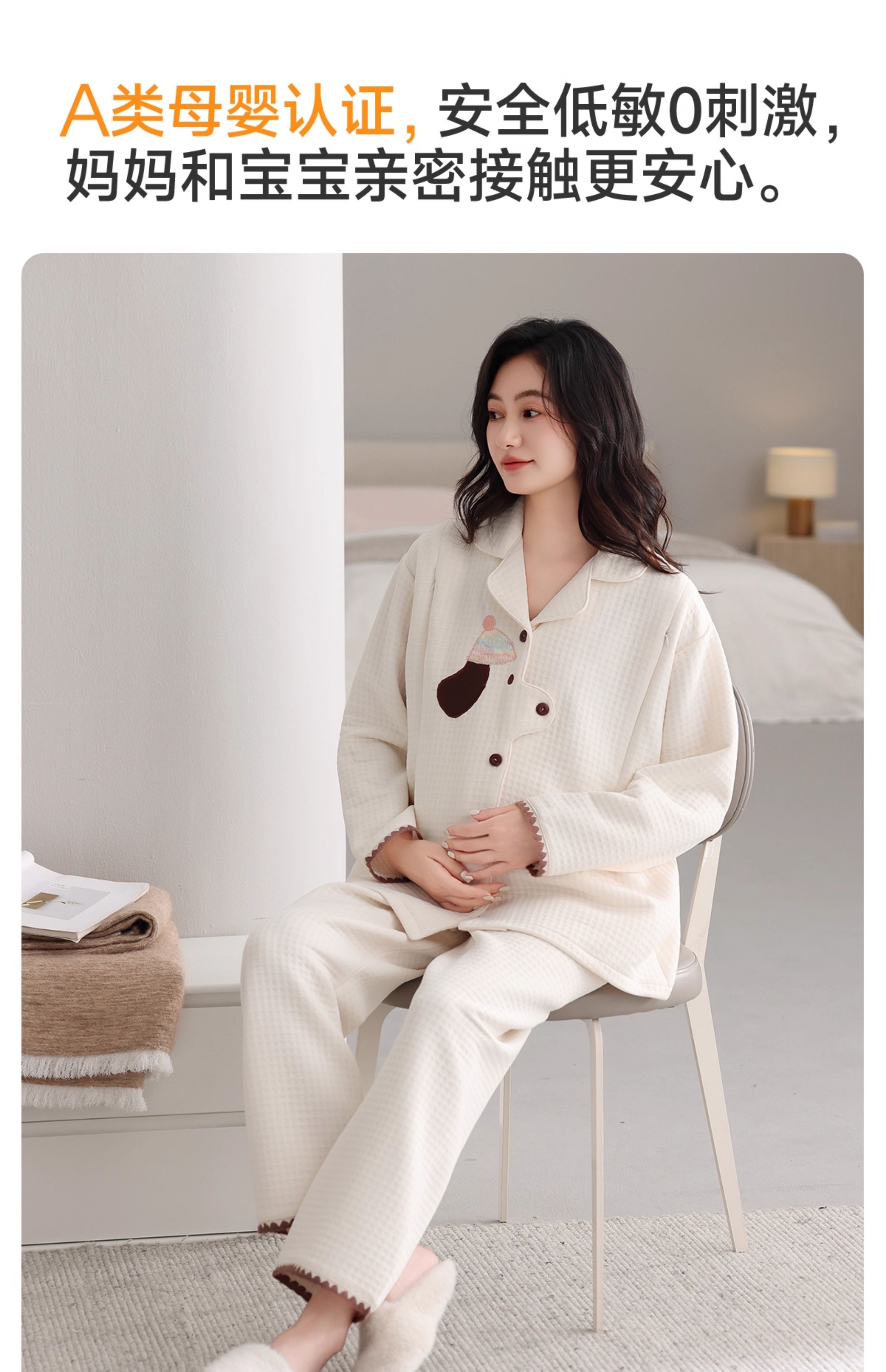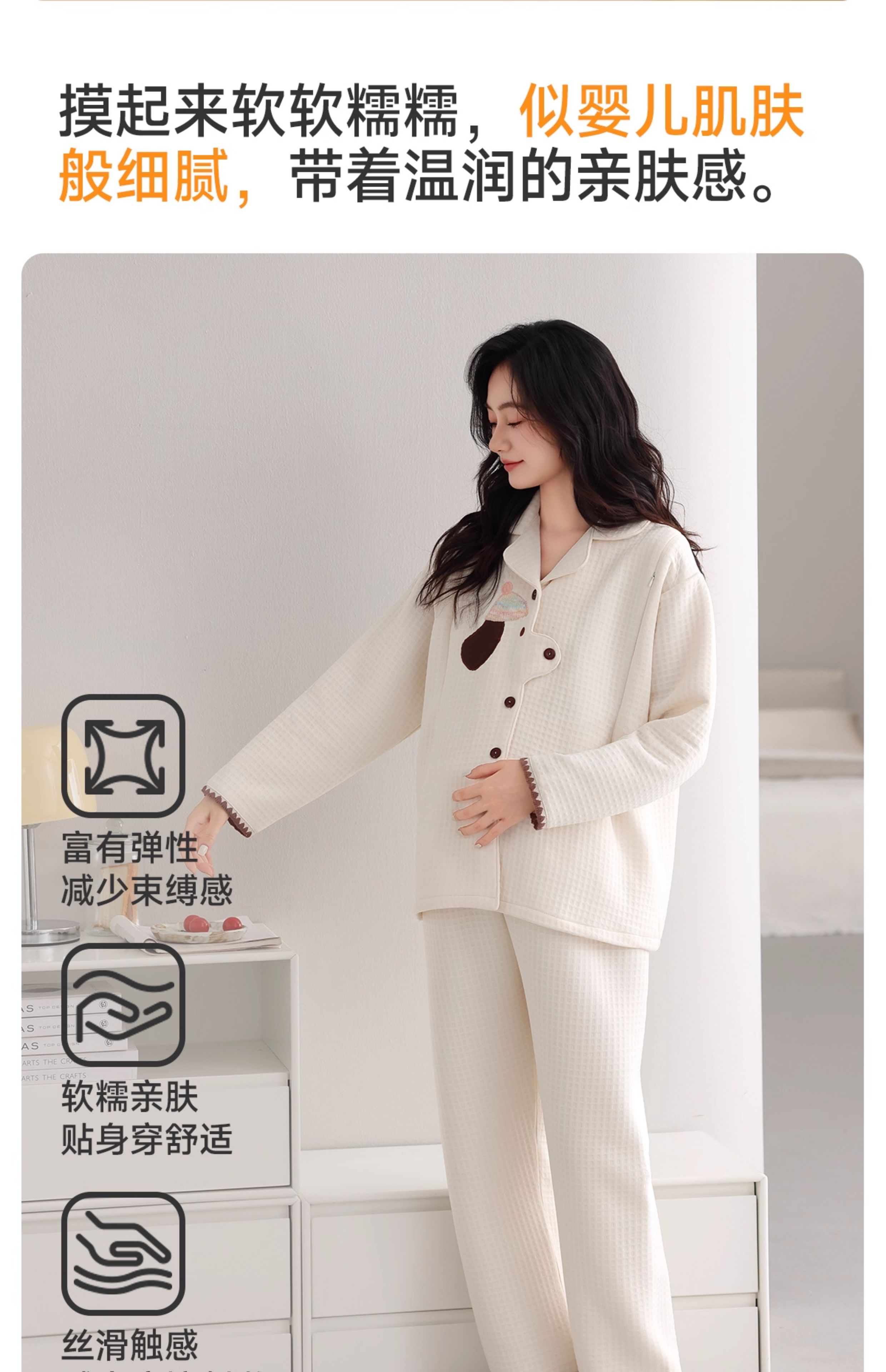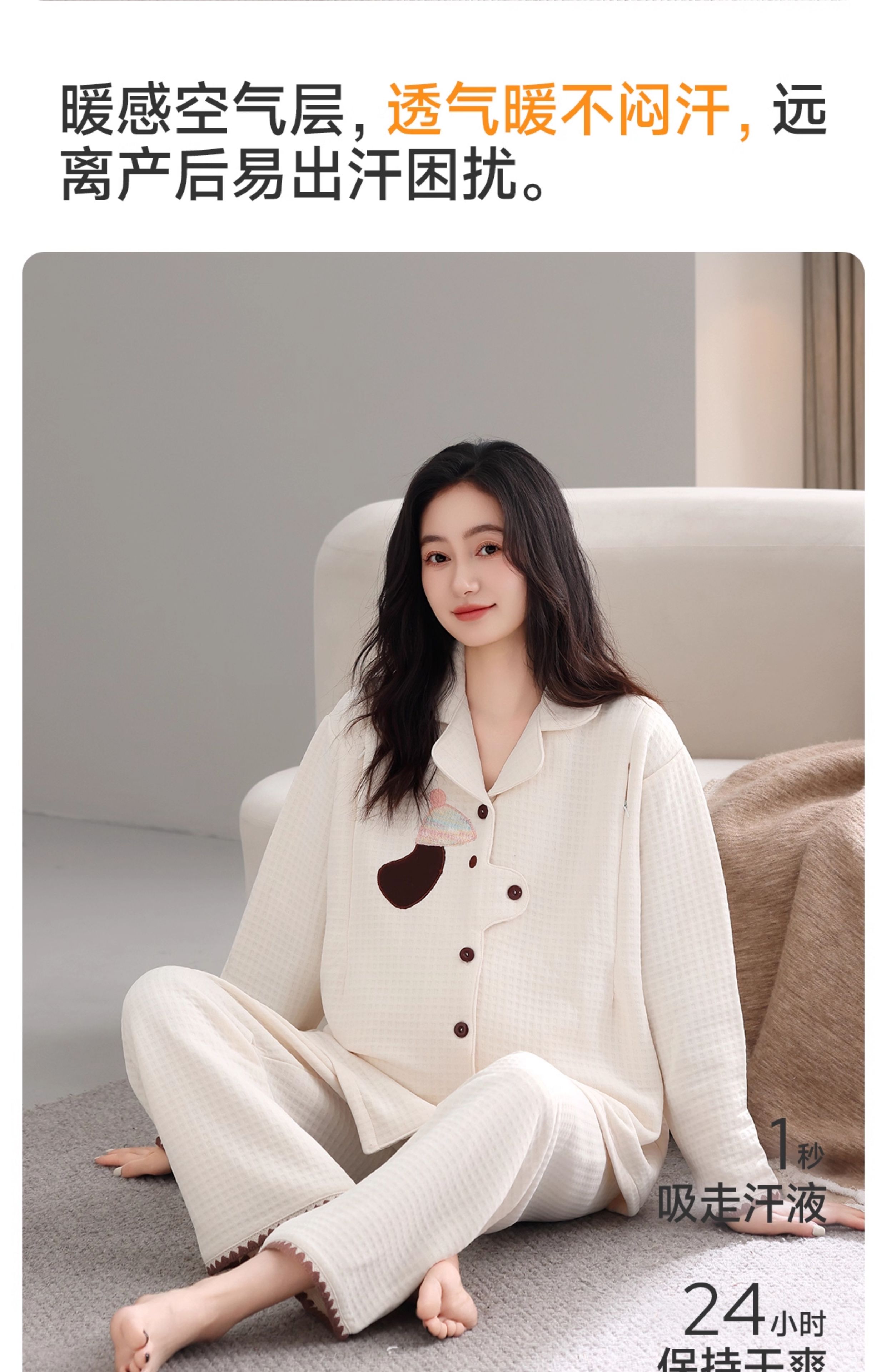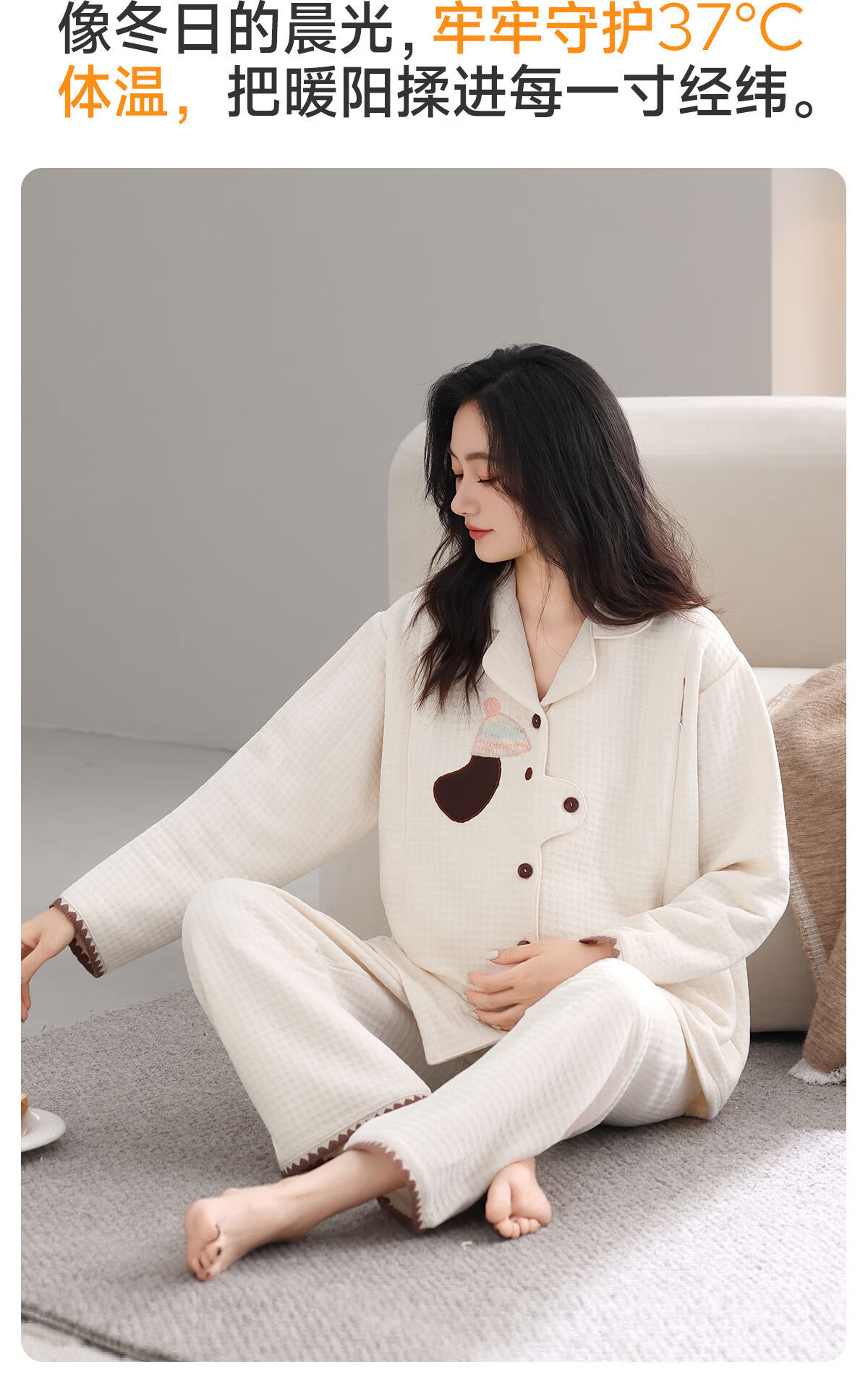 婧麒(JOYNCLEON)月子服空气层加厚孕妇睡衣保暖月子服产妇哺乳家居服女 彩色帽 L