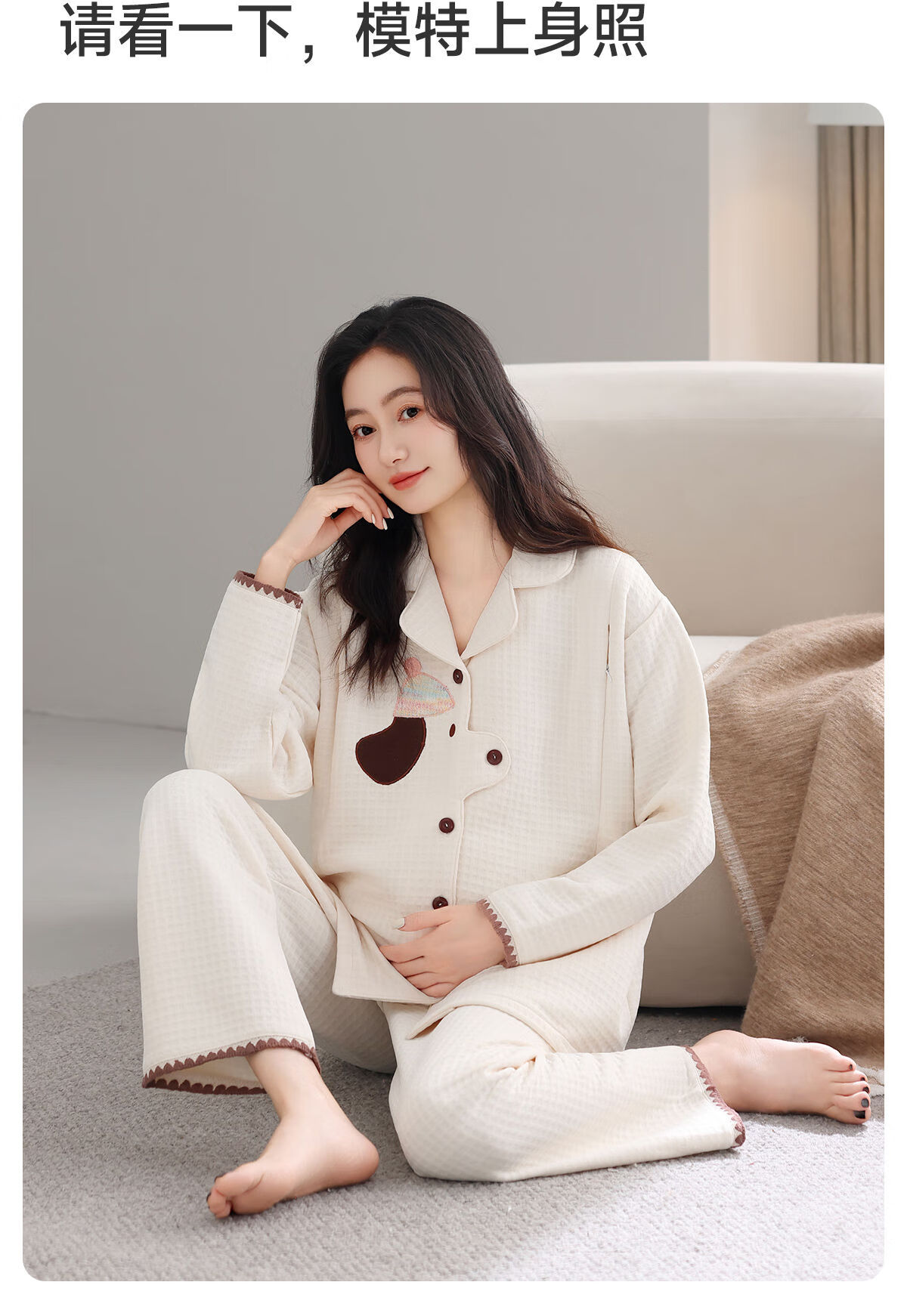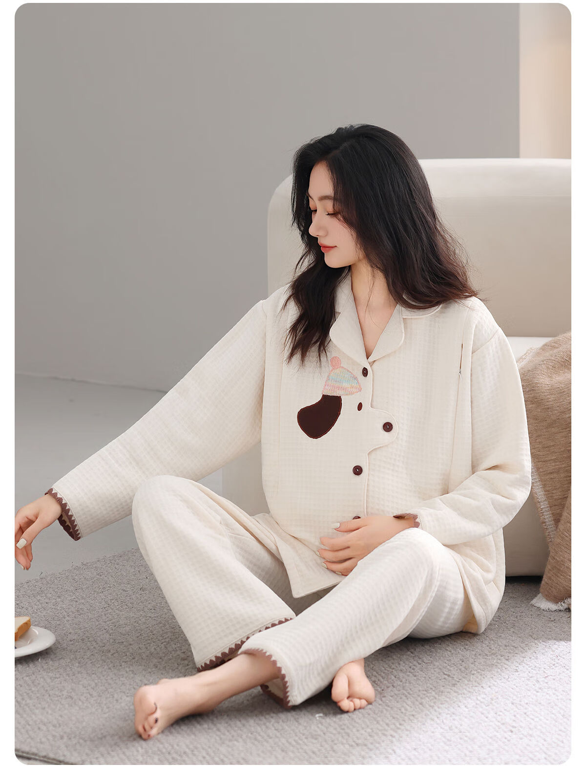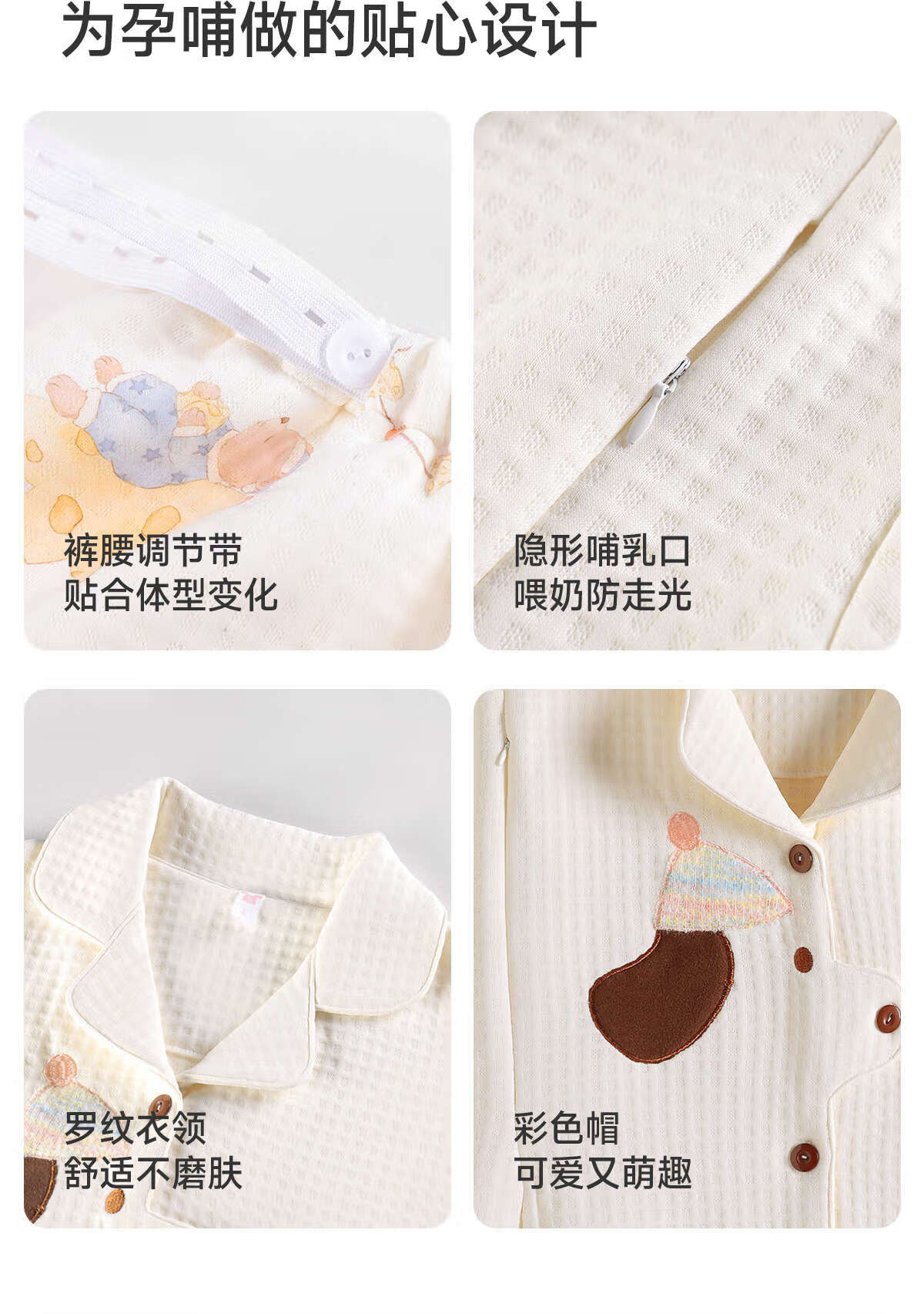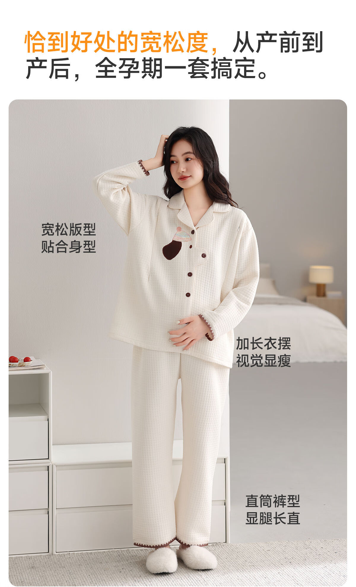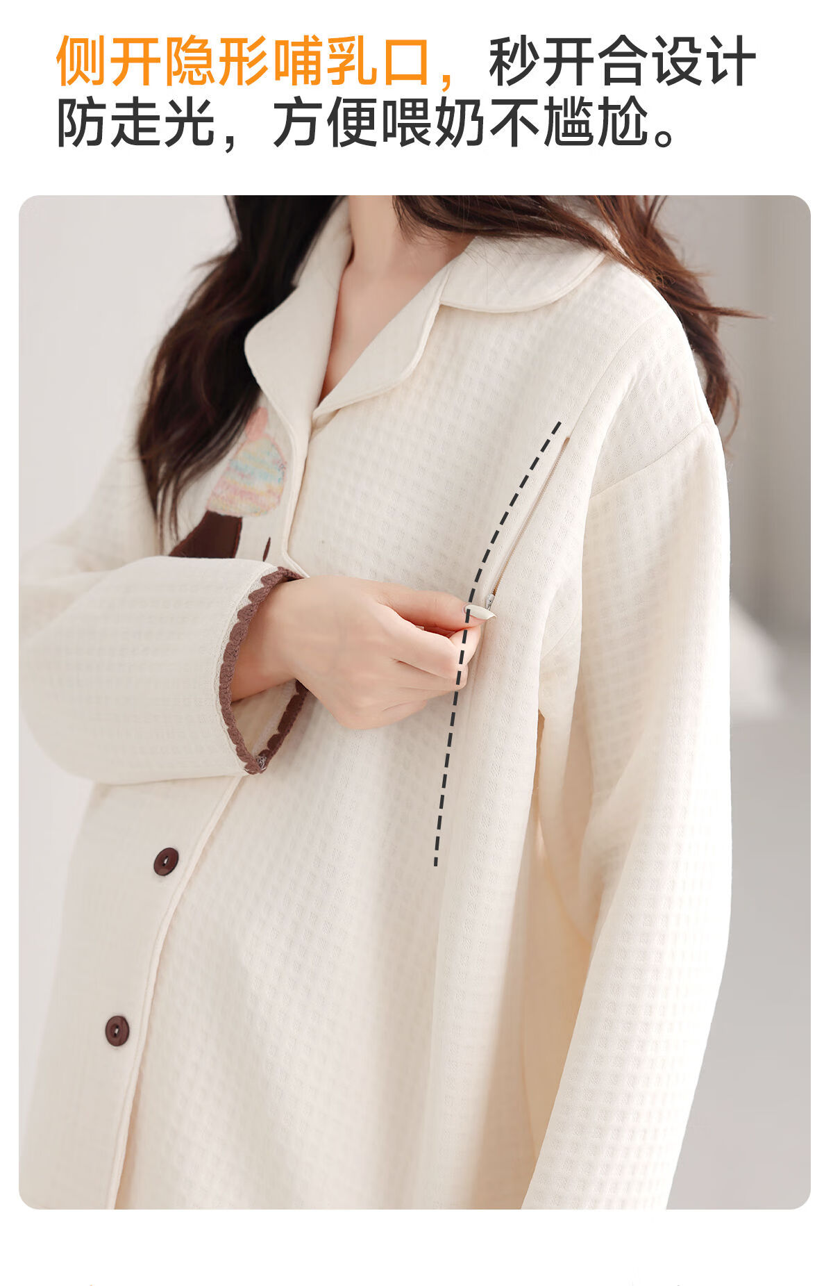 婧麒(JOYNCLEON)月子服空气层加厚孕妇睡衣保暖月子服产妇哺乳家居服女 彩色帽 L