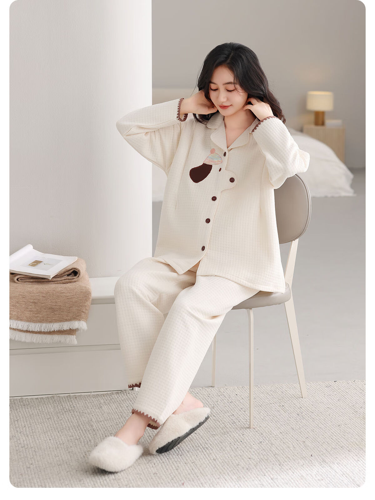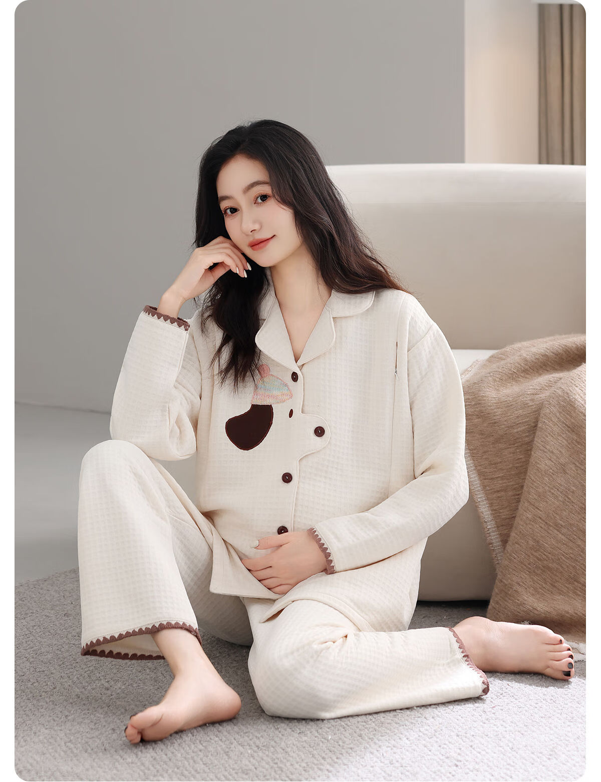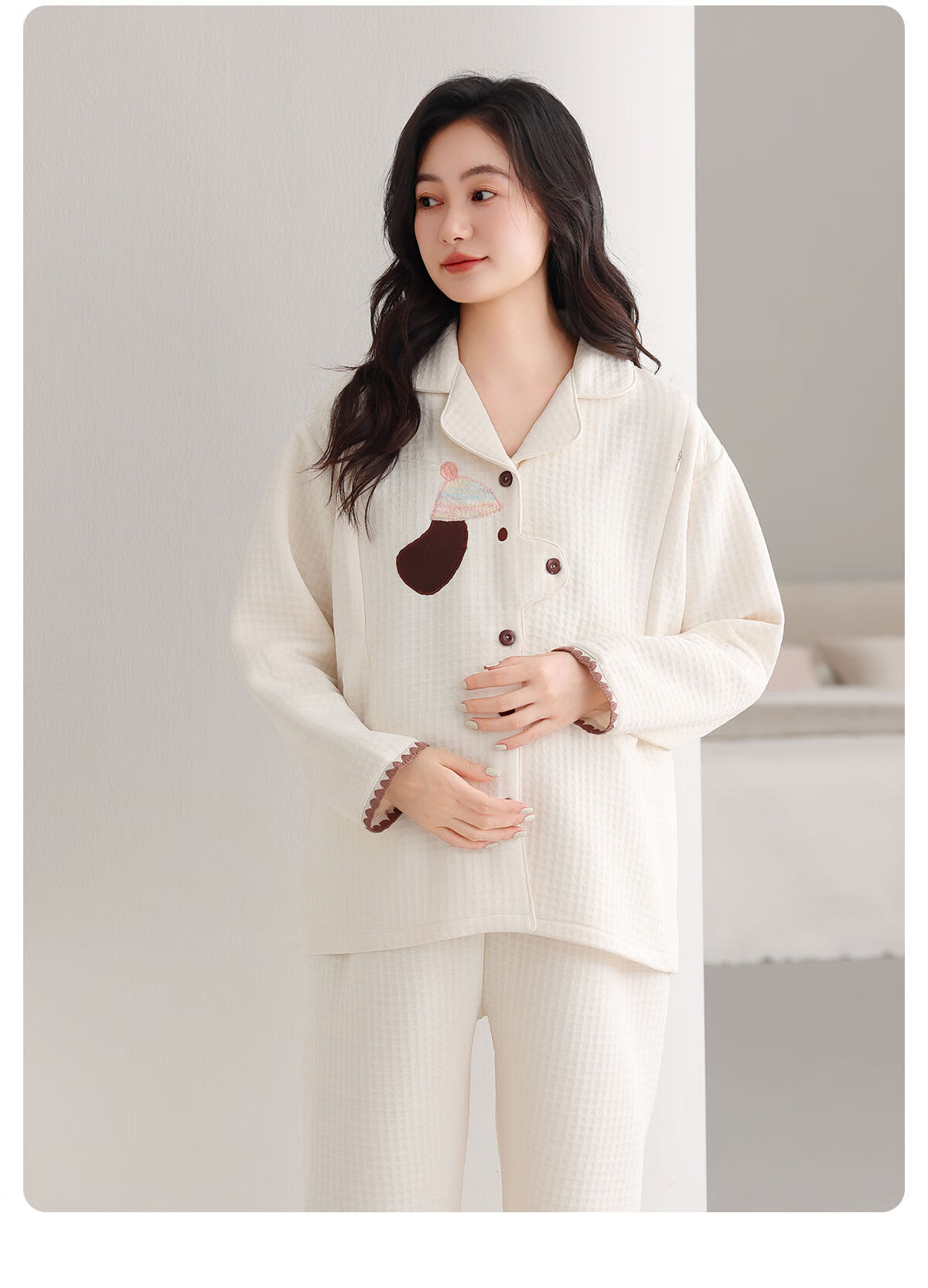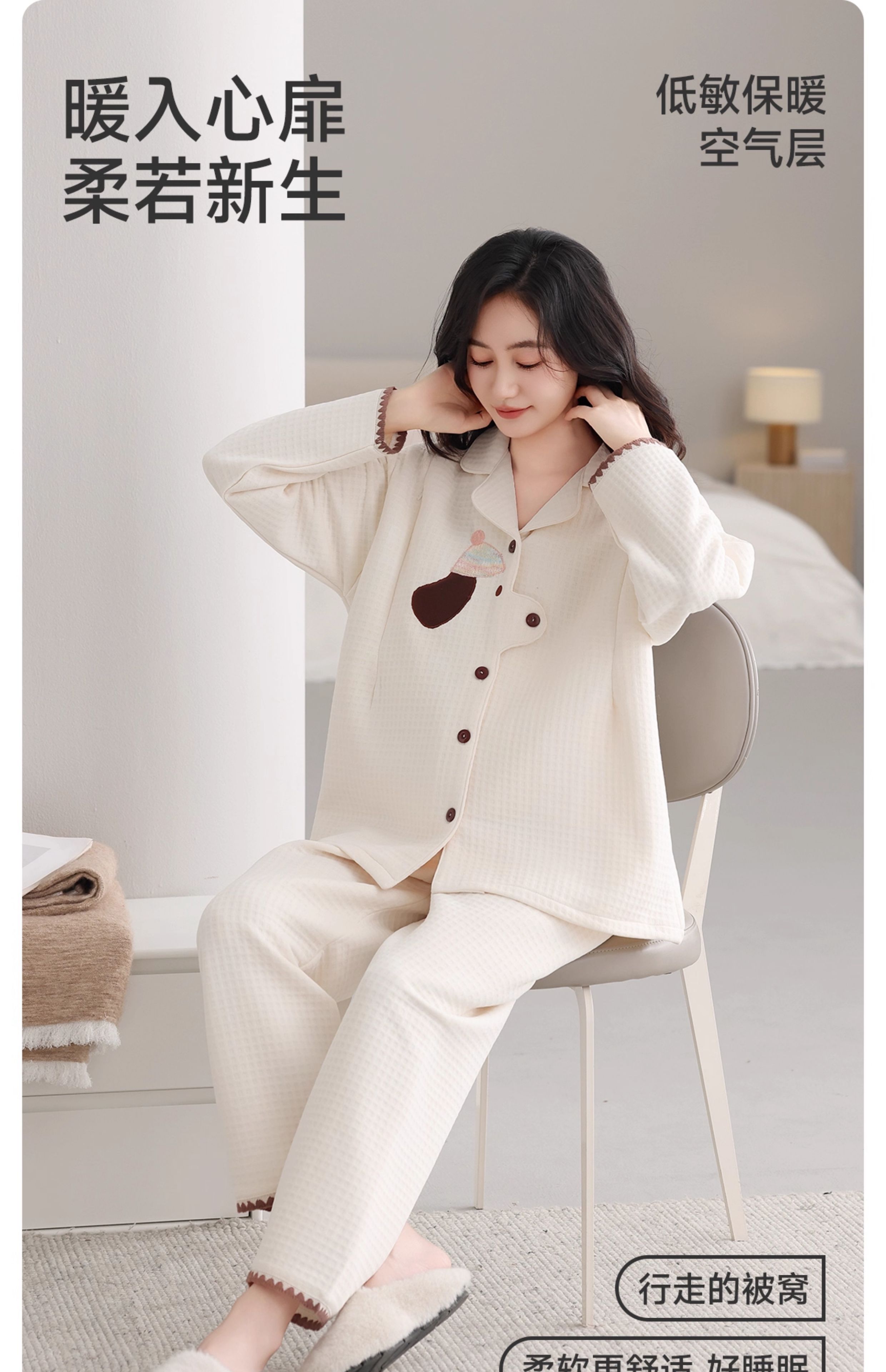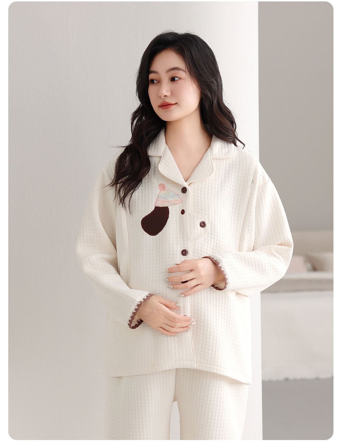 婧麒(JOYNCLEON)月子服空气层加厚孕妇睡衣保暖月子服产妇哺乳家居服女 彩色帽 L