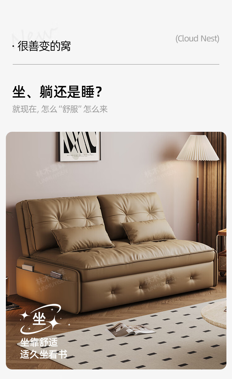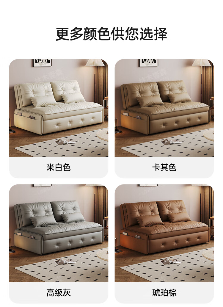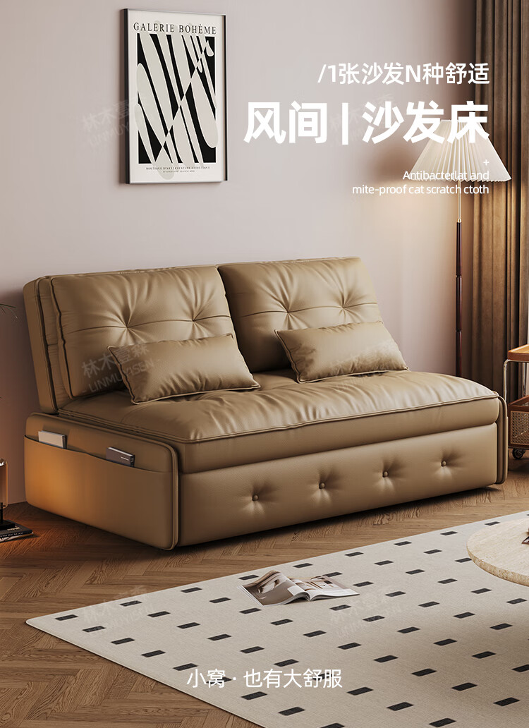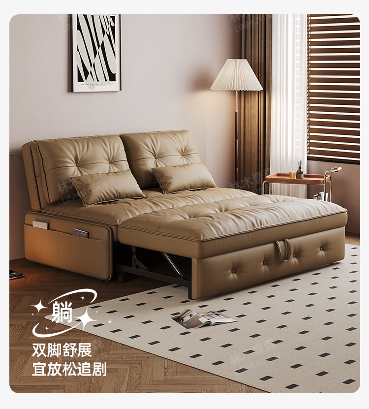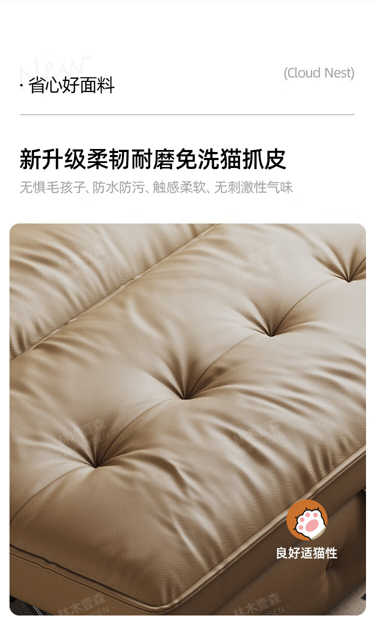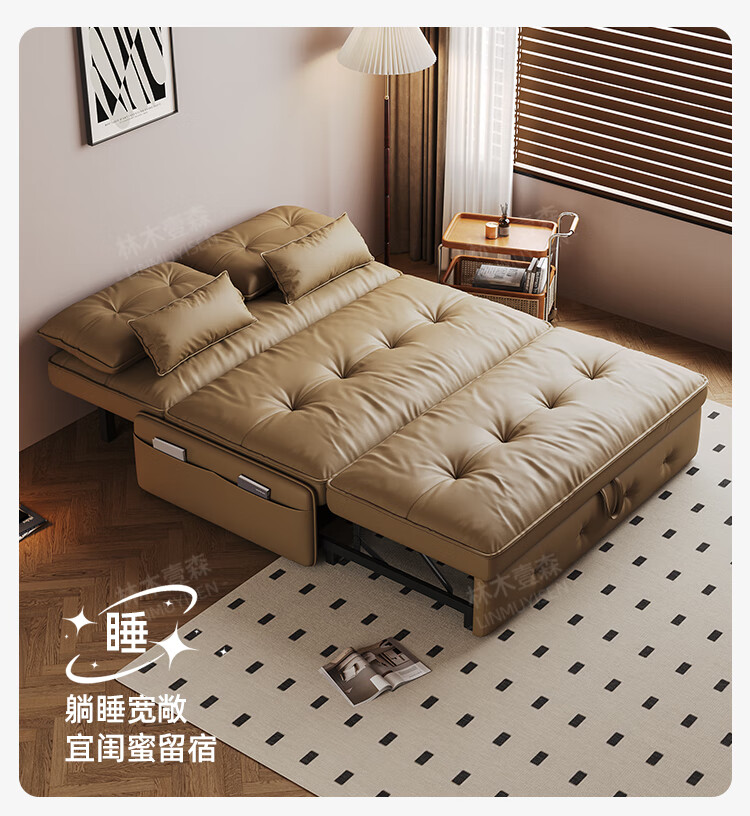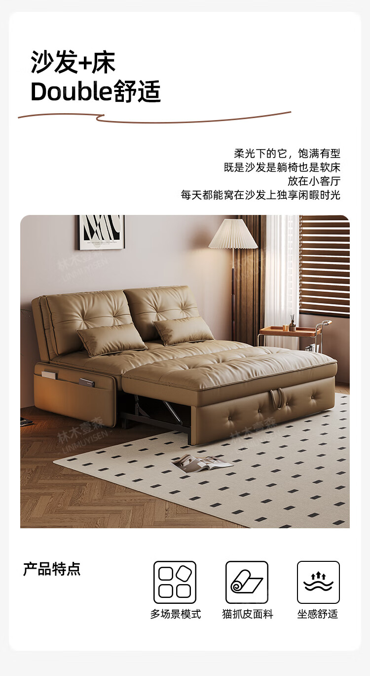 林木壹森沙发床一体两用小户型防猫抓科技皮沙发家用客厅卧室单双人梳化床 外径1.65米 手动款 海绵款+猫抓皮