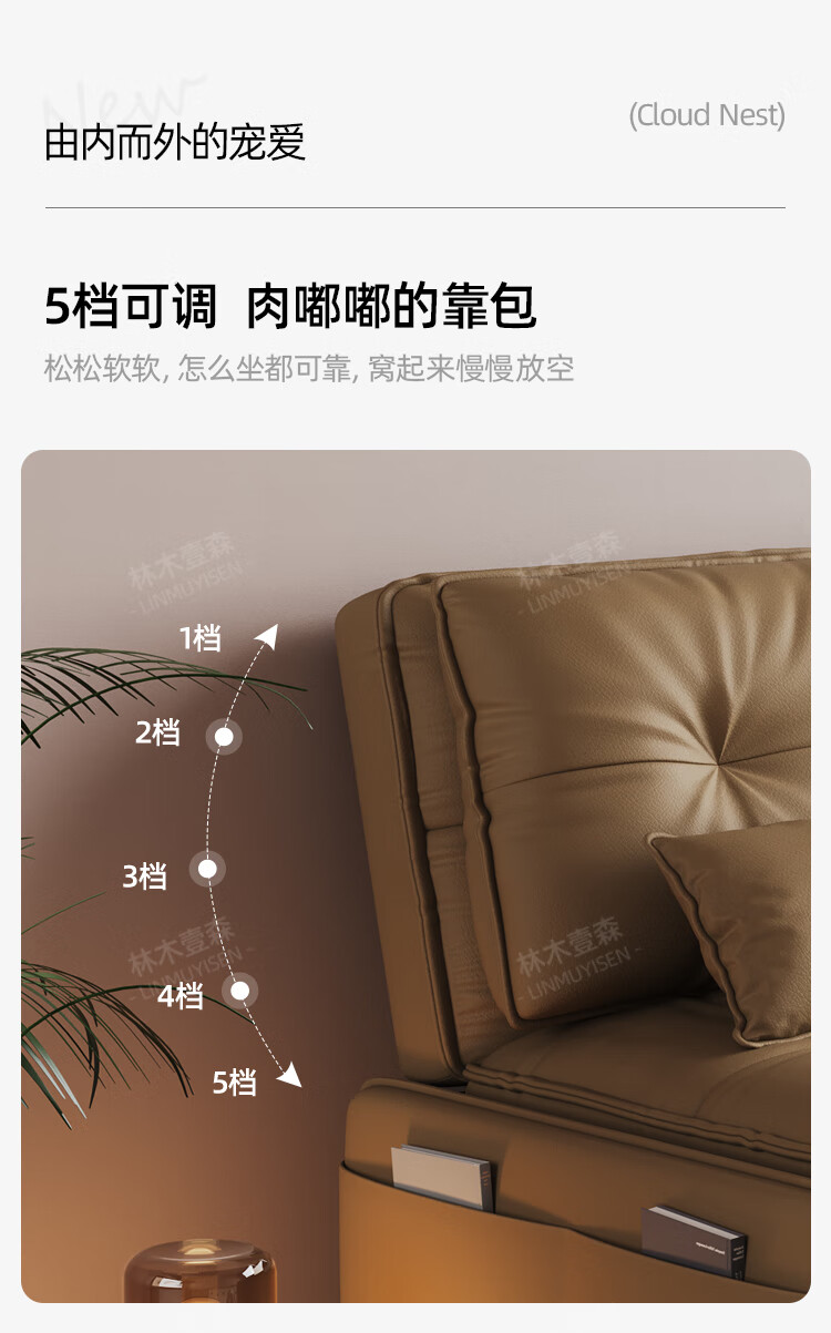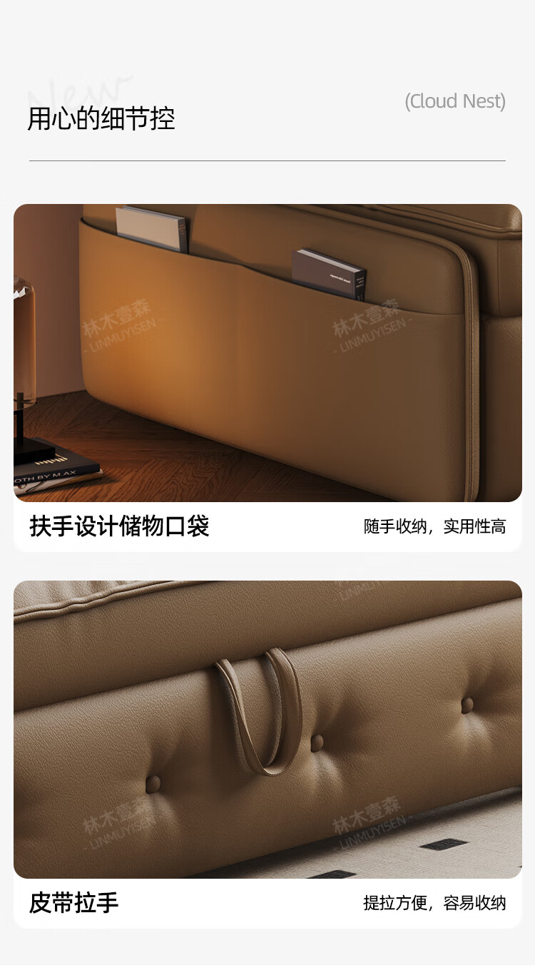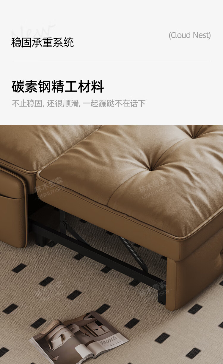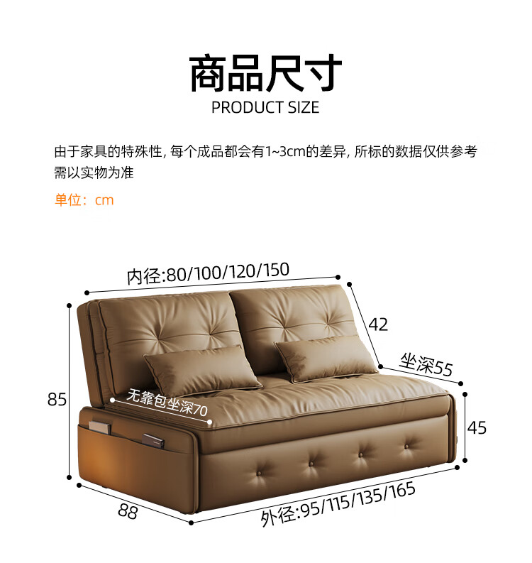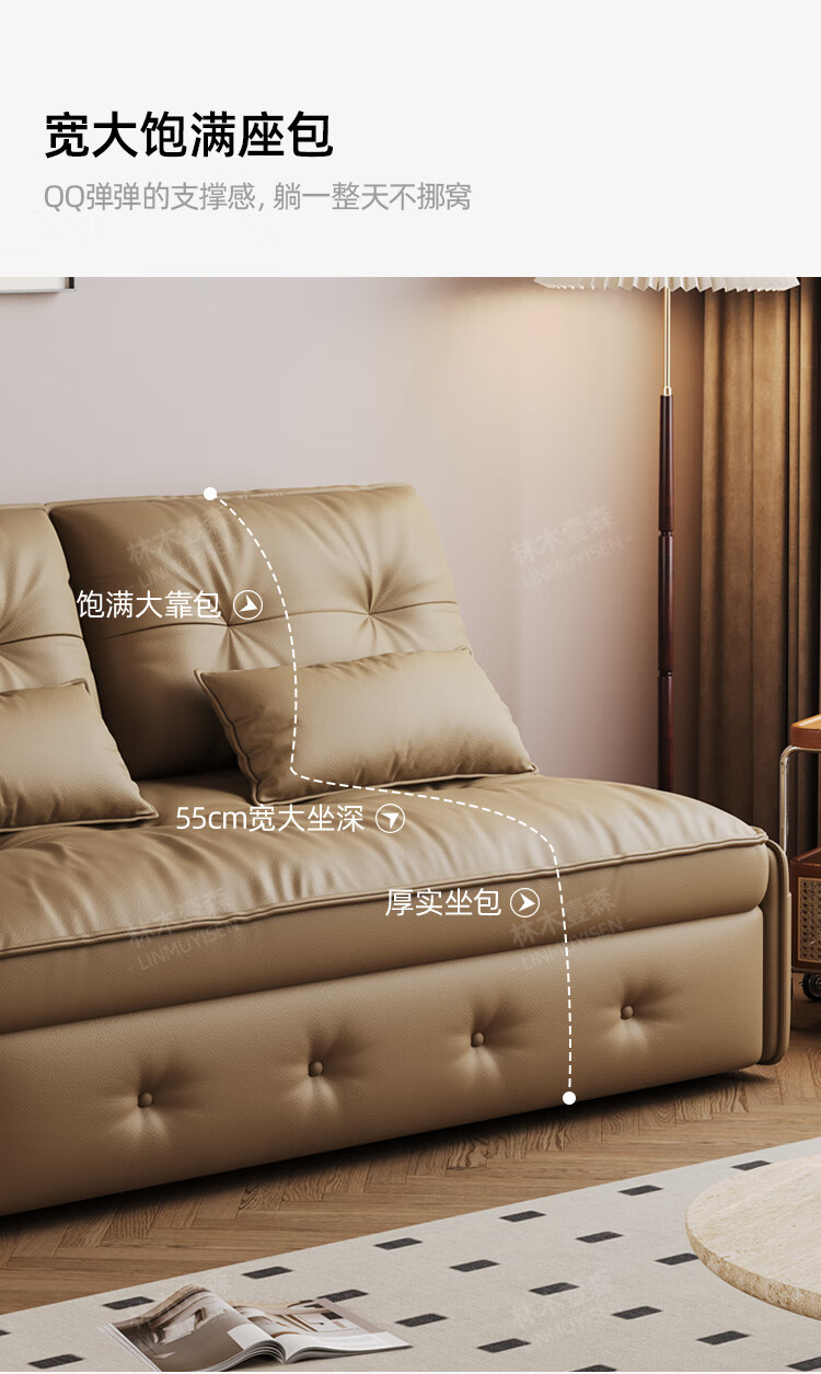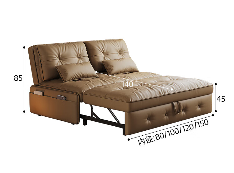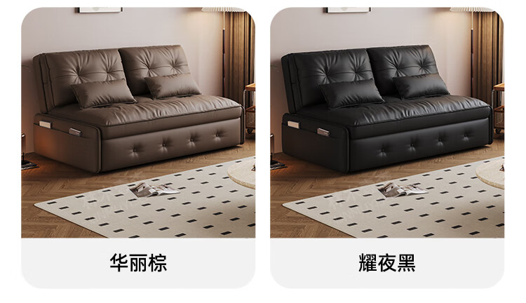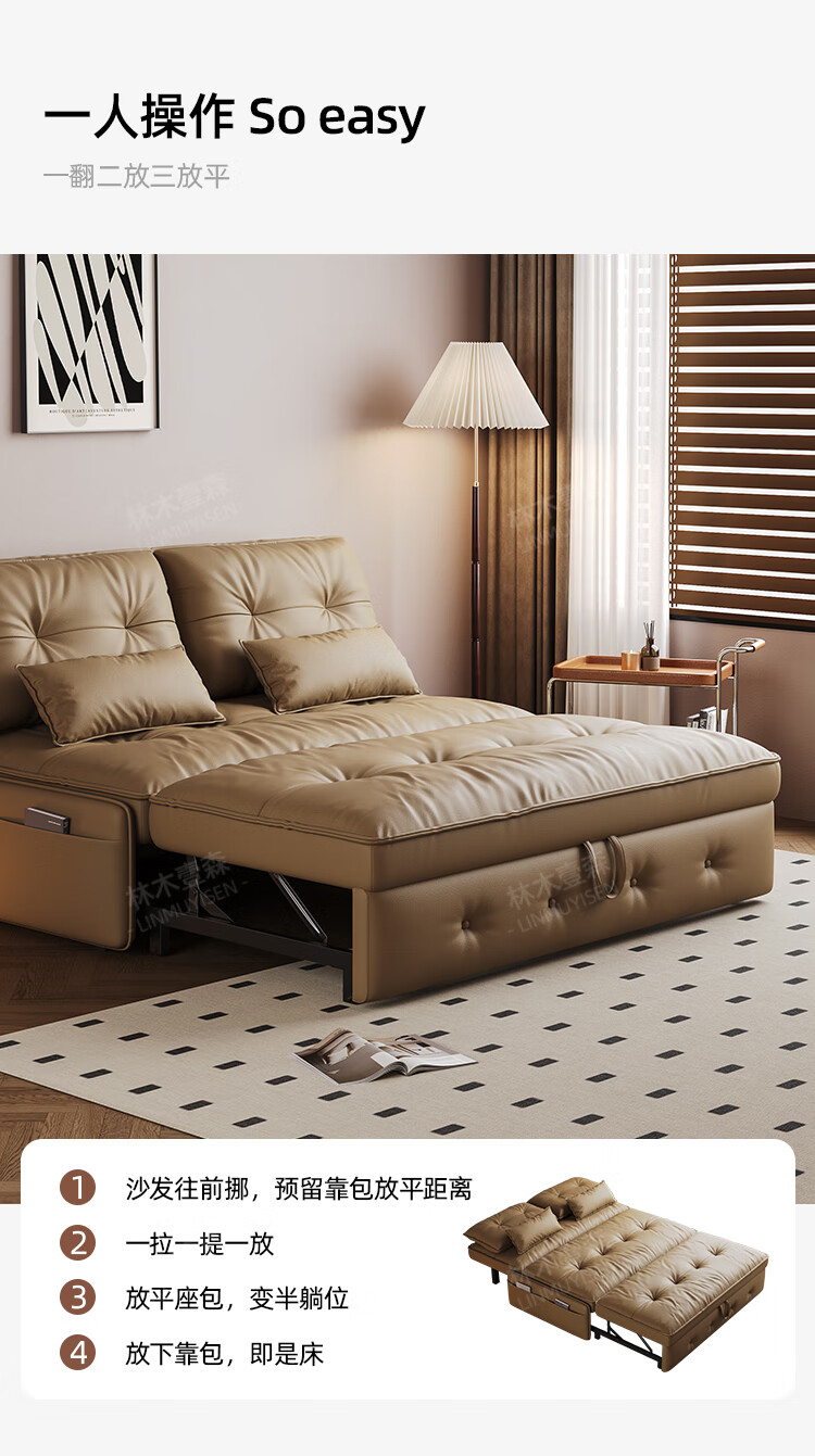 林木壹森沙发床一体两用小户型防猫抓科技皮沙发家用客厅卧室单双人梳化床 外径1.65米 手动款 海绵款+猫抓皮