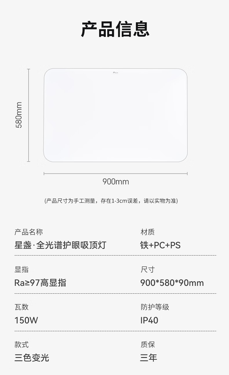 阳光照明 2025新款客厅主灯大灯 全光谱护眼led吸顶灯 政府补贴灯具 星盏丨150w全光谱客厅大灯丨三段分光