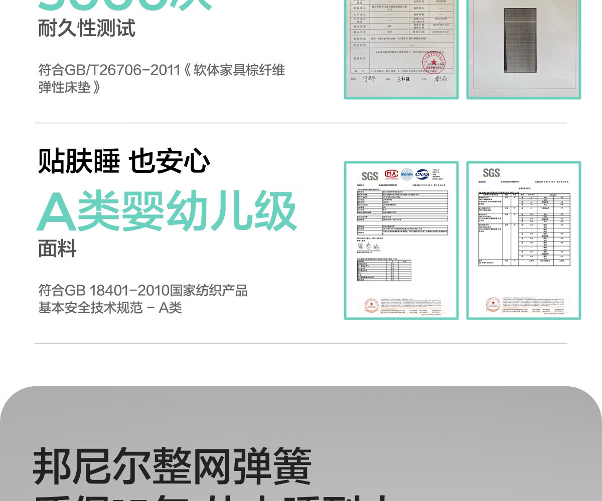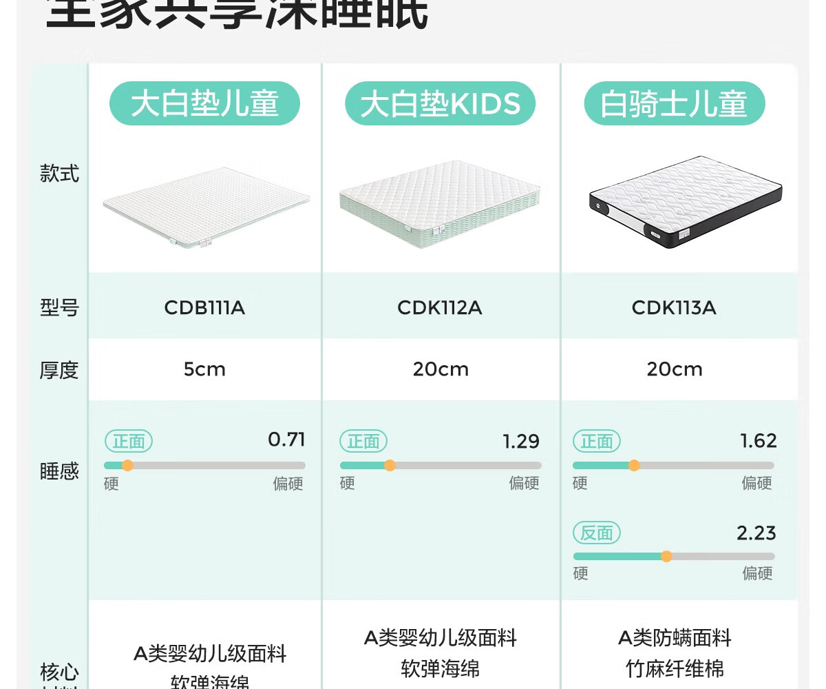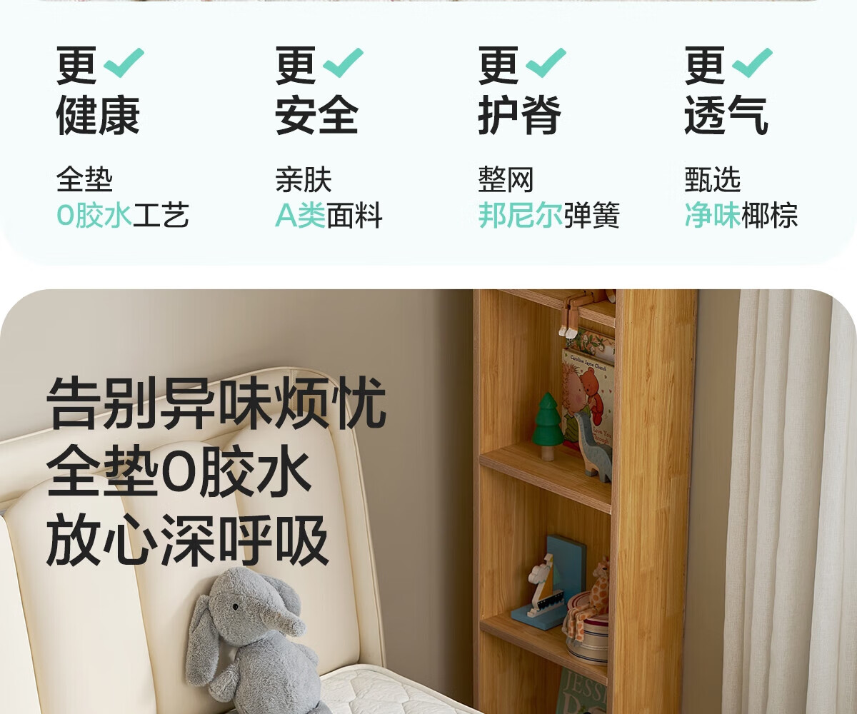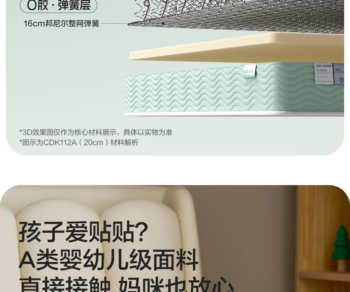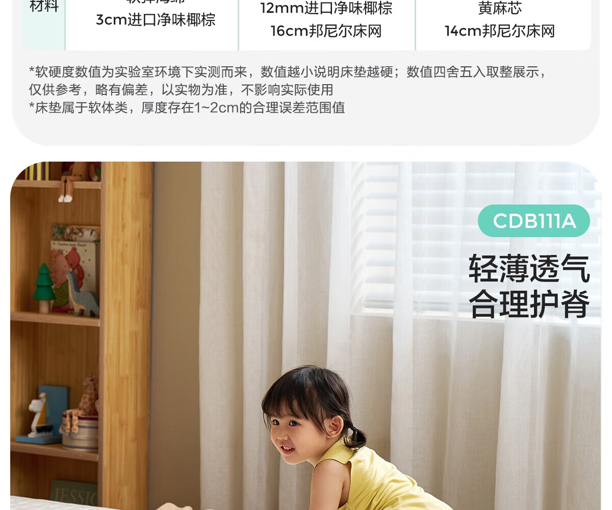 LINSY KIDS儿童专用护脊1.2m弹簧床垫卧室家用单人1米5椰棕垫子木业CDB111A 【大白垫儿童】1.5*2.0m透气不闷汗|20cm