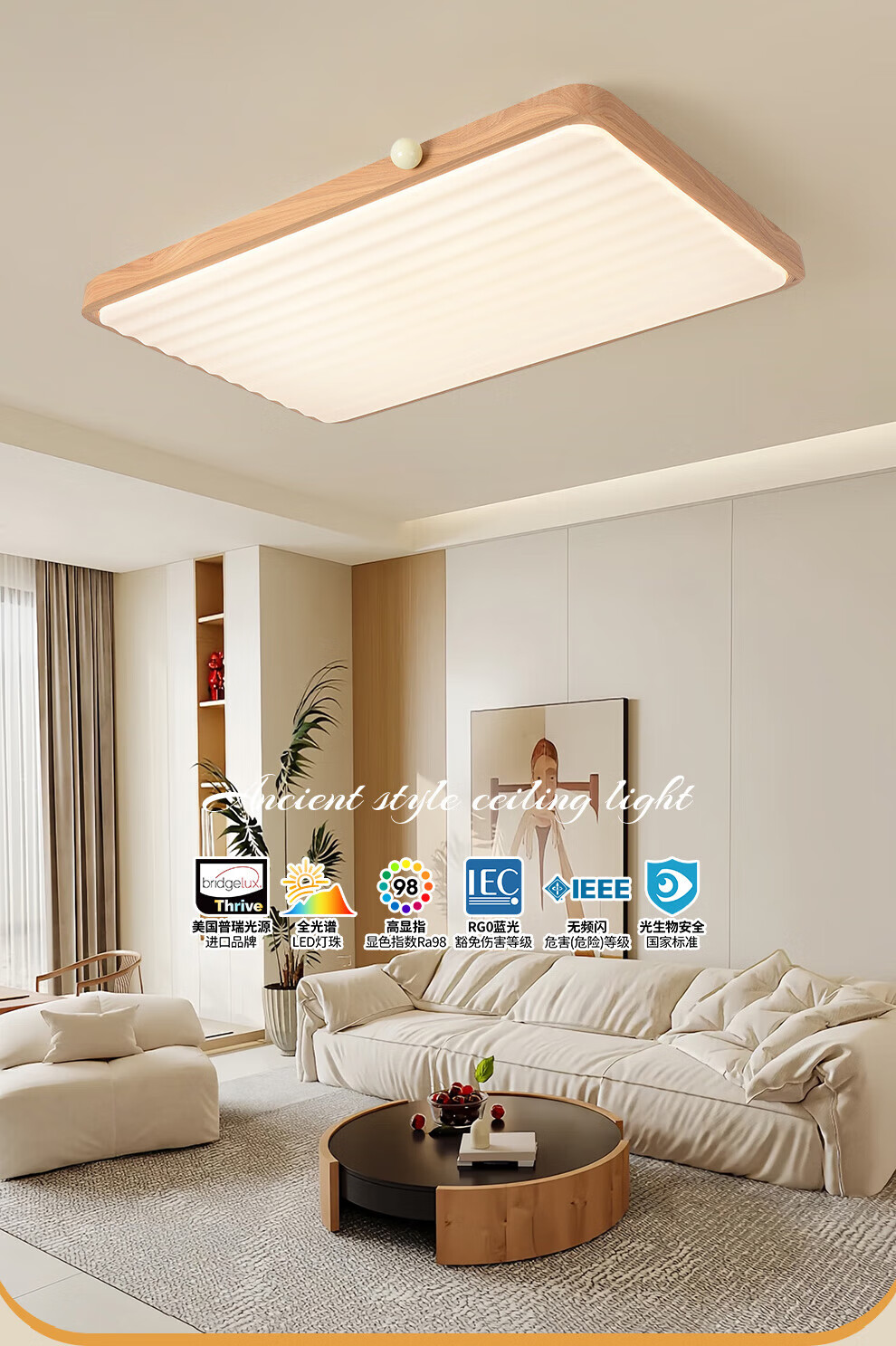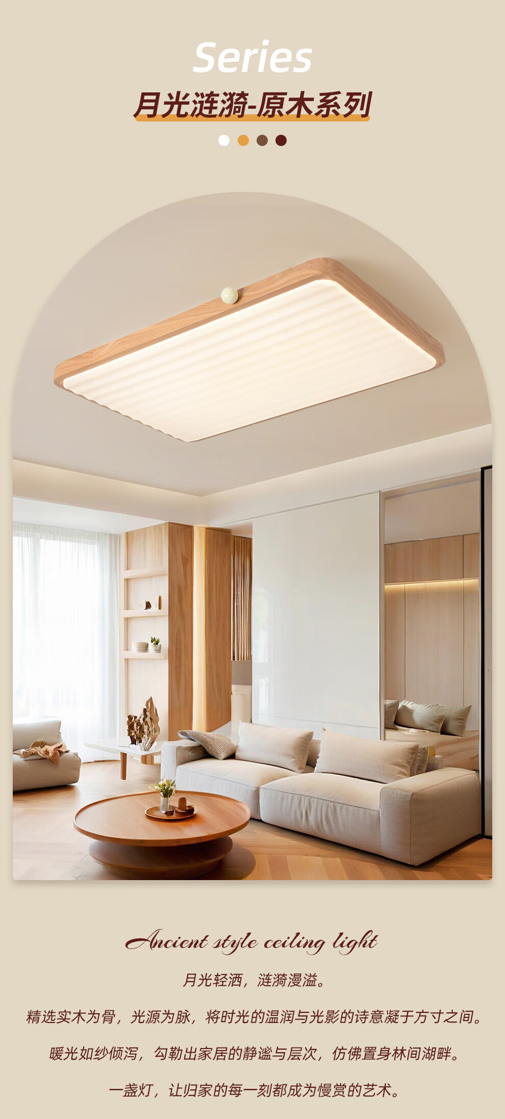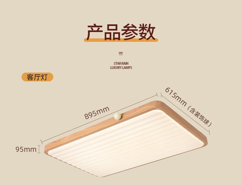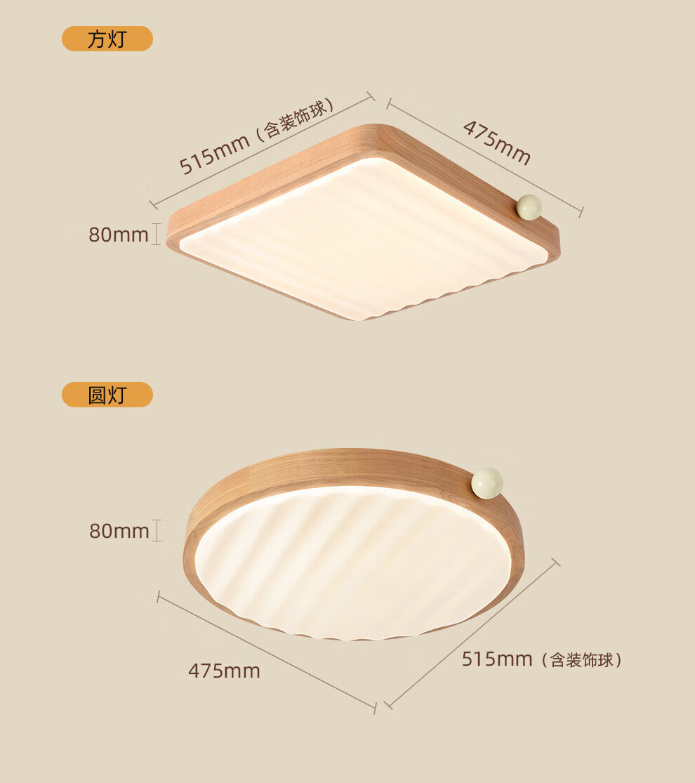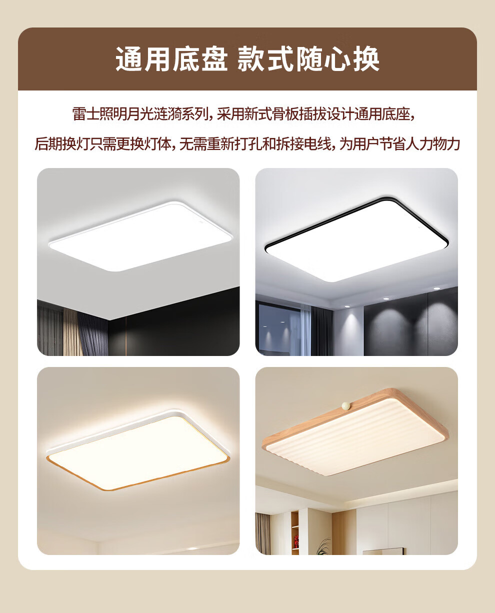 雷士(NVC)中古风客厅灯复古原木风薄吸顶灯书房卧室儿童护眼灯具-月光涟漪 48W 【IP40】月光涟漪原木色智控方灯