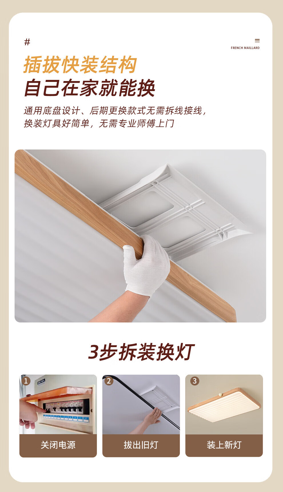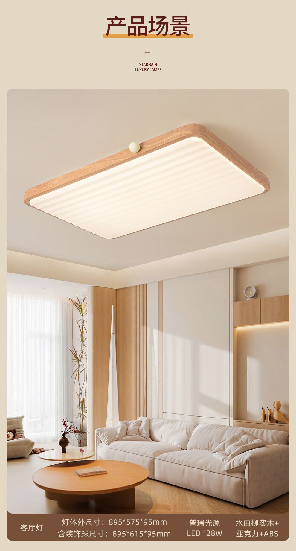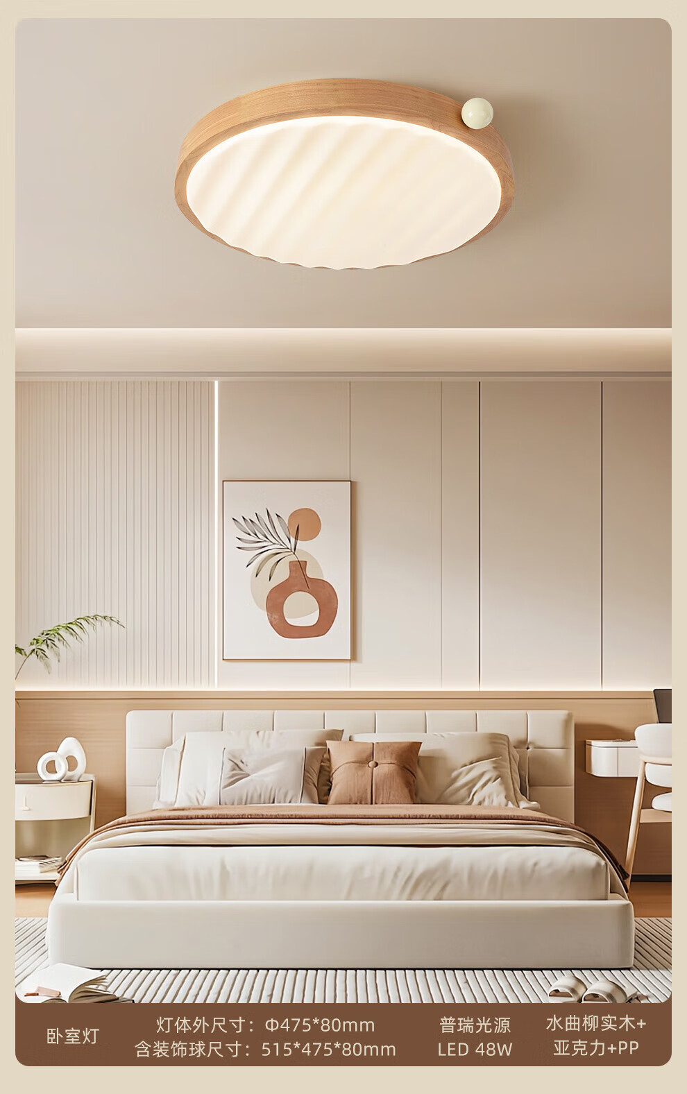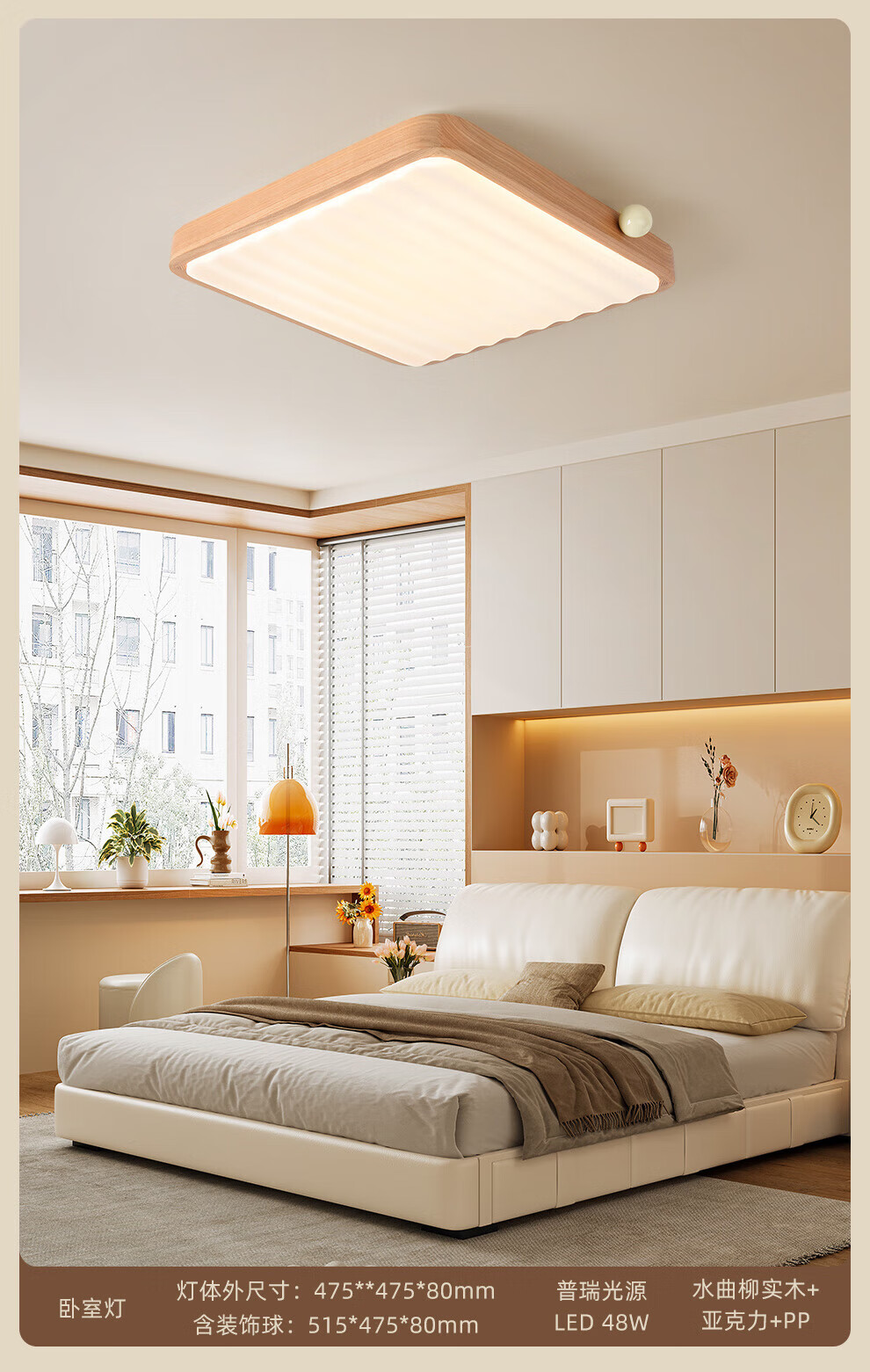 雷士(NVC)中古风客厅灯复古原木风薄吸顶灯书房卧室儿童护眼灯具-月光涟漪 48W 【IP40】月光涟漪原木色智控方灯