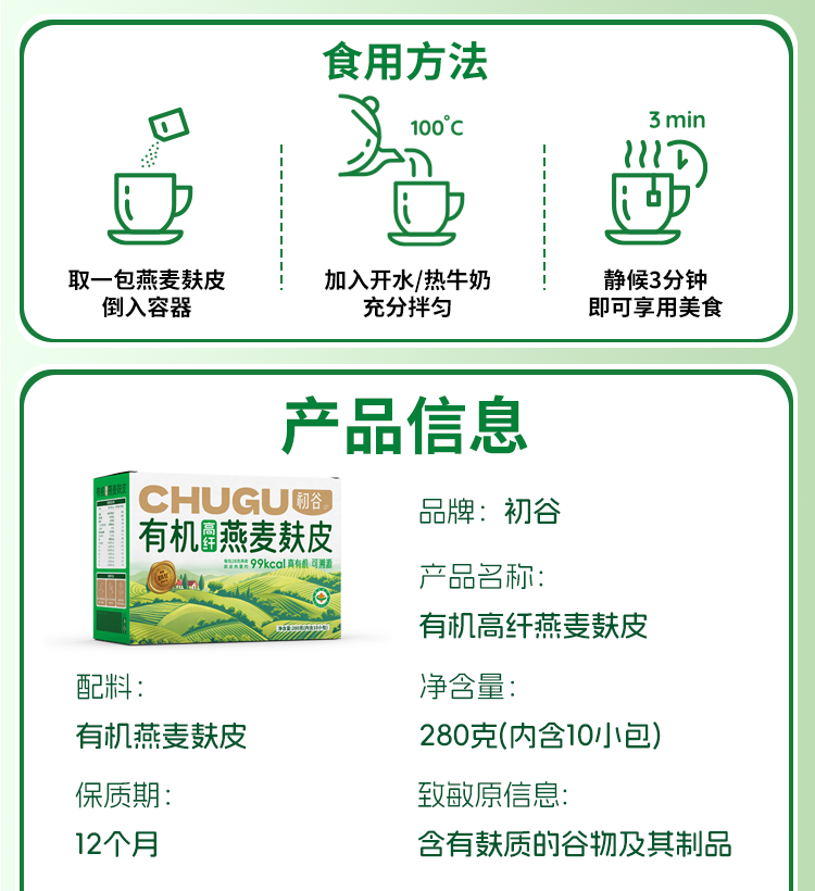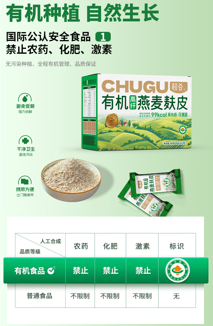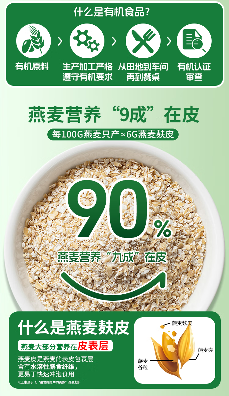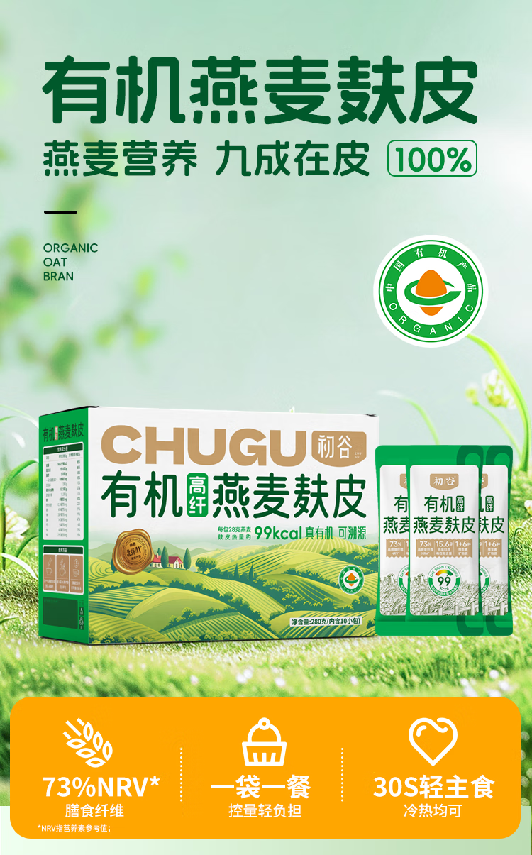 初谷有机燕麦麸皮独立包装无添加蔗糖高纤代餐冲饮即食280g