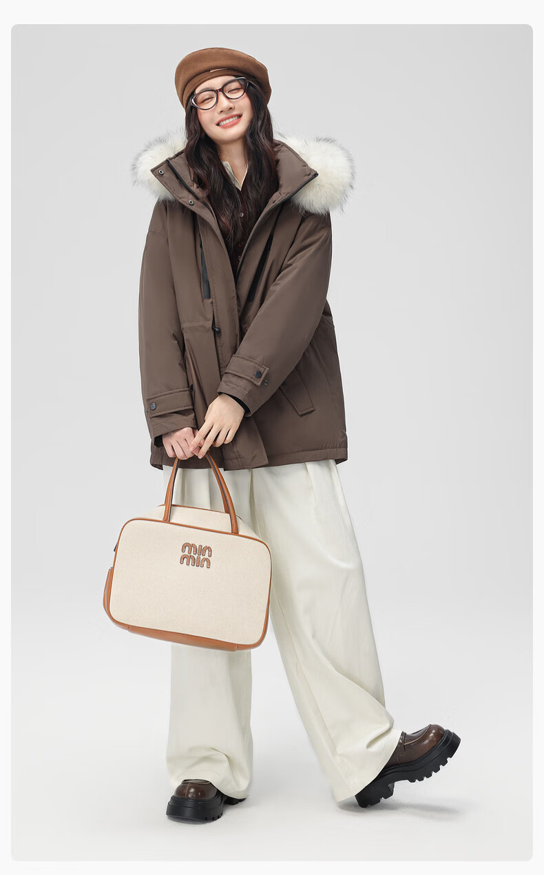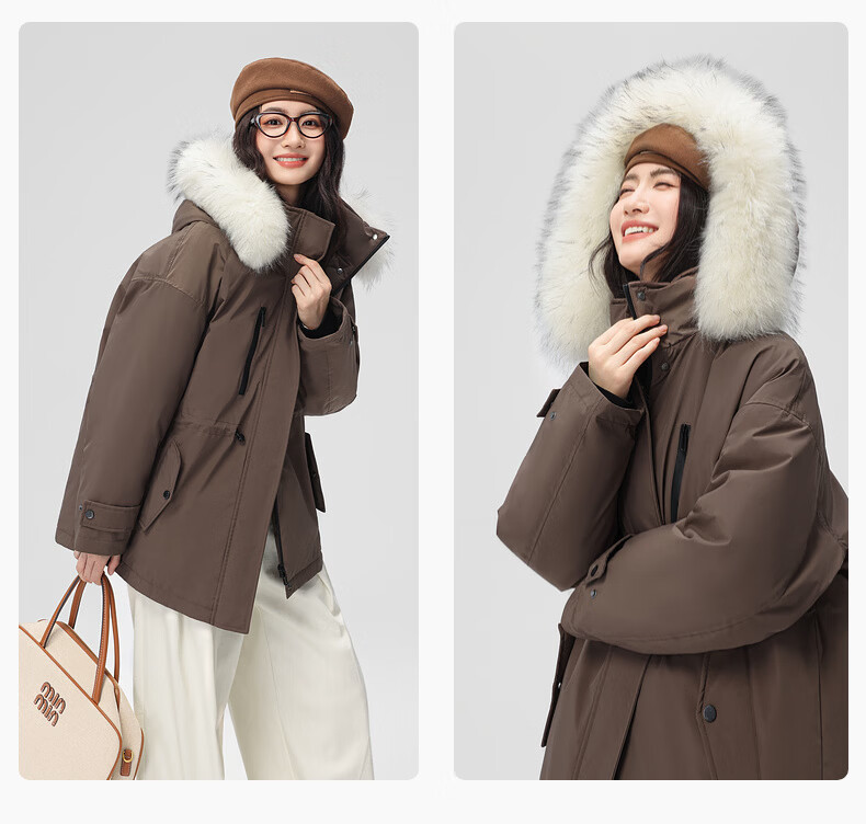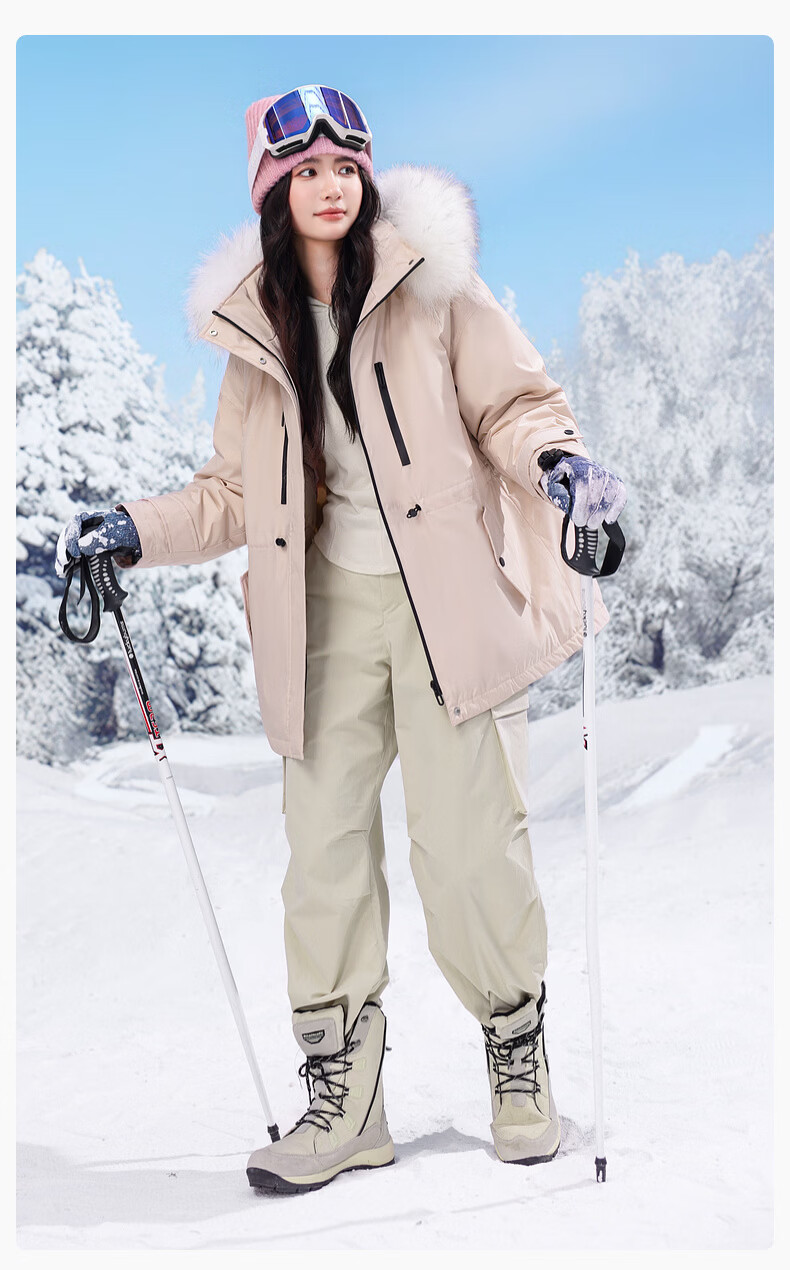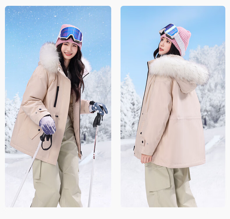雪中飞新款百搭【大毛领】短款保暖羽绒服抗寒保暖亲肤舒适 粉色|1234 M /165/88A
