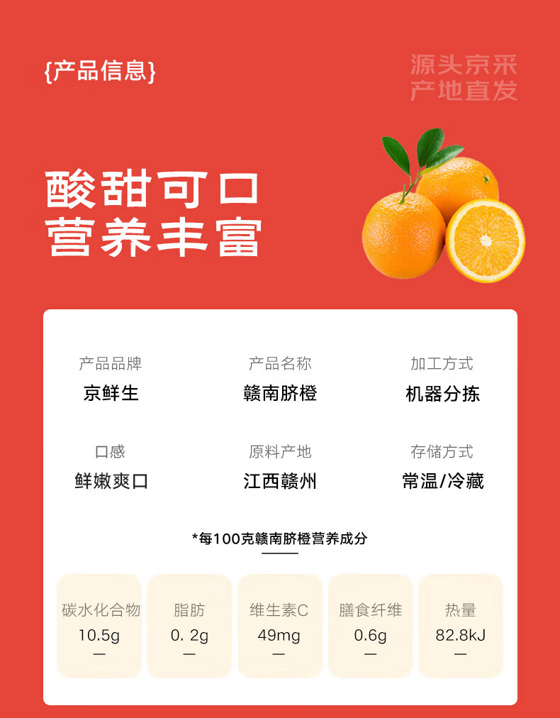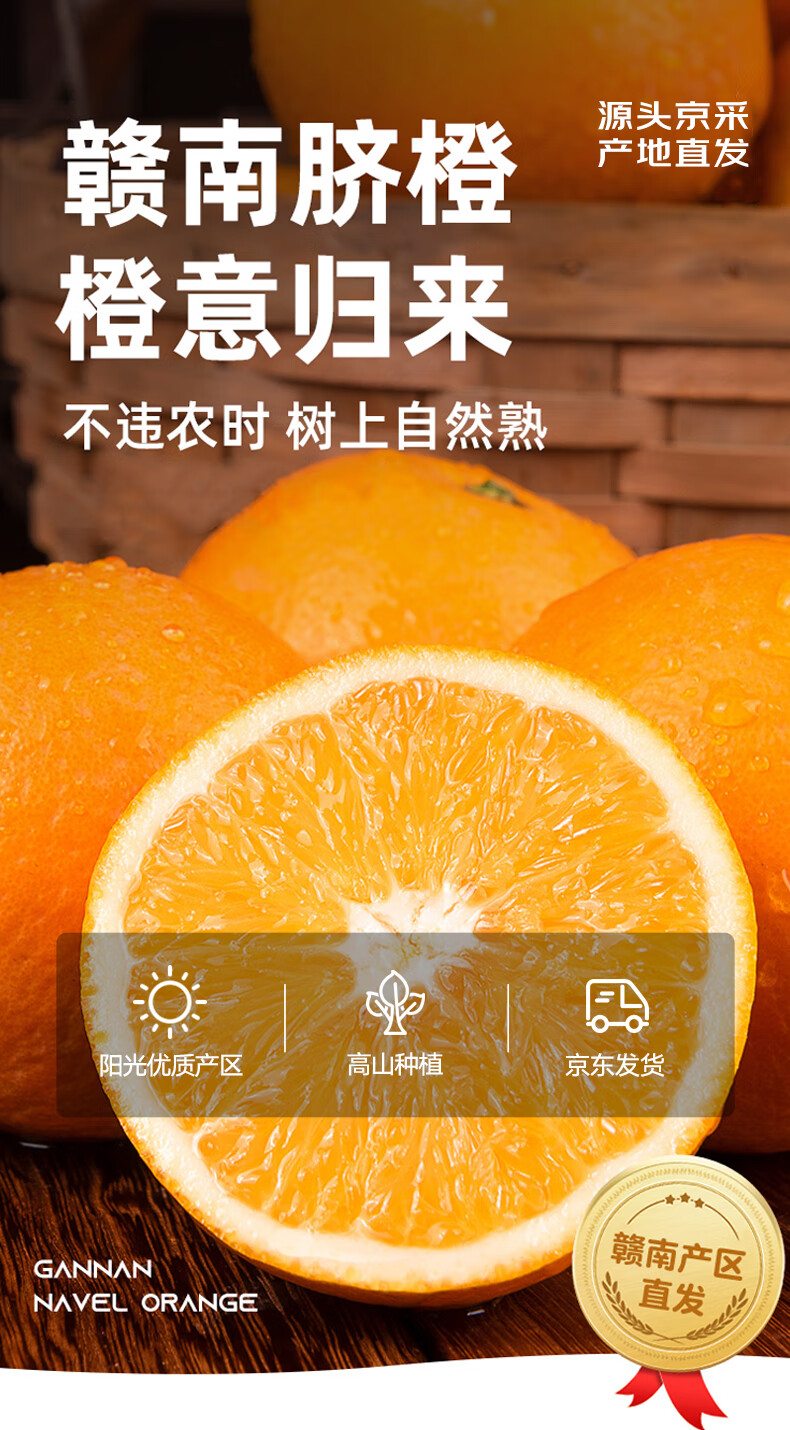 京鲜生 江西赣南脐橙 净重8斤装 单果150g起 生鲜水果 源头直发包邮