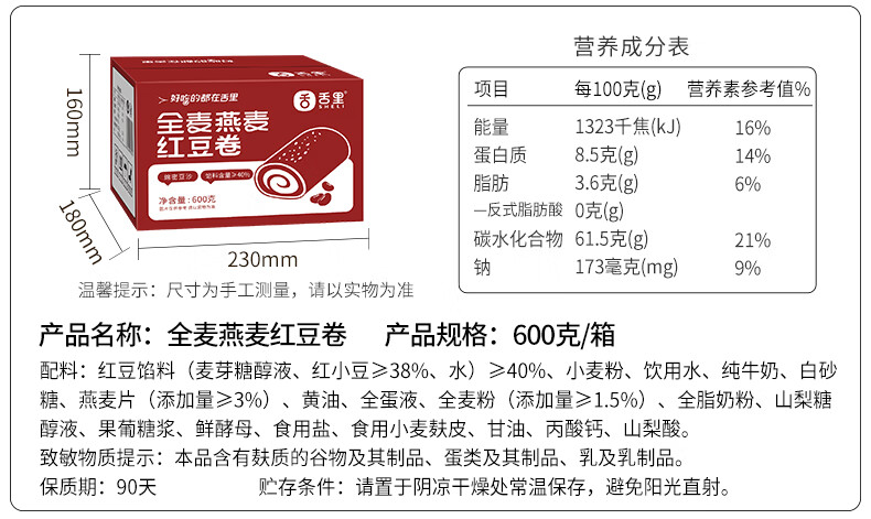 舌里全麦燕麦红豆卷面包600g夹心手撕欧包整箱糕点点心早餐休闲零食