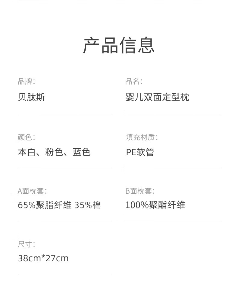 贝肽斯婴儿枕头0-1岁定型枕6个月以上新生幼儿宝宝睡觉枕头 白色【小软管+抽绳调节】 AB两面