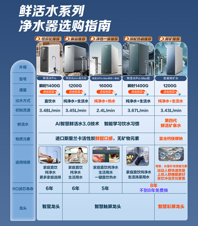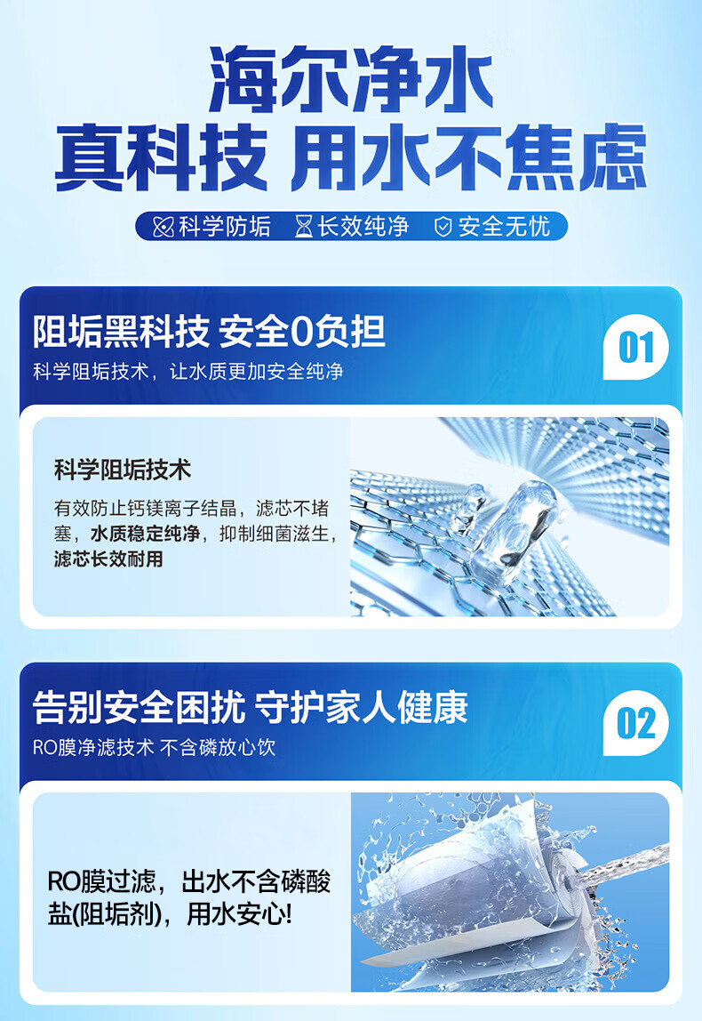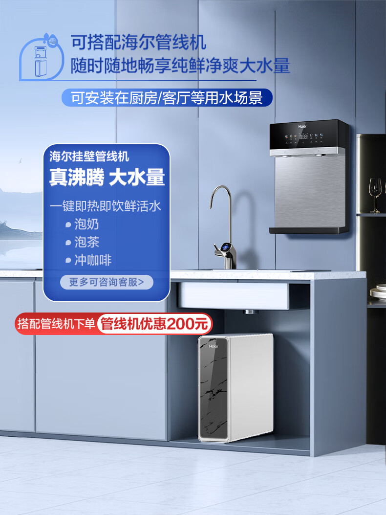 海尔(Haier)鲜活水pro净水器1200G6年RO膜政府补贴净饮机家用厨房专用台下用反渗透过滤直饮净水机