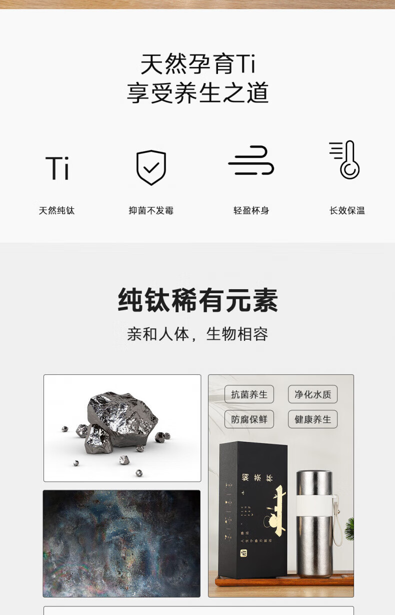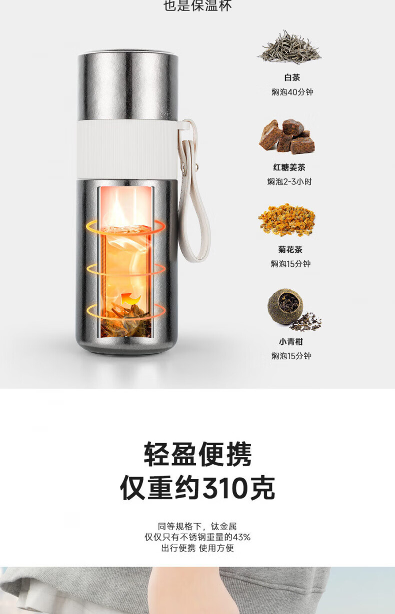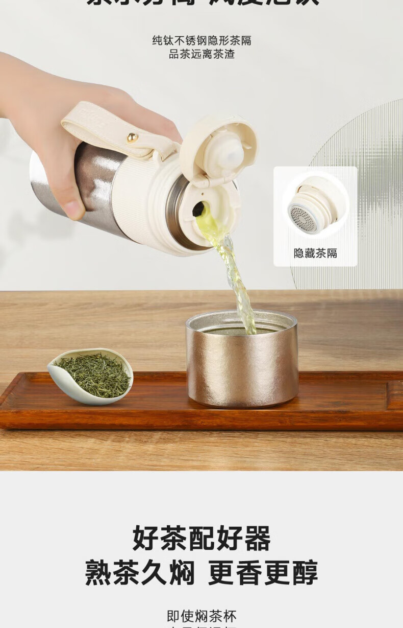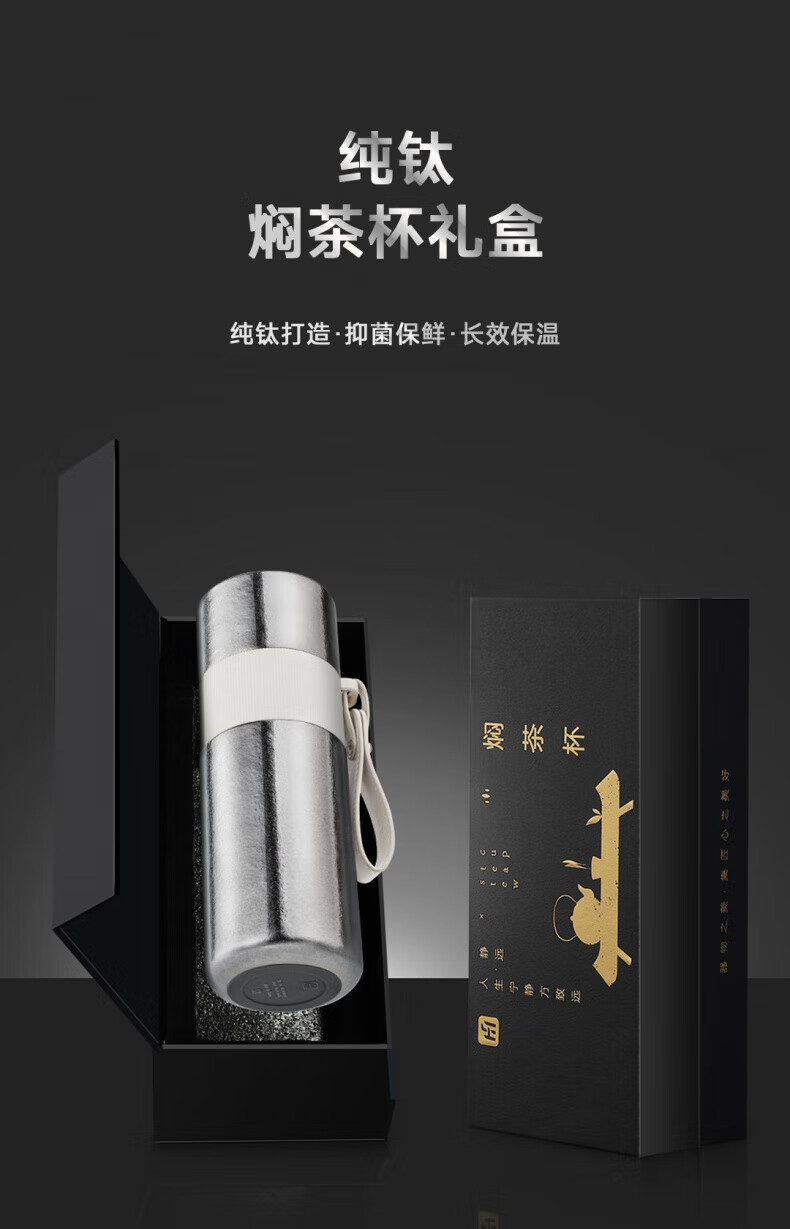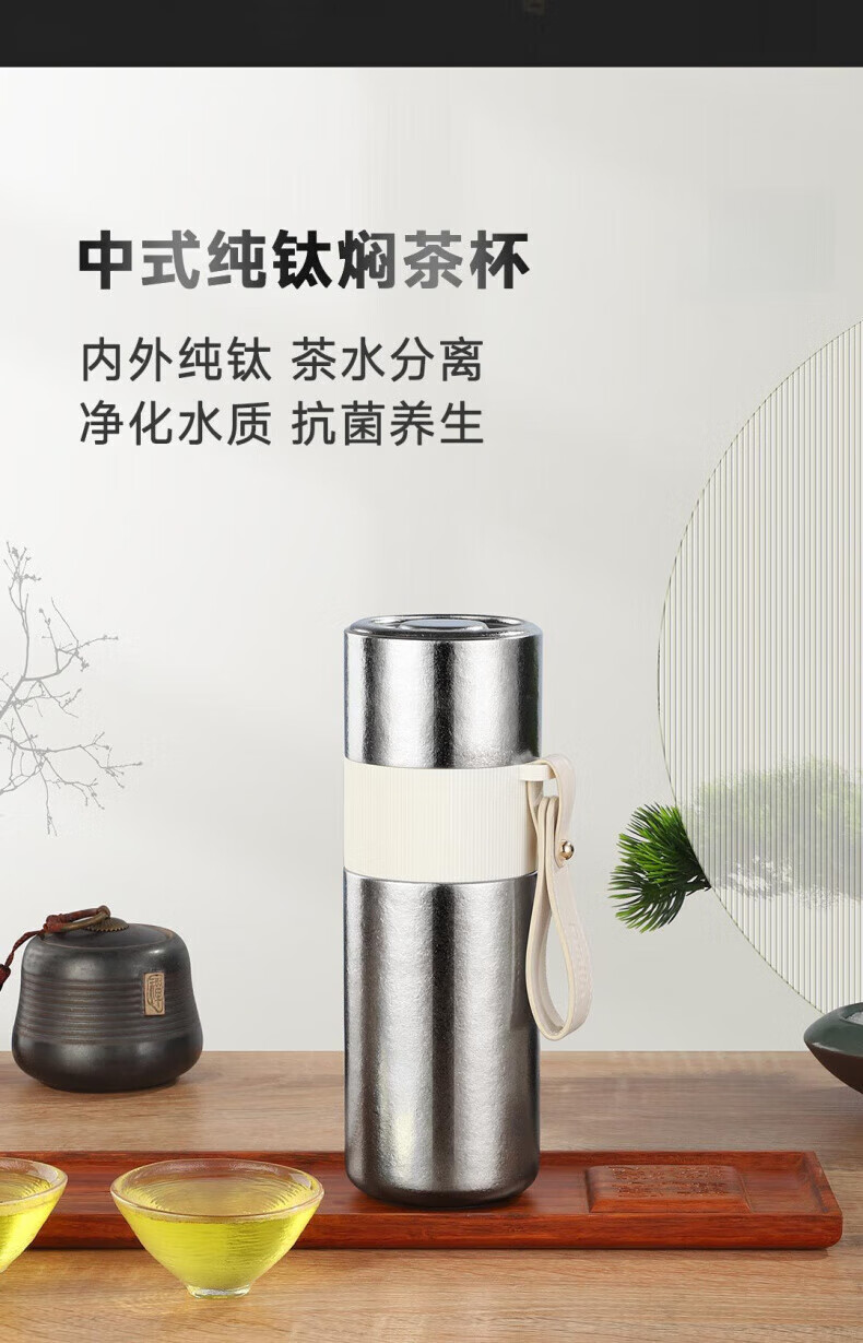 大卡纯钛保温杯高档焖茶杯茶水分离养生泡茶水杯商务办公礼品钛杯定制 青釉星碎【纯钛+礼盒】430ml