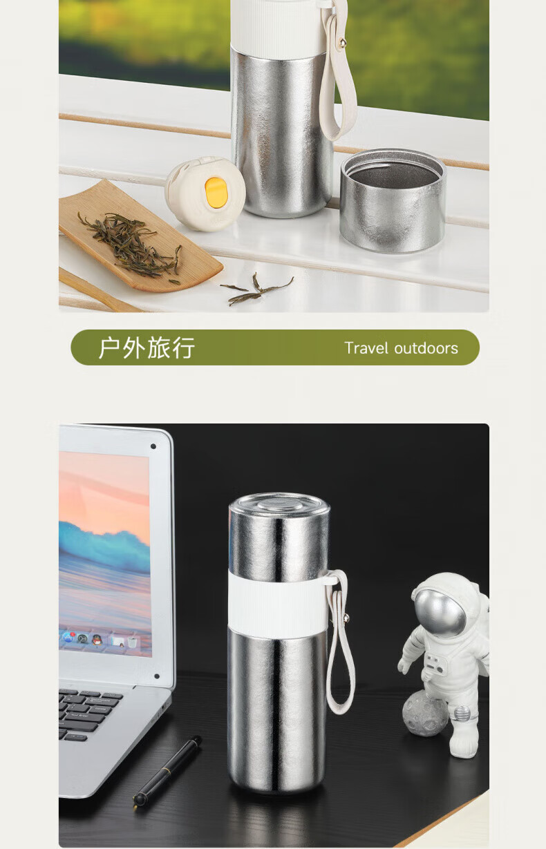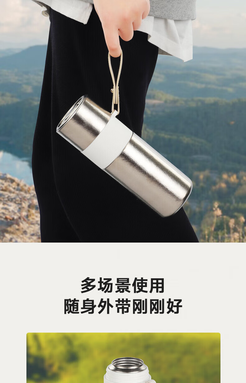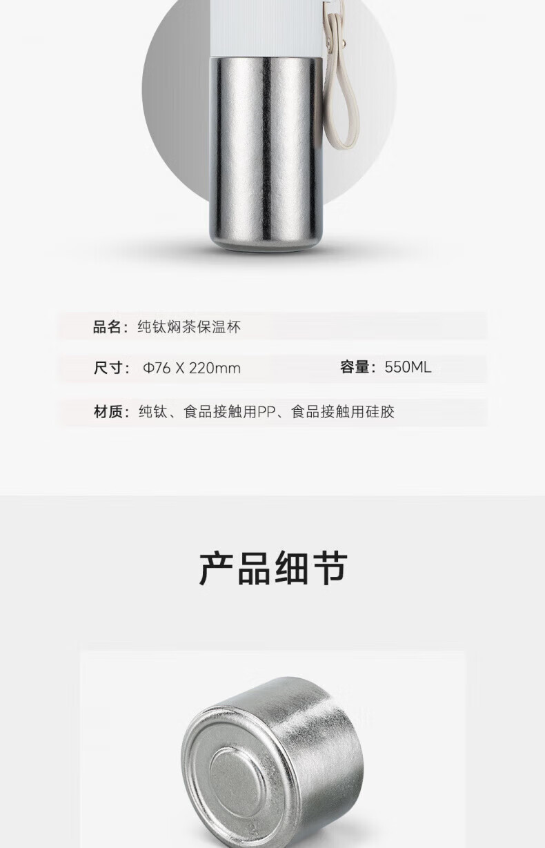 WFFPM德国品牌大容量纯钛焖茶杯男士泡茶杯高颜值手提保温杯车载水杯 结晶银 550ml