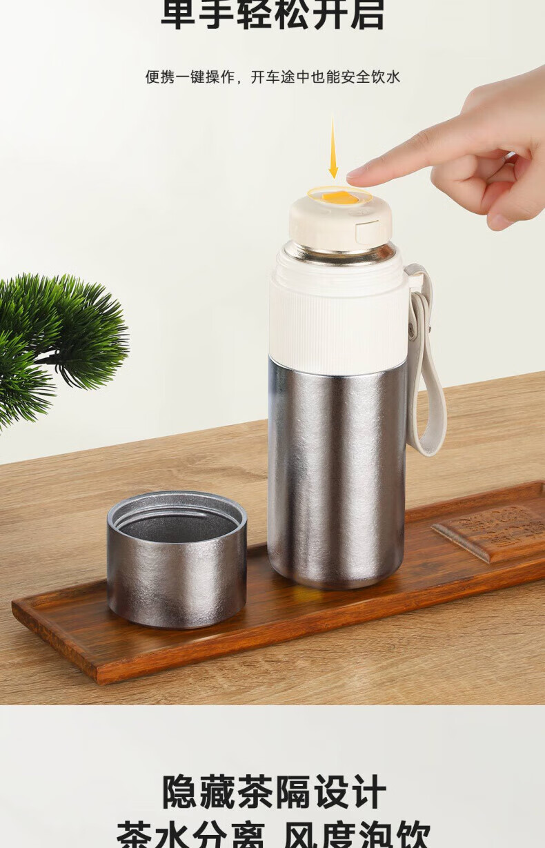 WFFPM德国品牌纯钛一键速开保温杯男士养生水杯大容量便捷泡茶钛杯 银色 450ml 66*210mm
