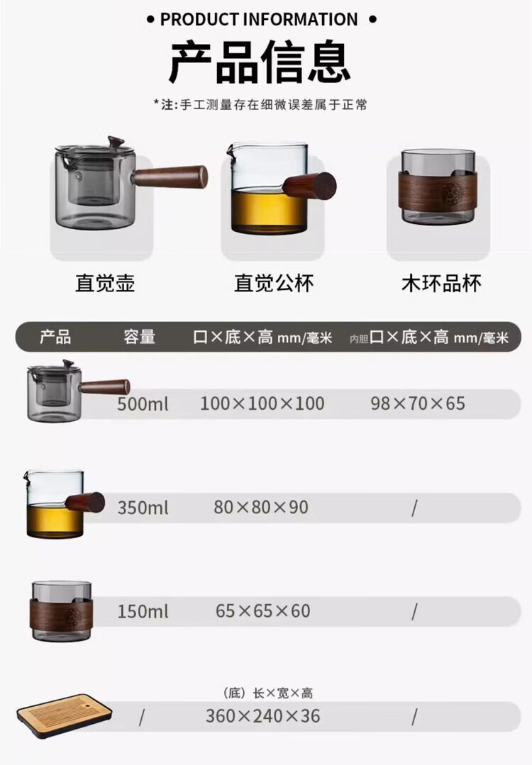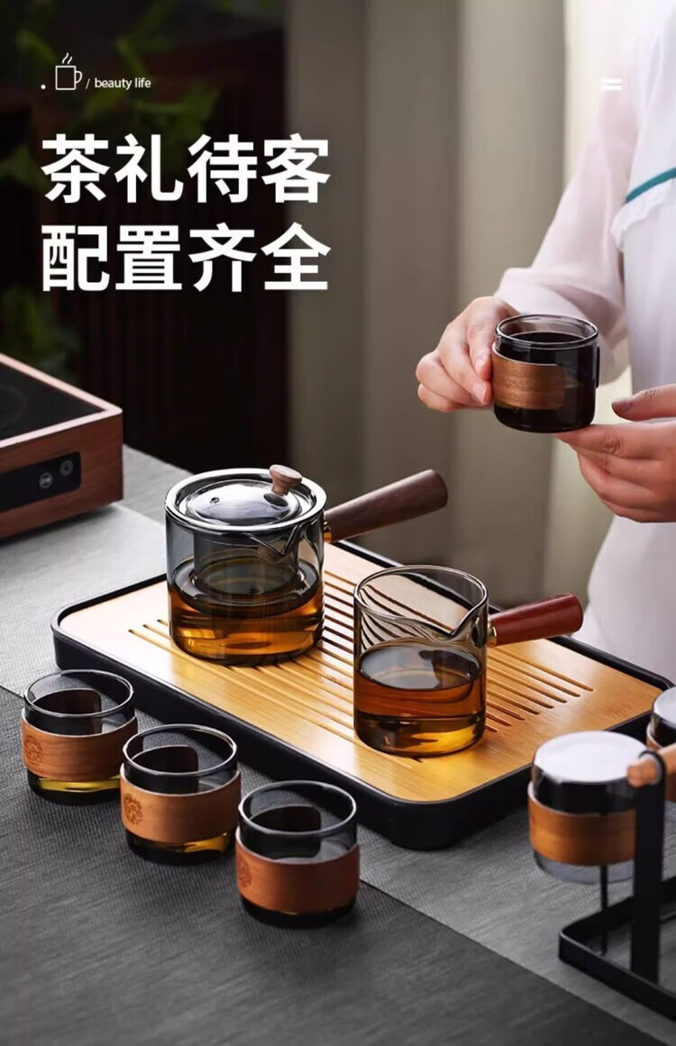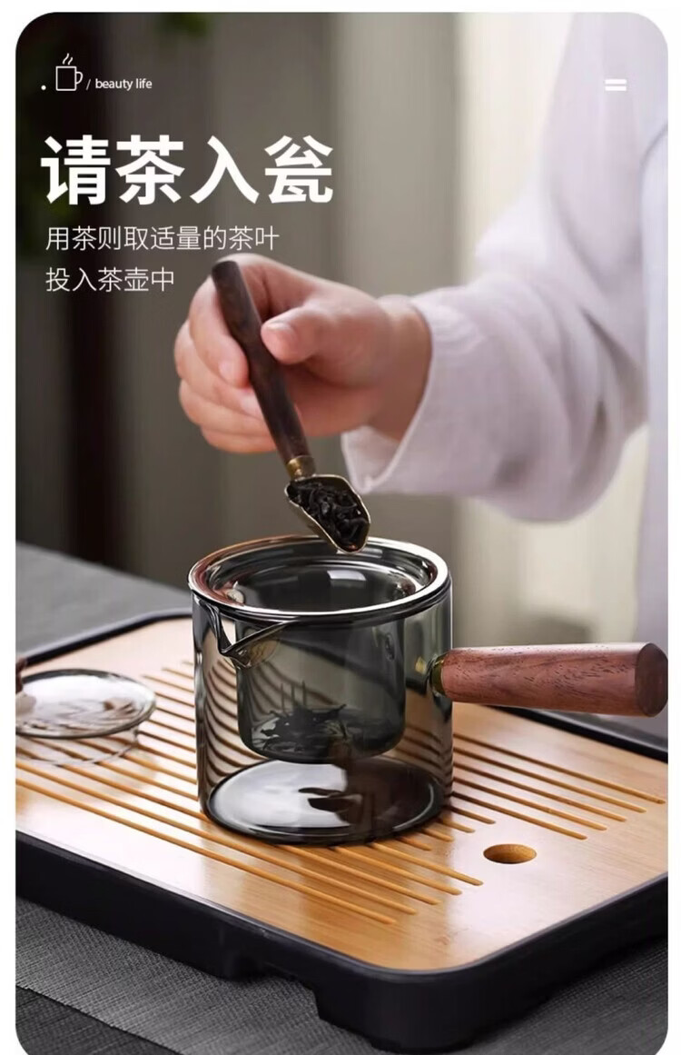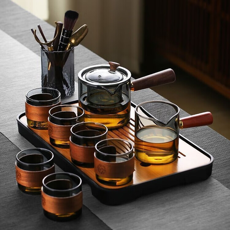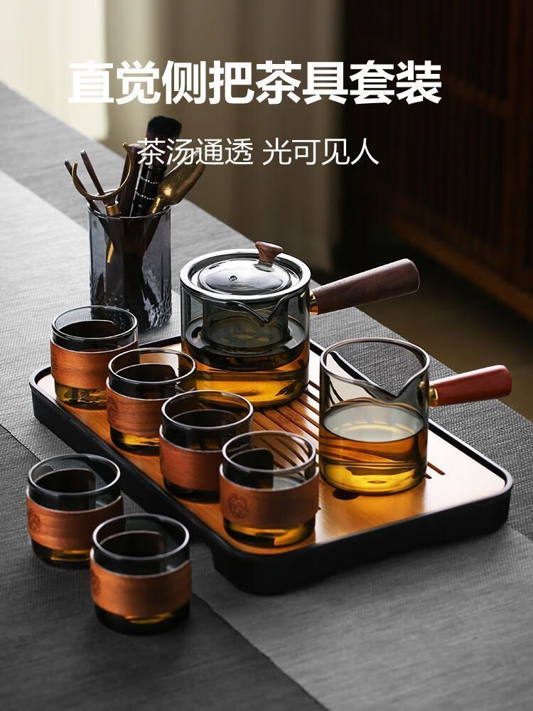 简漾耐高温玻璃茶壶套装茶盘家用办公室小型喝茶轻奢茶具耐热功夫茶杯 500毫升直觉壶单壶-透黑