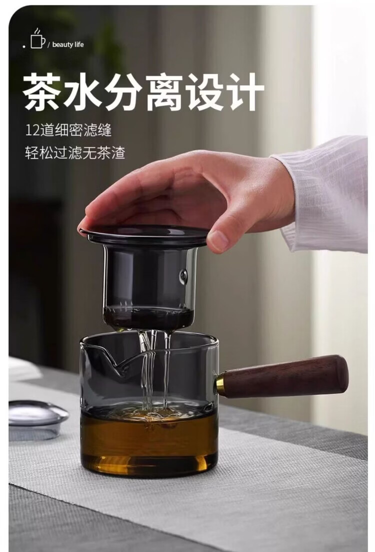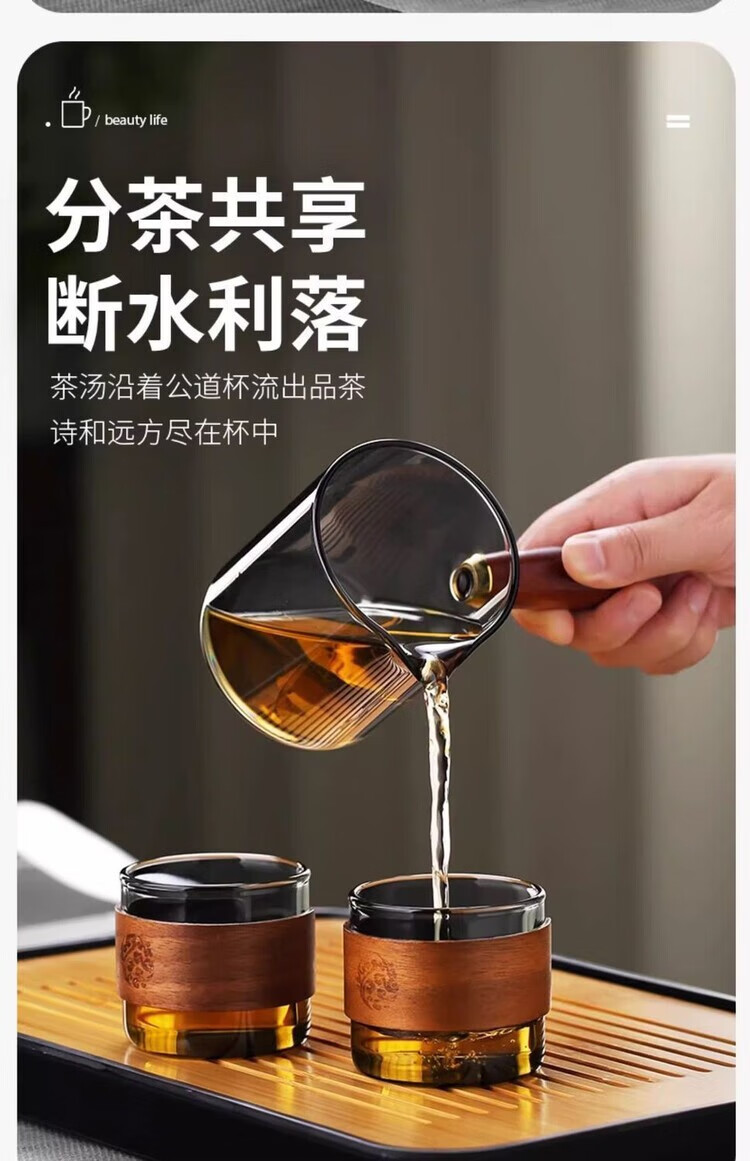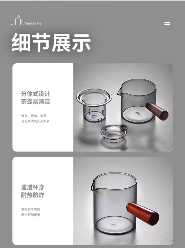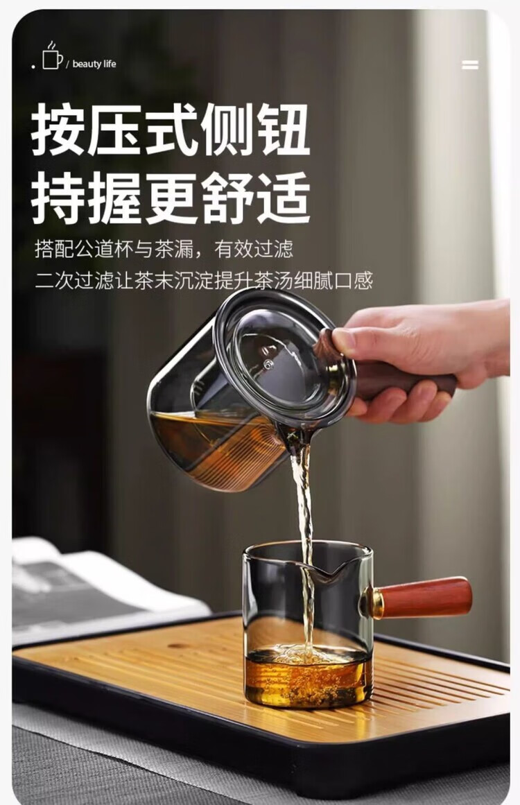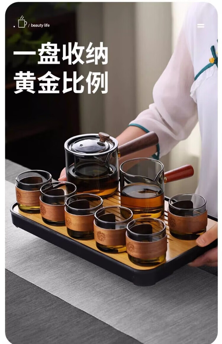 简漾耐高温玻璃茶壶套装茶盘家用办公室小型喝茶轻奢茶具耐热功夫茶杯 500毫升直觉壶单壶-透黑