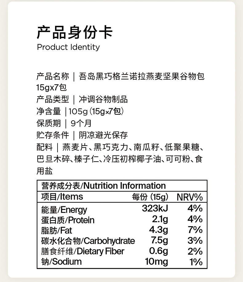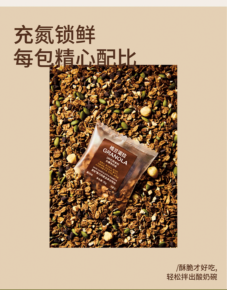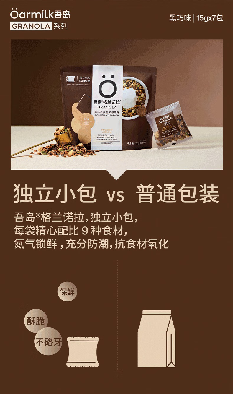 吾岛格兰诺拉黑巧烘焙燕麦坚果谷物包15gx7包即食代餐酸奶碗甄选原料