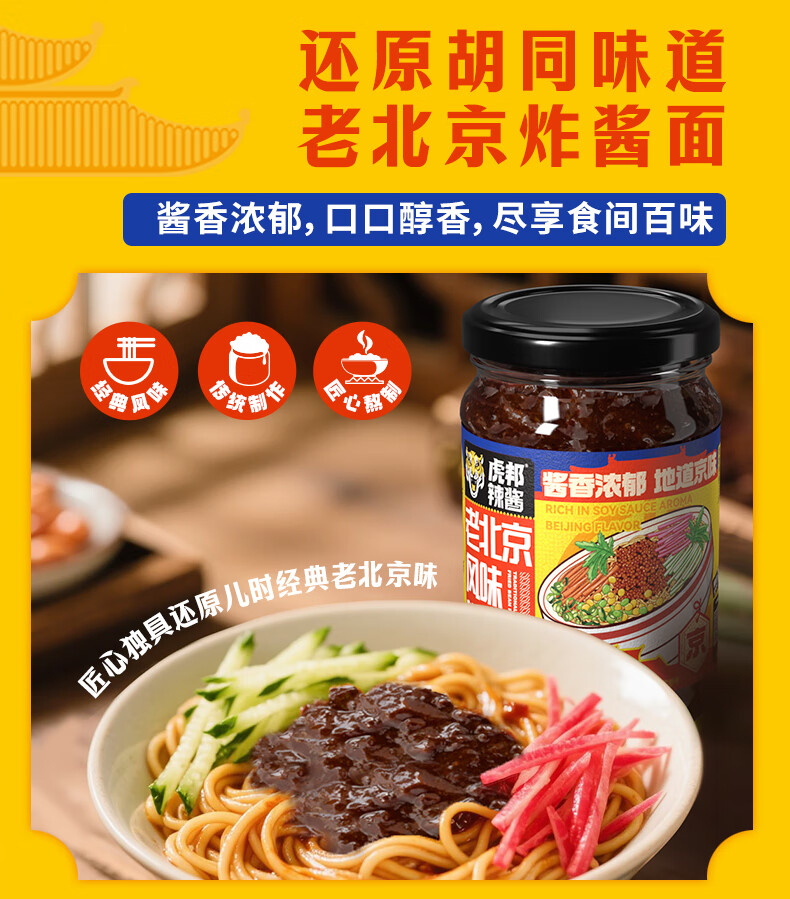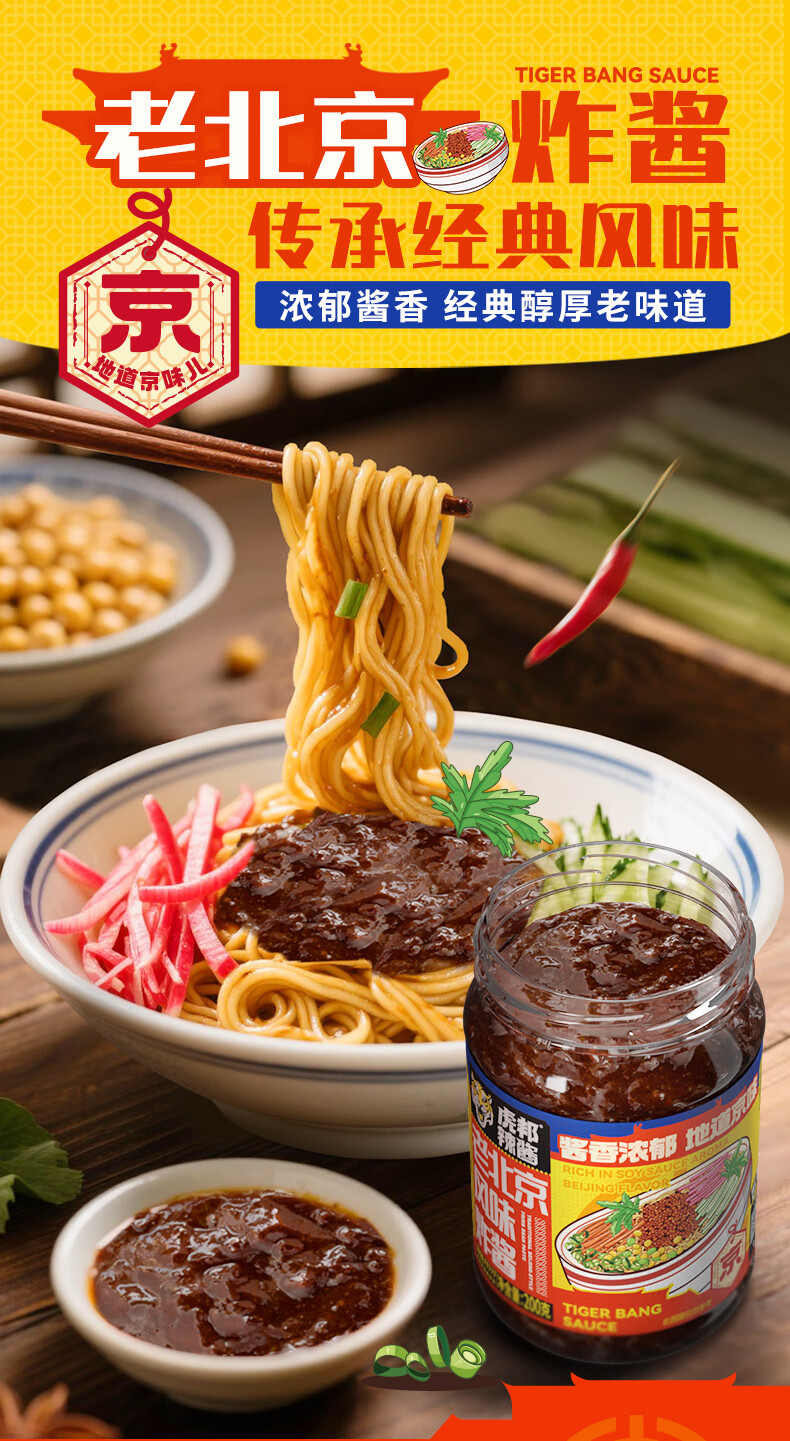虎邦辣酱 老北京炸酱200g 重庆小面拌面酱调料蘸酱烤肉酱甜面酱拌饭 香辣牛肉130g+蒜蓉130g